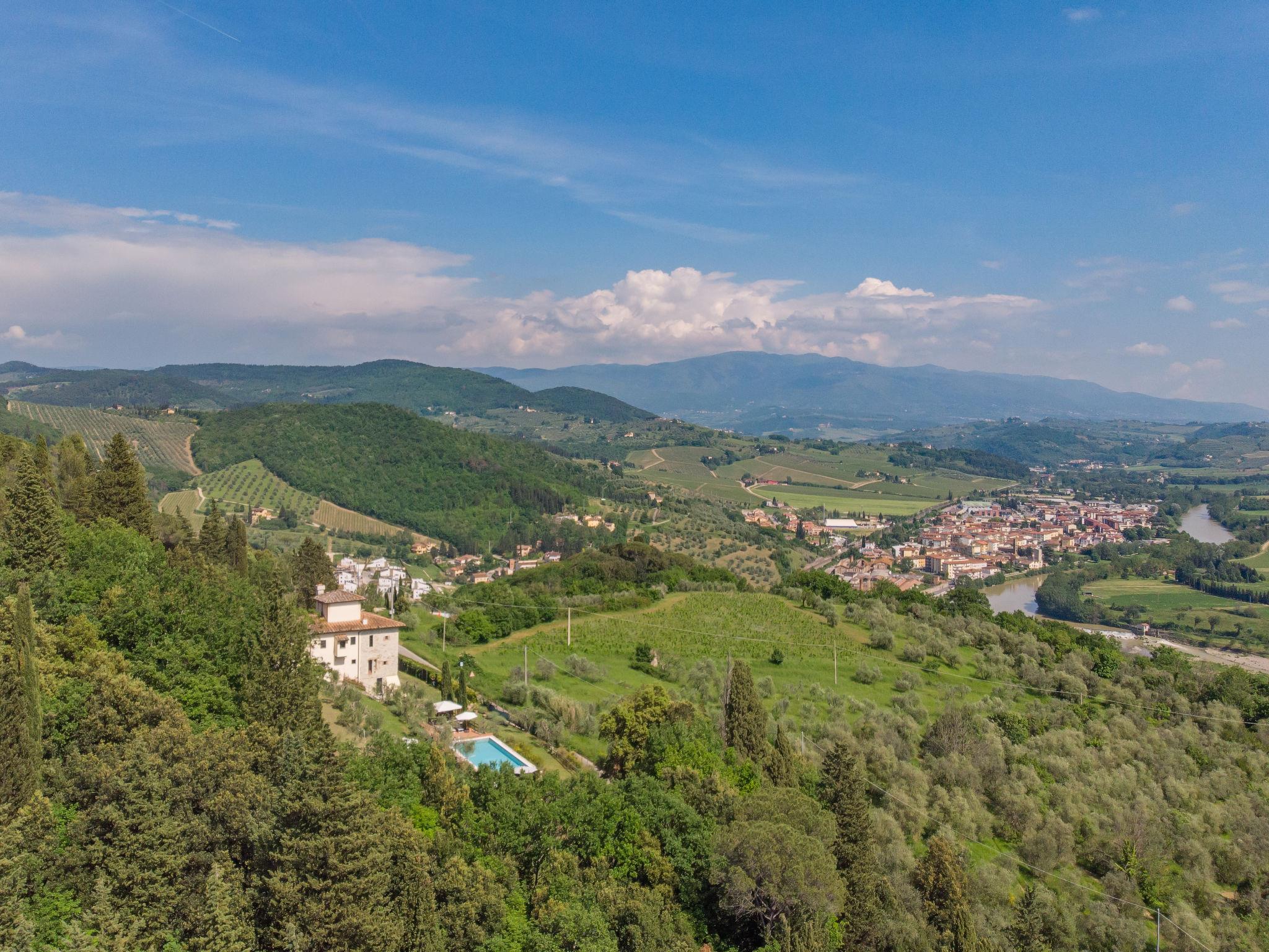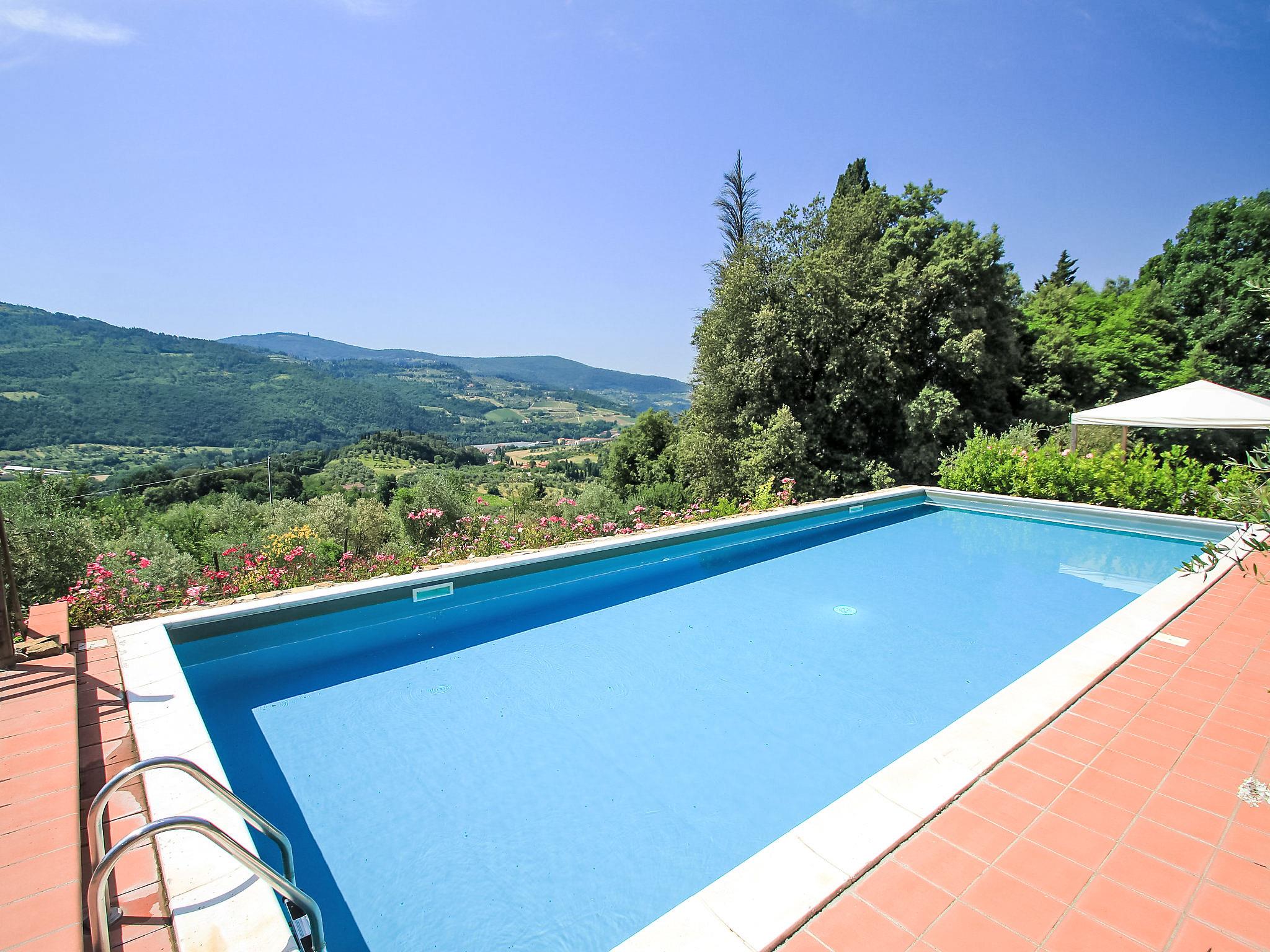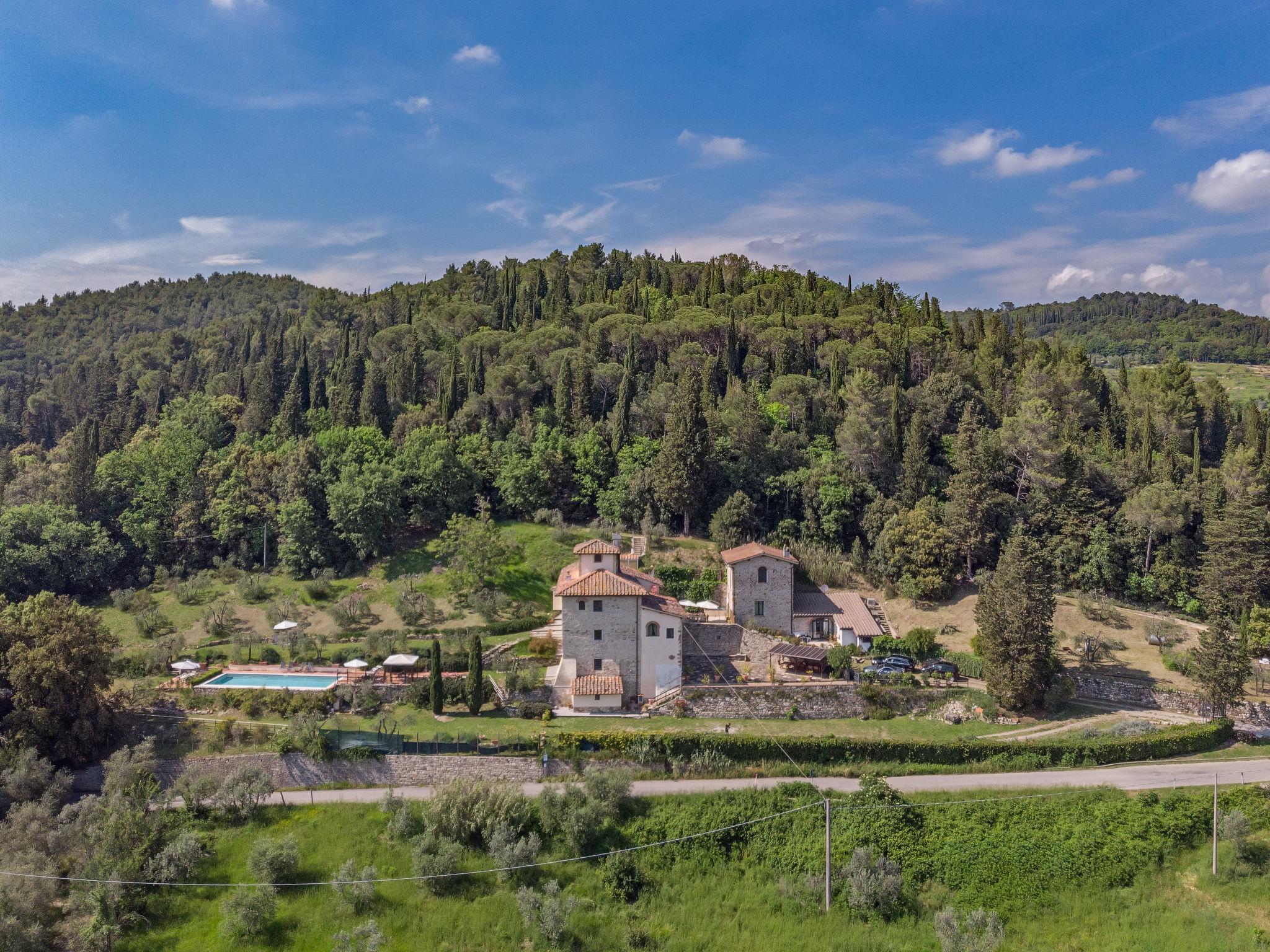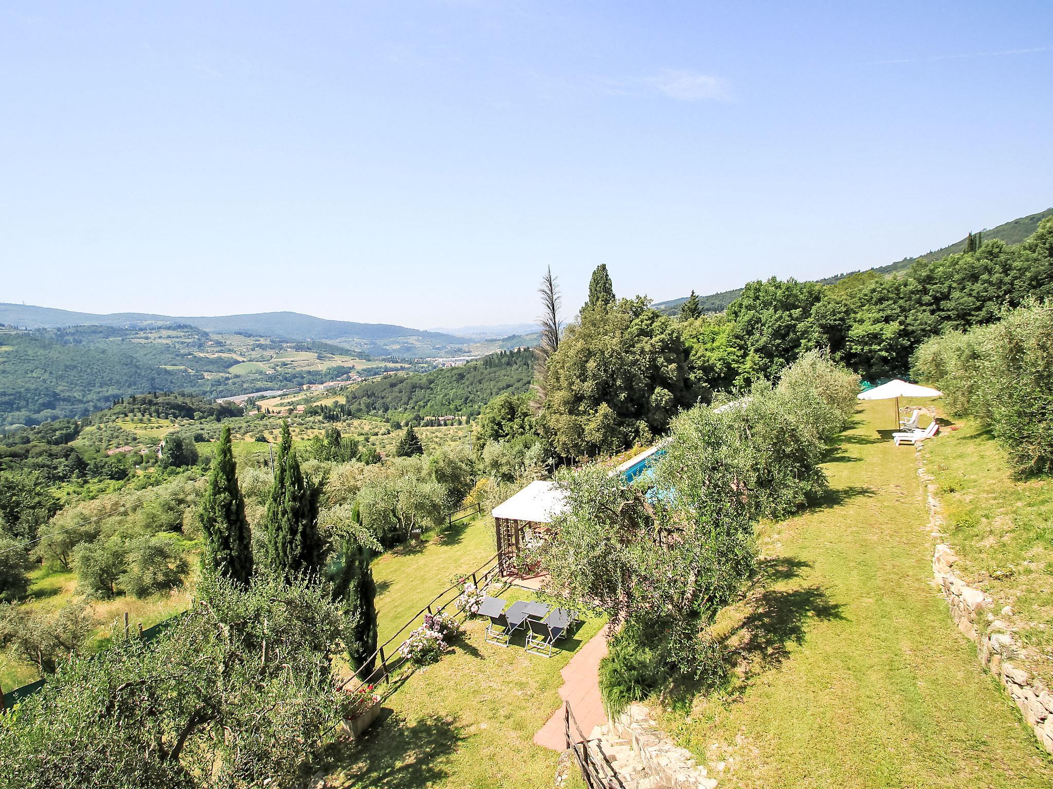 Sieci 12 km from Firenze: The estate comprises of a main house plus an adjoining apartment where the caretaker lives and a barn where the owners sometimes live. Villa "Monteloro", 300 m a.s.l., from the 12nd century, renovated in 2005. 2 km from the centre of Sieci, 12 km from the centre of Firenze, 80 km from the centre of Siena, in a sunny, elevated position on top of a hill. Private: property 25 ha, garden (fenced), swimming pool (13 x 5 m, depth 140 cm, seasonal availability: 16.Apr. - 01.Oct.). Outdoor shower, pool house with fridge, shower, WC and cooking stove, barbecue. In the house: washing machine, heating to be paid on the spot, heating available only from 01.Nov. - 15.Apr.. Parking on the premises. Shop 2 km, grocery 2 km, supermarket 2 km, bus stop 1.5 km, railway station "Sieci" 2 km, sandy beach "Versilia" 110 km. Golf course (18 hole) 24 km, tennis 3 km. Nearby attractions: Fiesole 15 km, Outlet The Mall 20 km, Reggello 30 km, Vallombrosa 35 km.