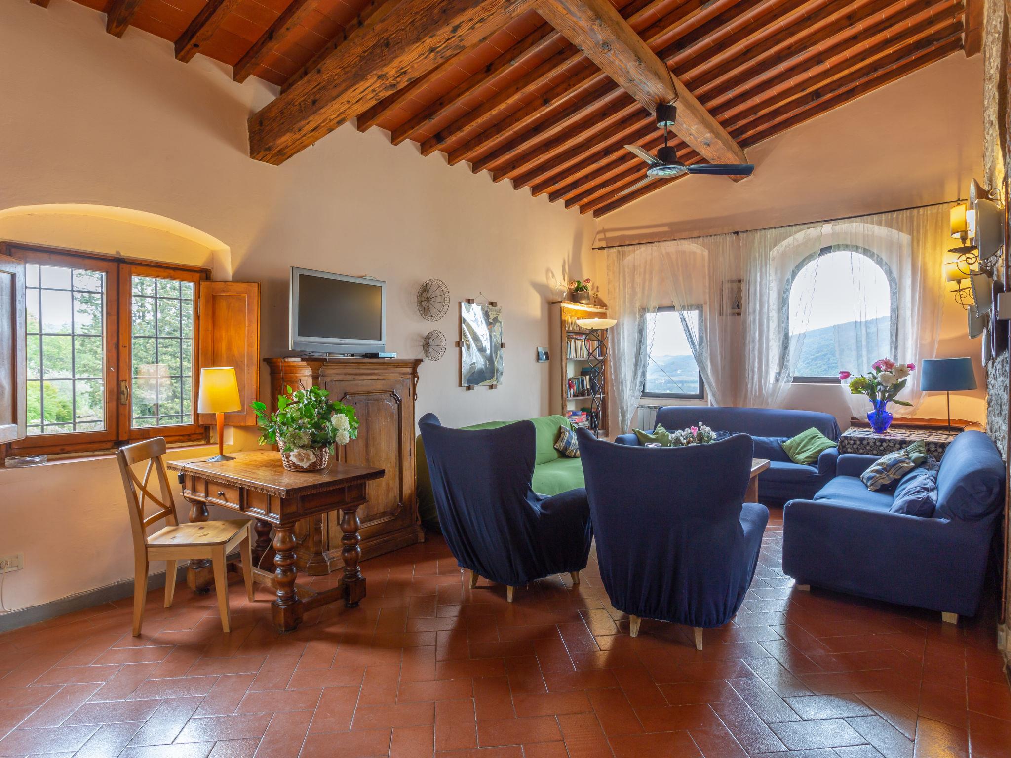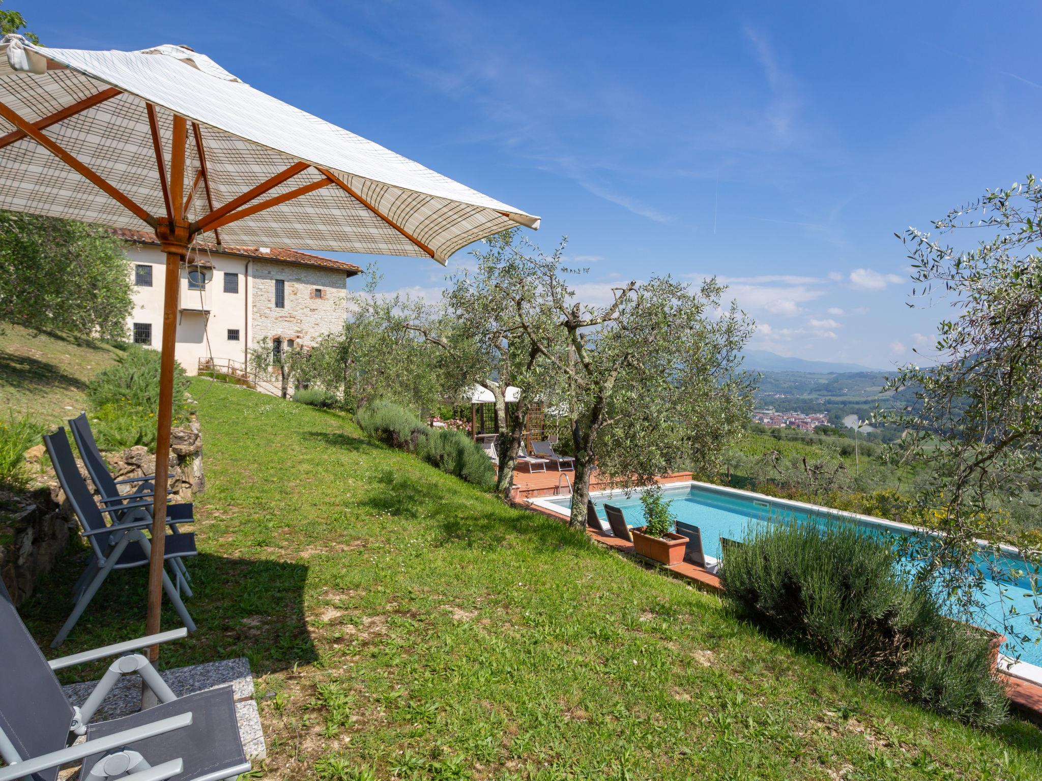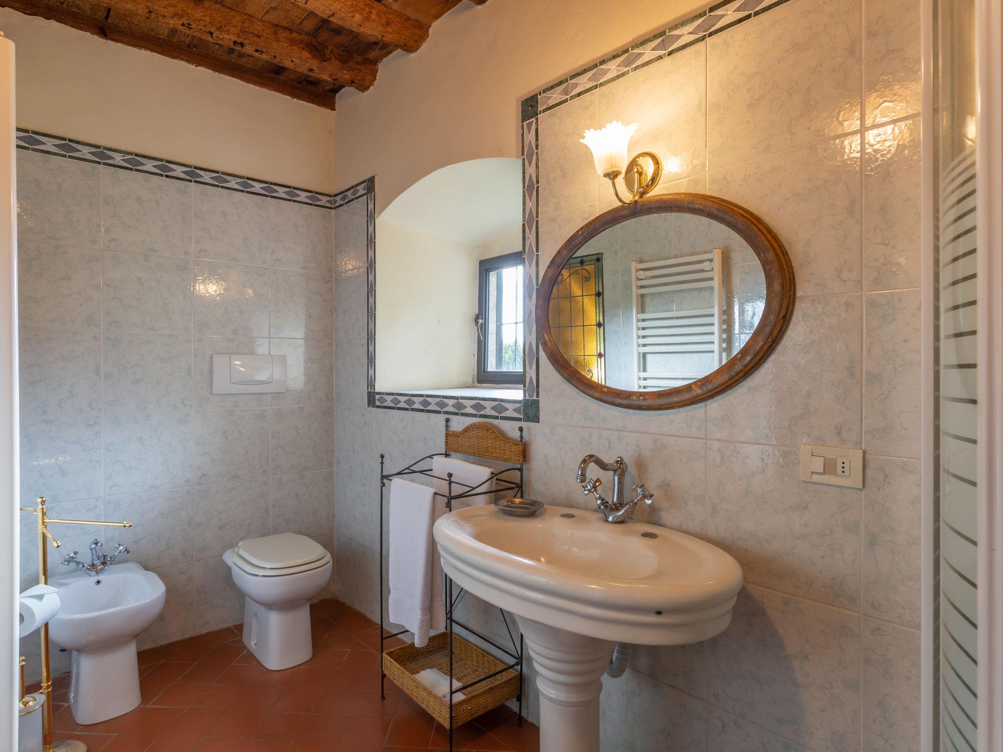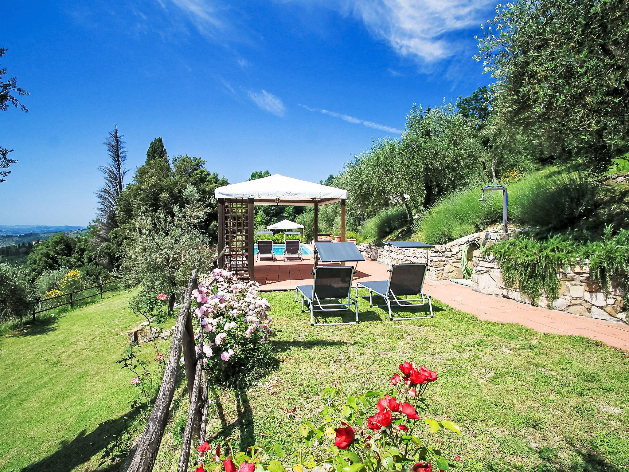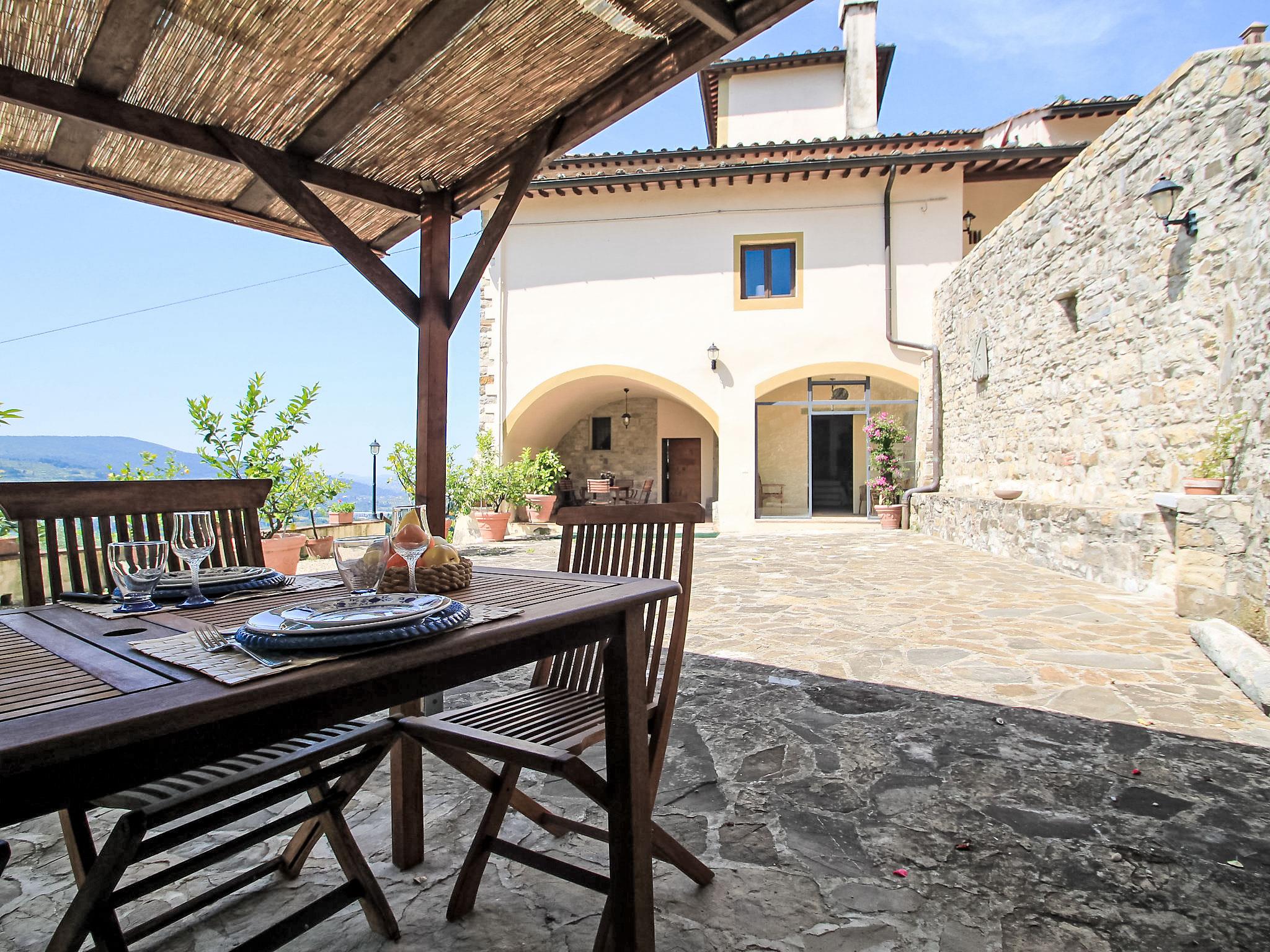 Sieci 12 km from Firenze: The estate comprises of a main house plus an adjoining apartment where the caretaker lives and a barn where the owners sometimes live. Villa "Monteloro", 300 m a.s.l., from the 12nd century, renovated in 2005. 2 km from the centre of Sieci, 12 km from the centre of Firenze, 80 km from the centre of Siena, in a sunny, elevated position on top of a hill. Private: property 25 ha, garden (fenced), swimming pool (13 x 5 m, depth 140 cm, seasonal availability: 16.Apr. - 01.Oct.). Outdoor shower, pool house with fridge, shower, WC and cooking stove, barbecue. In the house: washing machine, heating to be paid on the spot, heating available only from 01.Nov. - 15.Apr.. Parking on the premises. Shop 2 km, grocery 2 km, supermarket 2 km, bus stop 1.5 km, railway station "Sieci" 2 km, sandy beach "Versilia" 110 km. Golf course (18 hole) 24 km, tennis 3 km. Nearby attractions: Fiesole 15 km, Outlet The Mall 20 km, Reggello 30 km, Vallombrosa 35 km.