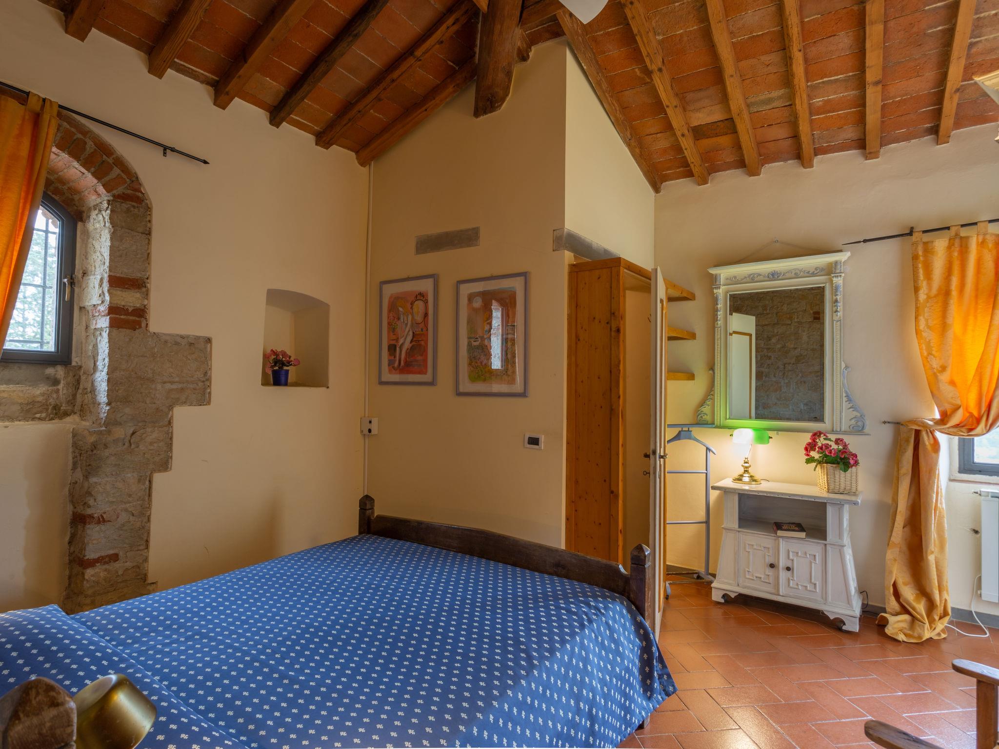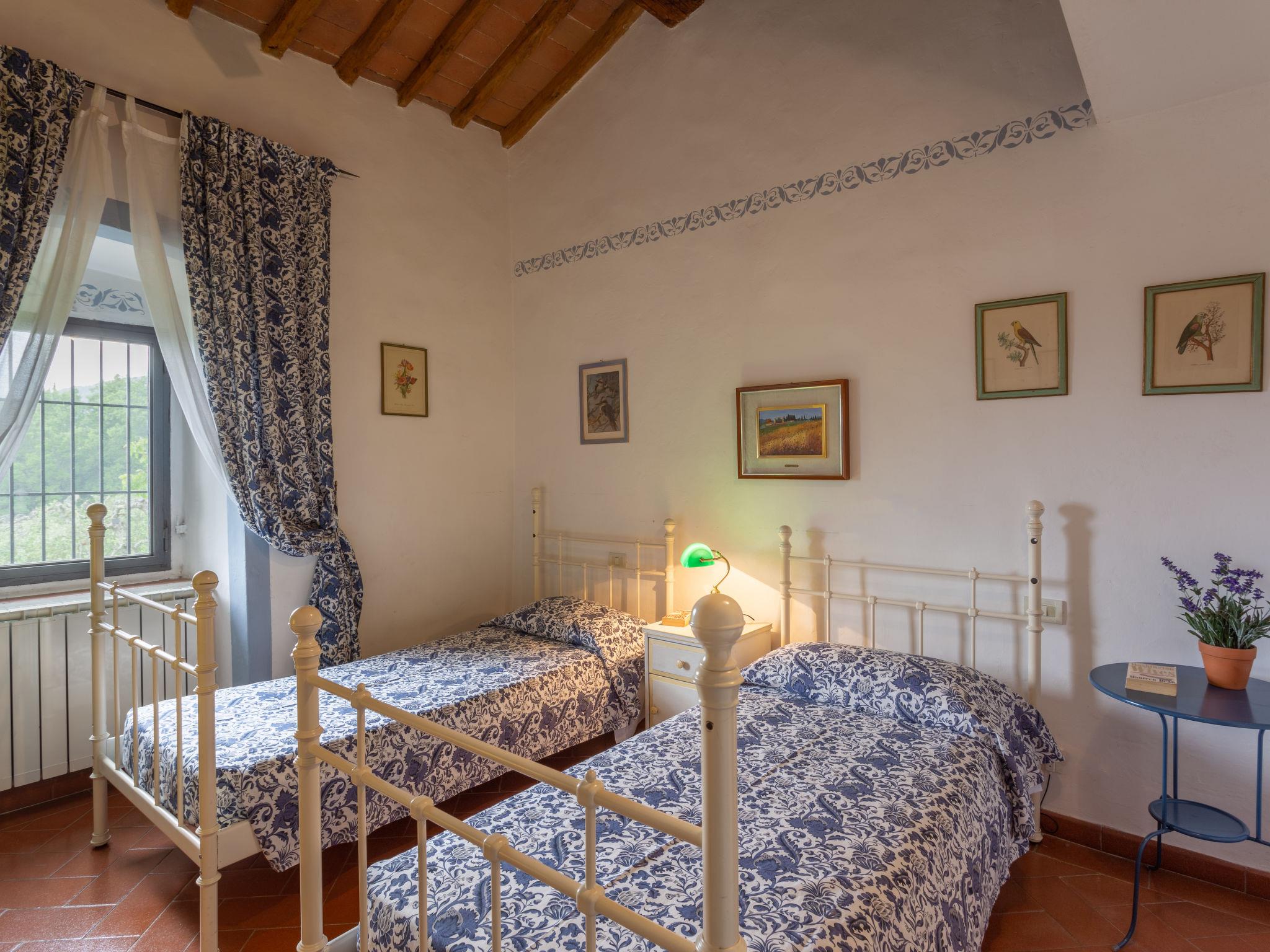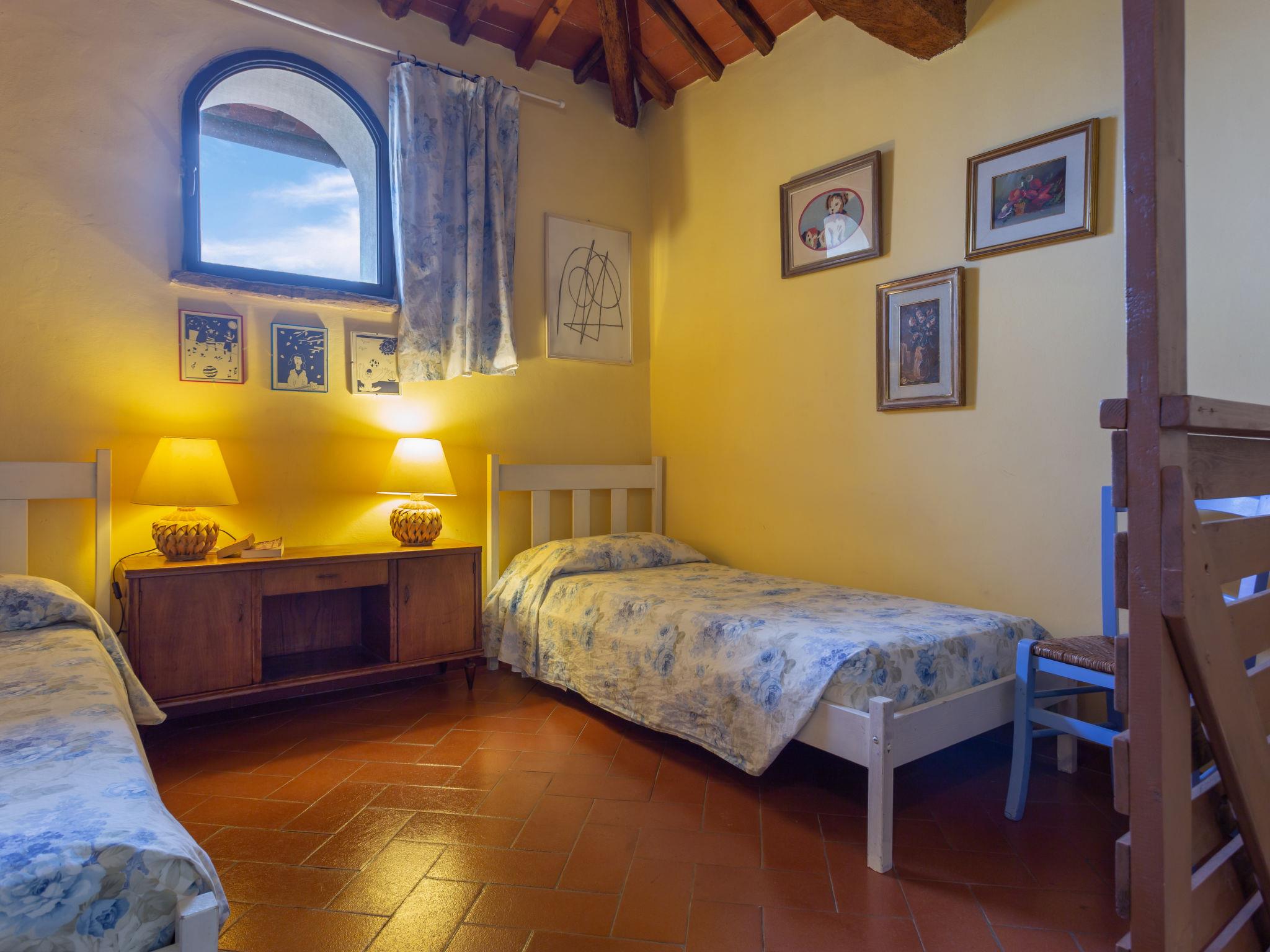"Villa Monteloro", 8-room house 240 m2 on 4 levels, on the ground floor. Entrance hall. Shower/bidet/WC. Upper floor: open living room with open-hearth fireplace and satellite TV. Lounge. Exit to the terrace. 2 double bedrooms. Open kitchen (4 hot plates, oven, dishwasher, toaster, kettle, microwave, freezer, electric coffee machine) with dining table. 2 showers/bidet/WC. 2nd upper floor: 1 double bedroom with shower/WC. 1 room with 2 beds and shower/WC. 1 double bedroom. Shower/bidet/WC. 3nd upper floor: 1 room with sloping ceilings with 2 beds. 2 terraces. Panoramic view of the countryside. Facilities: mosquito net, children's high chair, hair dryer. Internet (WiFi, extra). Maximum 2 pets/ dogs allowed. The main building is suitable for 8 persons, the apartment next door (including kitchen) is suitable for 4 persons. Two terraces from 200 m2 - 300 m2. IT048033C289YCJB9G