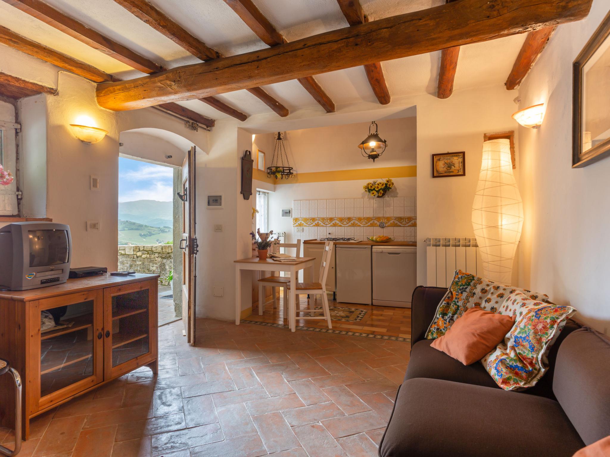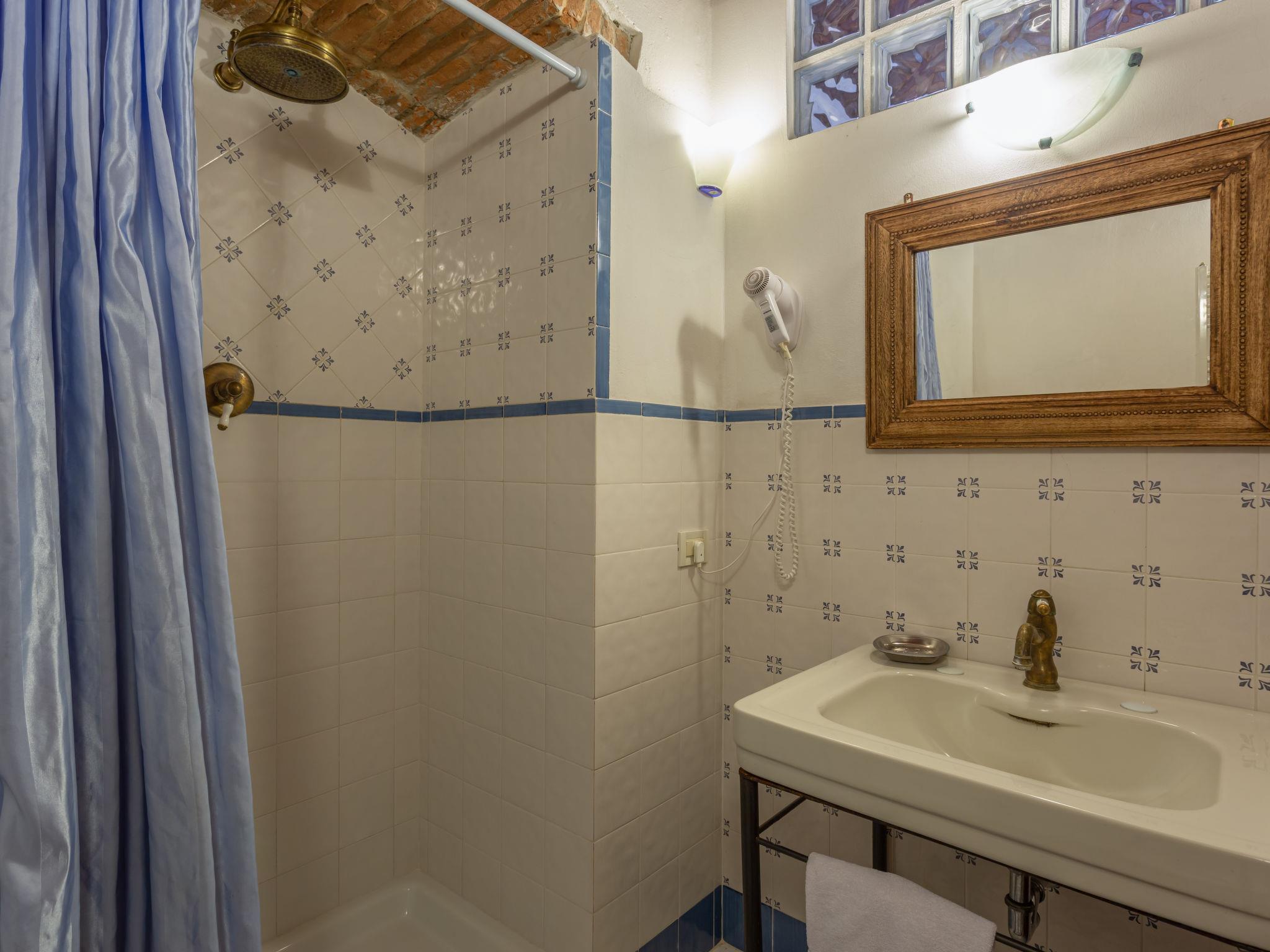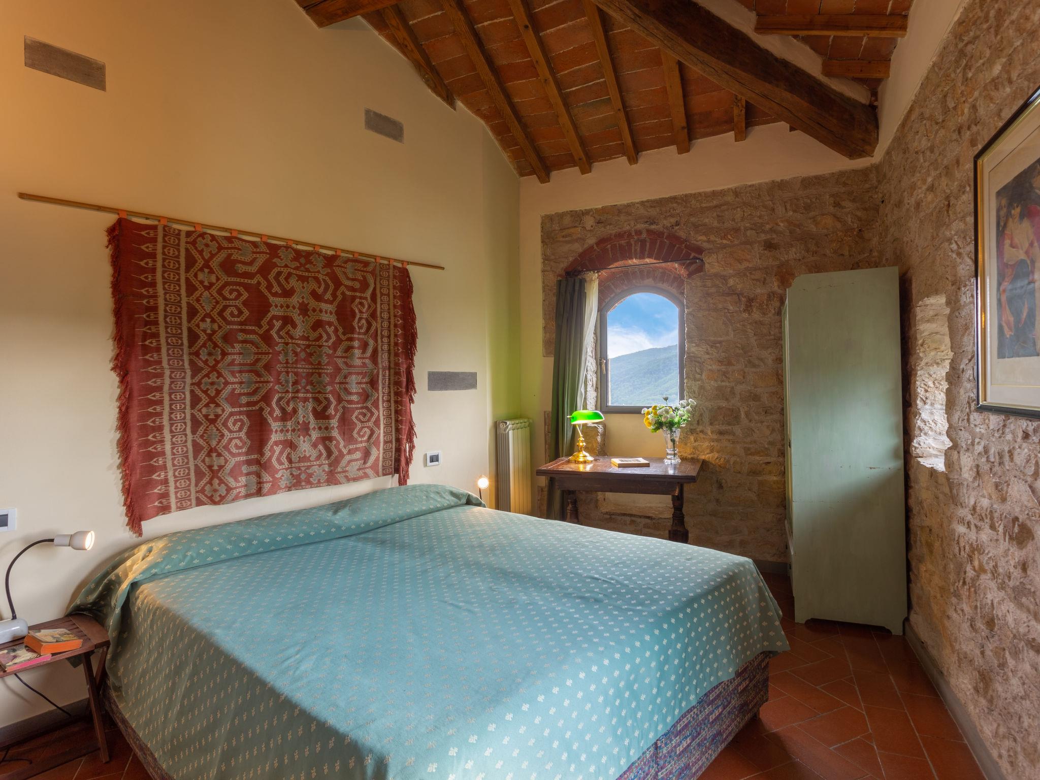 "Villa Monteloro", 8-room house 240 m2 on 4 levels, on the ground floor. Entrance hall. Shower/bidet/WC. Upper floor: open living room with open-hearth fireplace and satellite TV. Lounge. Exit to the terrace. 2 double bedrooms. Open kitchen (4 hot plates, oven, dishwasher, toaster, kettle, microwave, freezer, electric coffee machine) with dining table. 2 showers/bidet/WC. 2nd upper floor: 1 double bedroom with shower/WC. 1 room with 2 beds and shower/WC. 1 double bedroom. Shower/bidet/WC. 3nd upper floor: 1 room with sloping ceilings with 2 beds. 2 terraces. Panoramic view of the countryside. Facilities: mosquito net, children's high chair, hair dryer. Internet (WiFi, extra). Maximum 2 pets/ dogs allowed. The main building is suitable for 8 persons, the apartment next door (including kitchen) is suitable for 4 persons. Two terraces from 200 m2 - 300 m2. IT048033C289YCJB9G