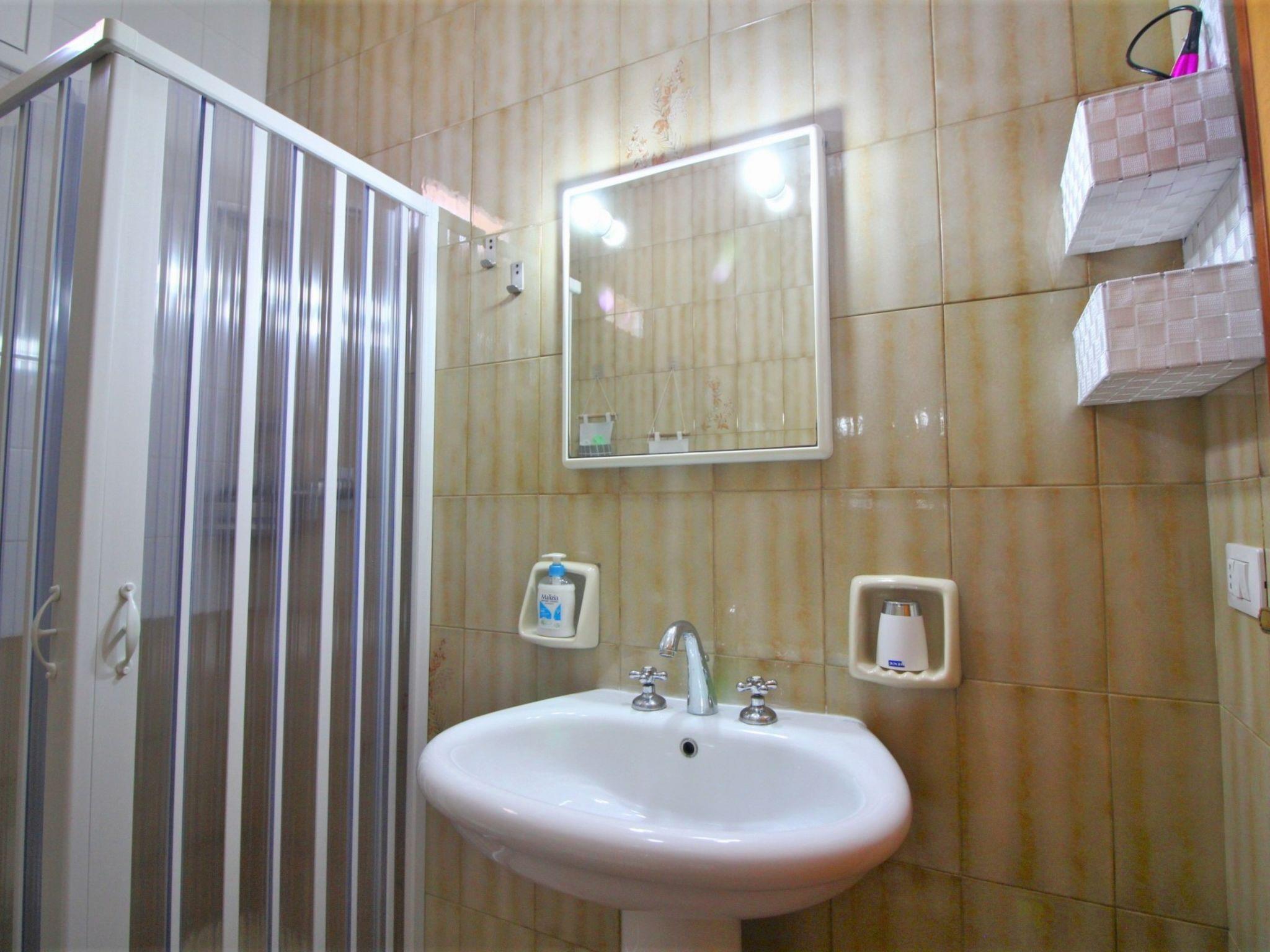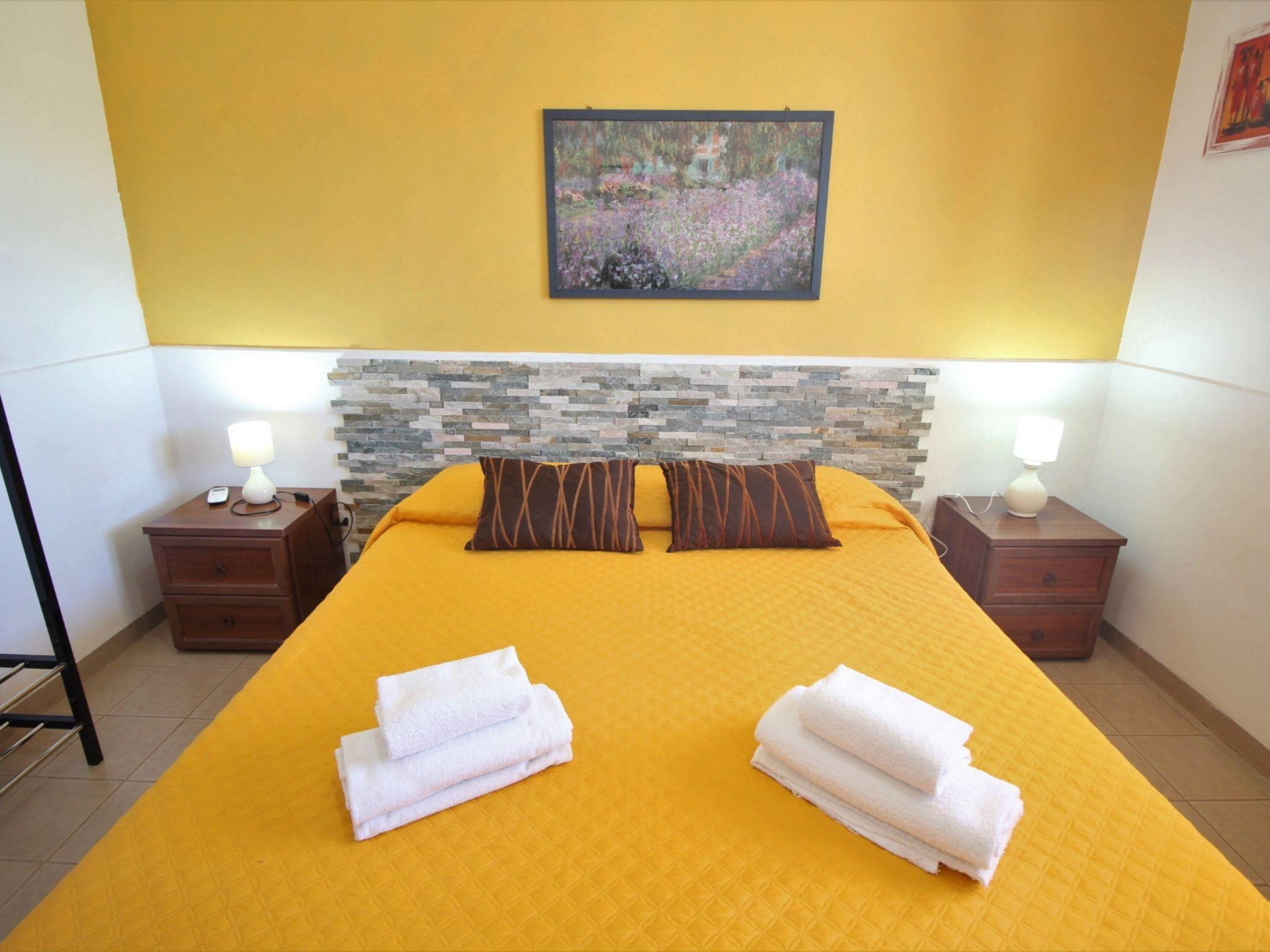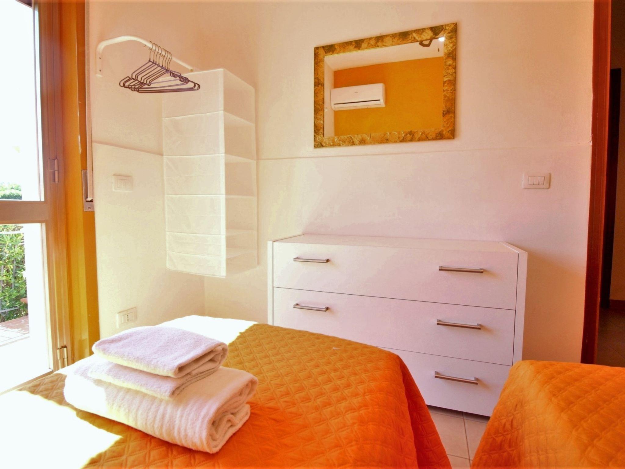 3-room house 80 m2, on the ground floor. Simple and practical furnishings: living/dining room with 1 sofabed and satellite TV (flat screen), fan. 1 double bedroom with air conditioning and forced-air heating. 1 room with 2 beds, air conditioning and forced-air heating. Exit to the terrace. Kitchenette (4 hot plates, oven, dishwasher, toaster, kettle, microwave, freezer, electric coffee machine). Exit to the terrace. Shower/bidet/WC. Heating, forced-air heating, boiler (50 litres). Heating available only from 01.12. to 31.03, Heating not available in all rooms. Terrace 50 m2, roofed. Terrace furniture, deck chairs. View of the swimming pool and the garden. Facilities: washing machine, iron, children's high chair, baby cot for up to 2 year olds (extra), hair dryer. Internet (WiFi, free). Parking (2 cars). Please note: maximum 2 pets/ dogs allowed. Smoke alarm, fire extinguisher. IT089017C2DU5NFSCN