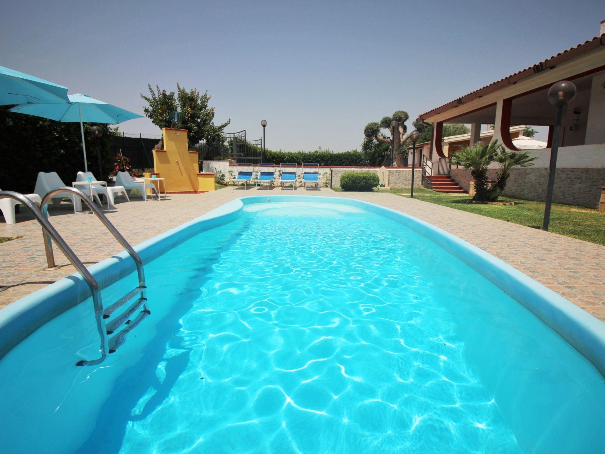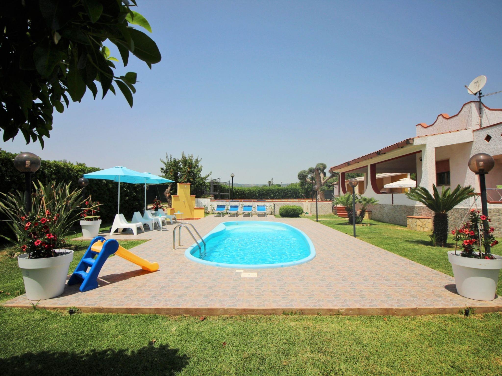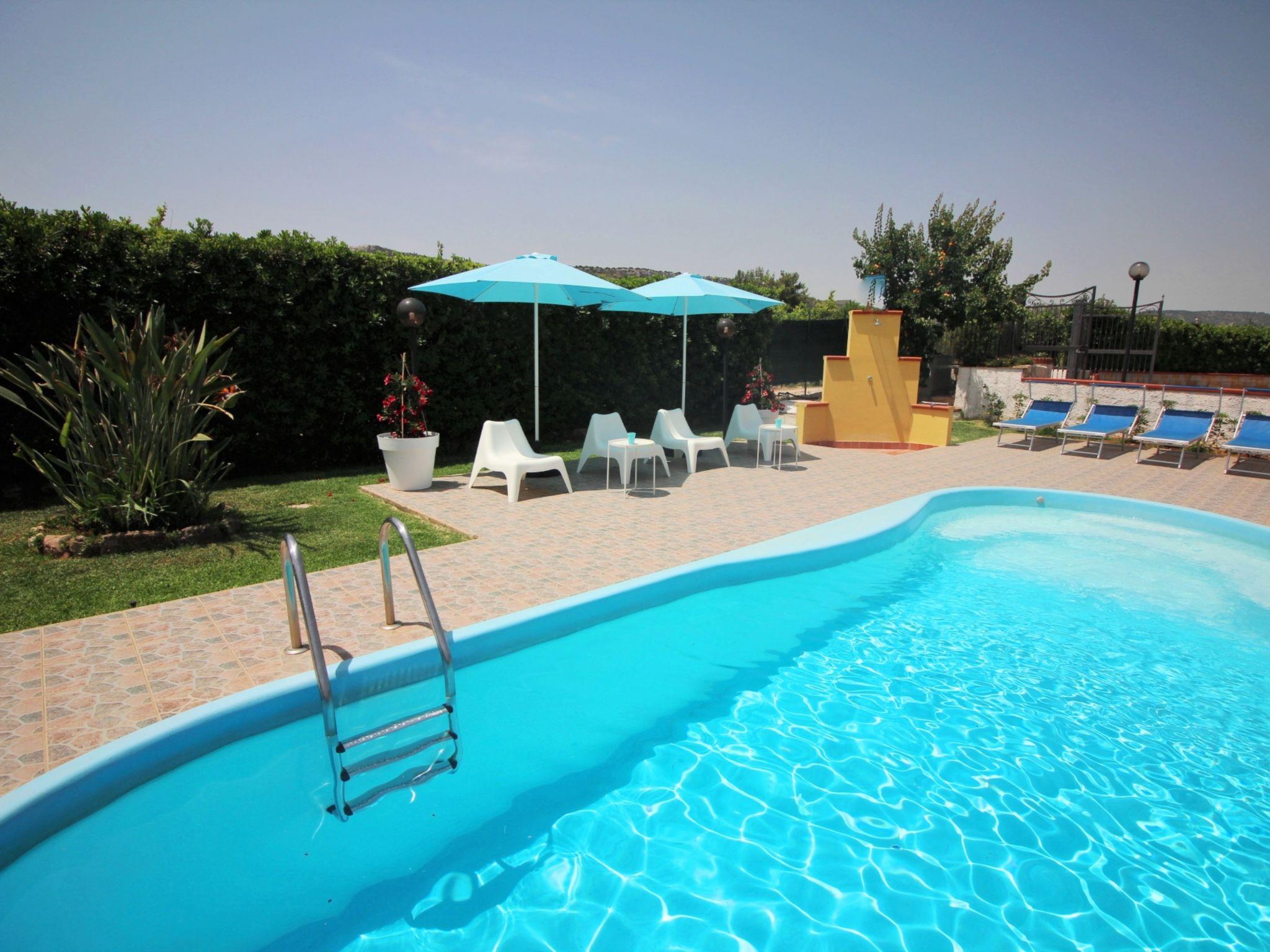 Villa "Andrea", surrounded by trees and fields. 5 km from the centre of Floridia, 18 km from the centre of Siracusa, in a quiet, sunny position, 15 km from the sea. Private: property 4'000 m2 (fenced), garden 500 m2, swimming pool kidney shaped (9 x 4 m, depth 100 - 180 cm, seasonal availability: 01.Apr. - 30.Oct.). Outdoor shower, garden furniture, barbecue. Heating available only from 01.Dec. - 31.Mar.. Parking (for 2 cars) on the premises. Grocery 5 km, supermarket 5 km, restaurant 5 km, bar 5 km, bus stop "Floridia" 5 km, railway station "Siracusa" 15 km, sandy beach "Fontane Bianche" 18 km, rocky beach "Plemmirio" 25 km. Tennis 5 km, children's playground 5 km. Nearby attractions: Siracusa 18 km, Necropoli di Pantalica 32 km, Noto 32 km, Marzamemi 49 km, Modica 65 km, Ragusa 70 km. Please note: car recommended. The tap water has no drinking water quality.