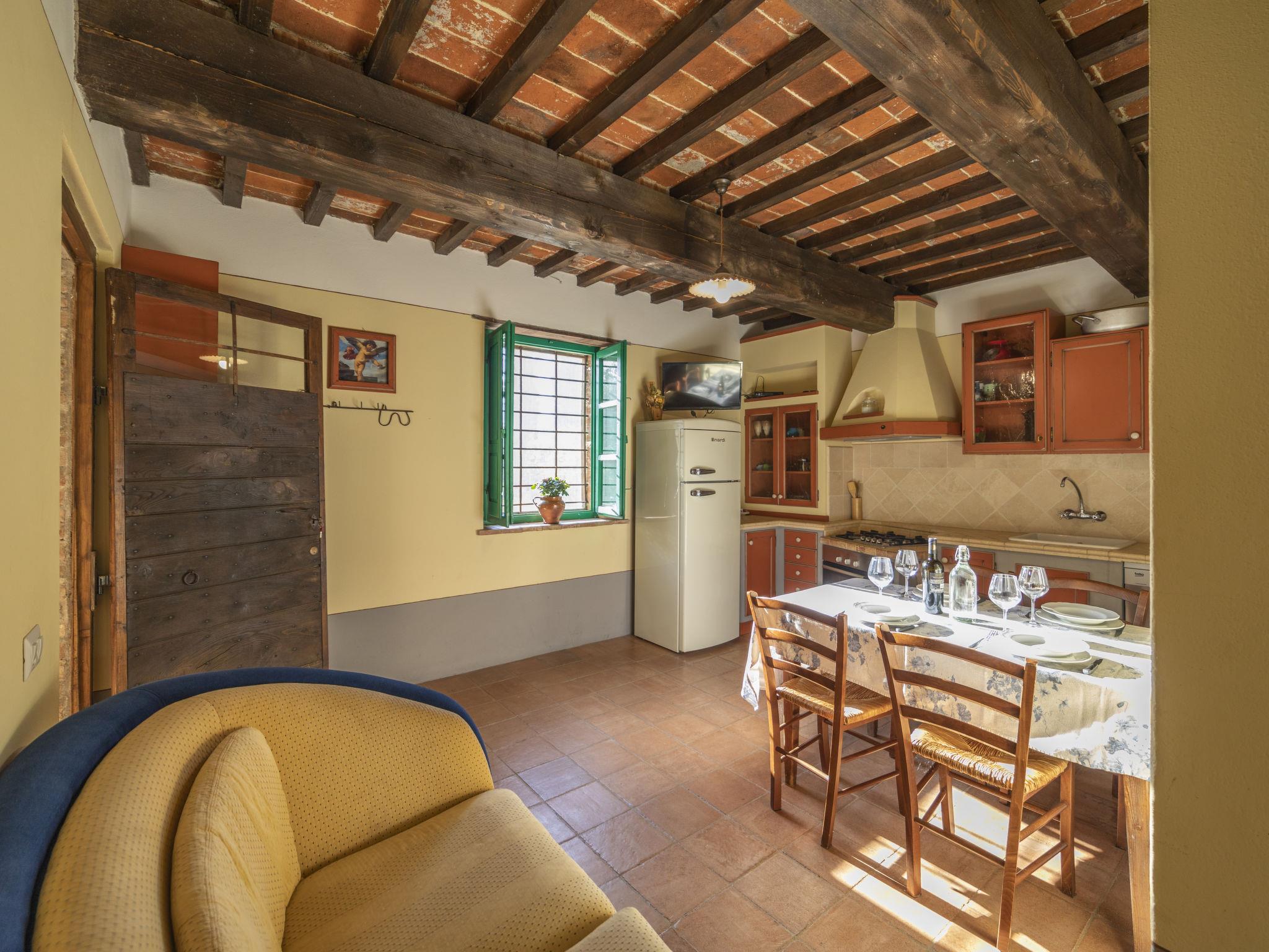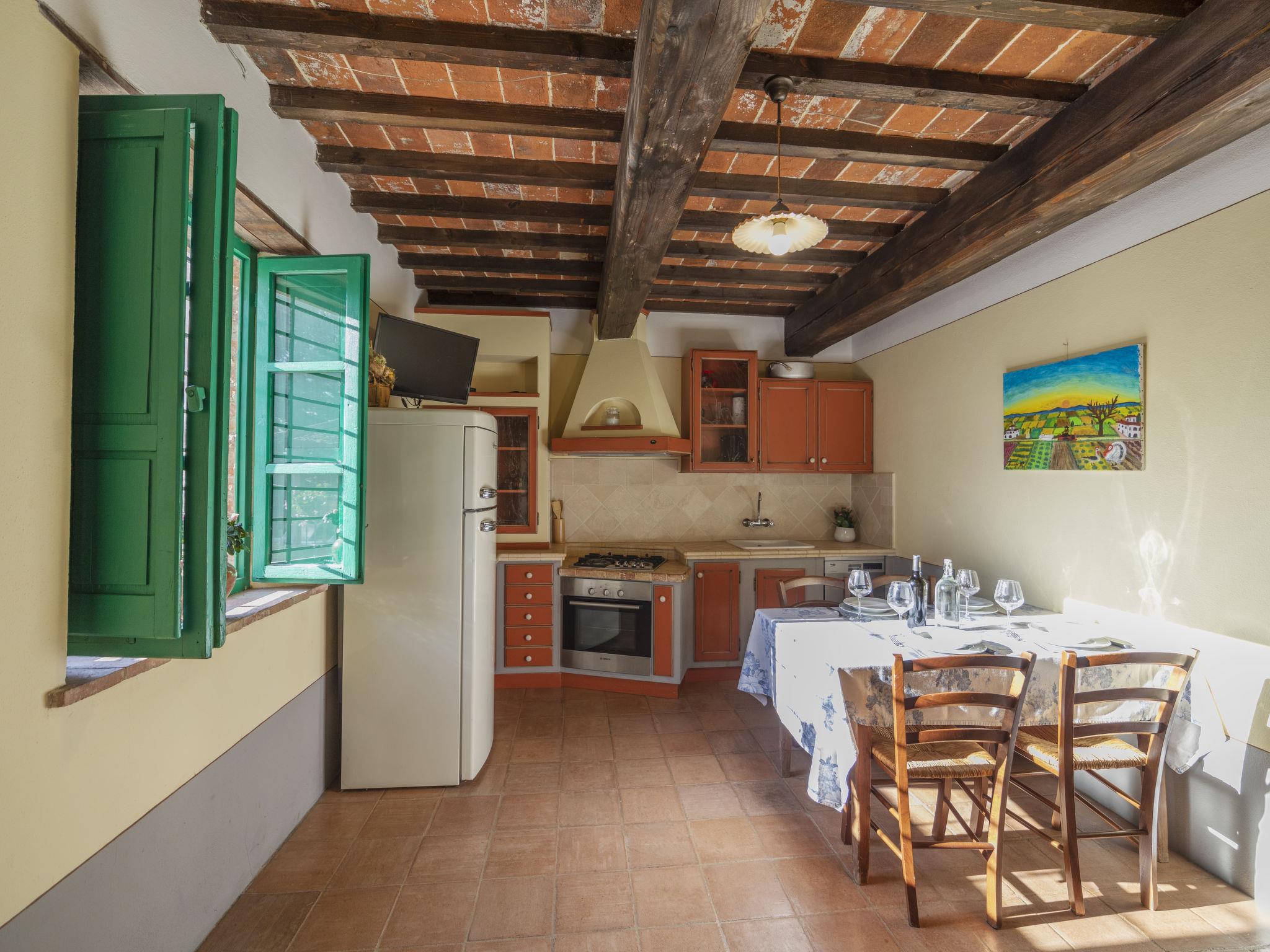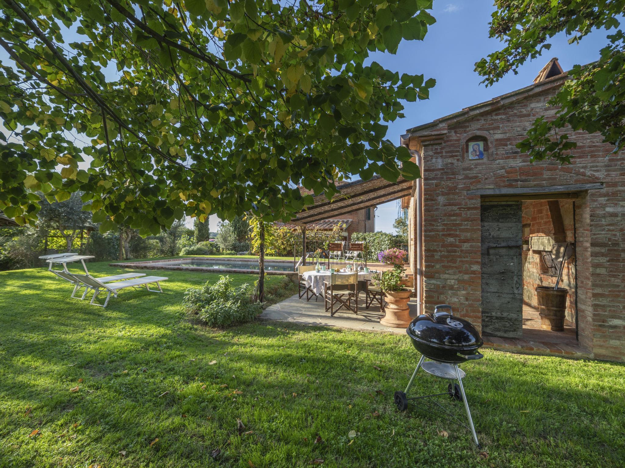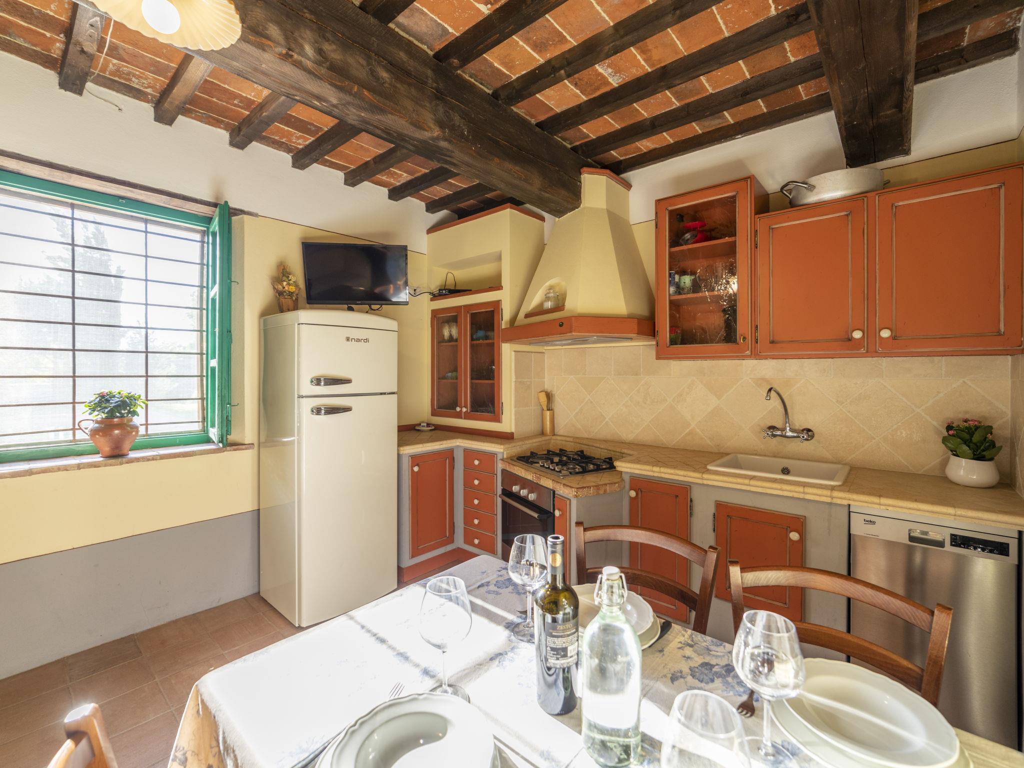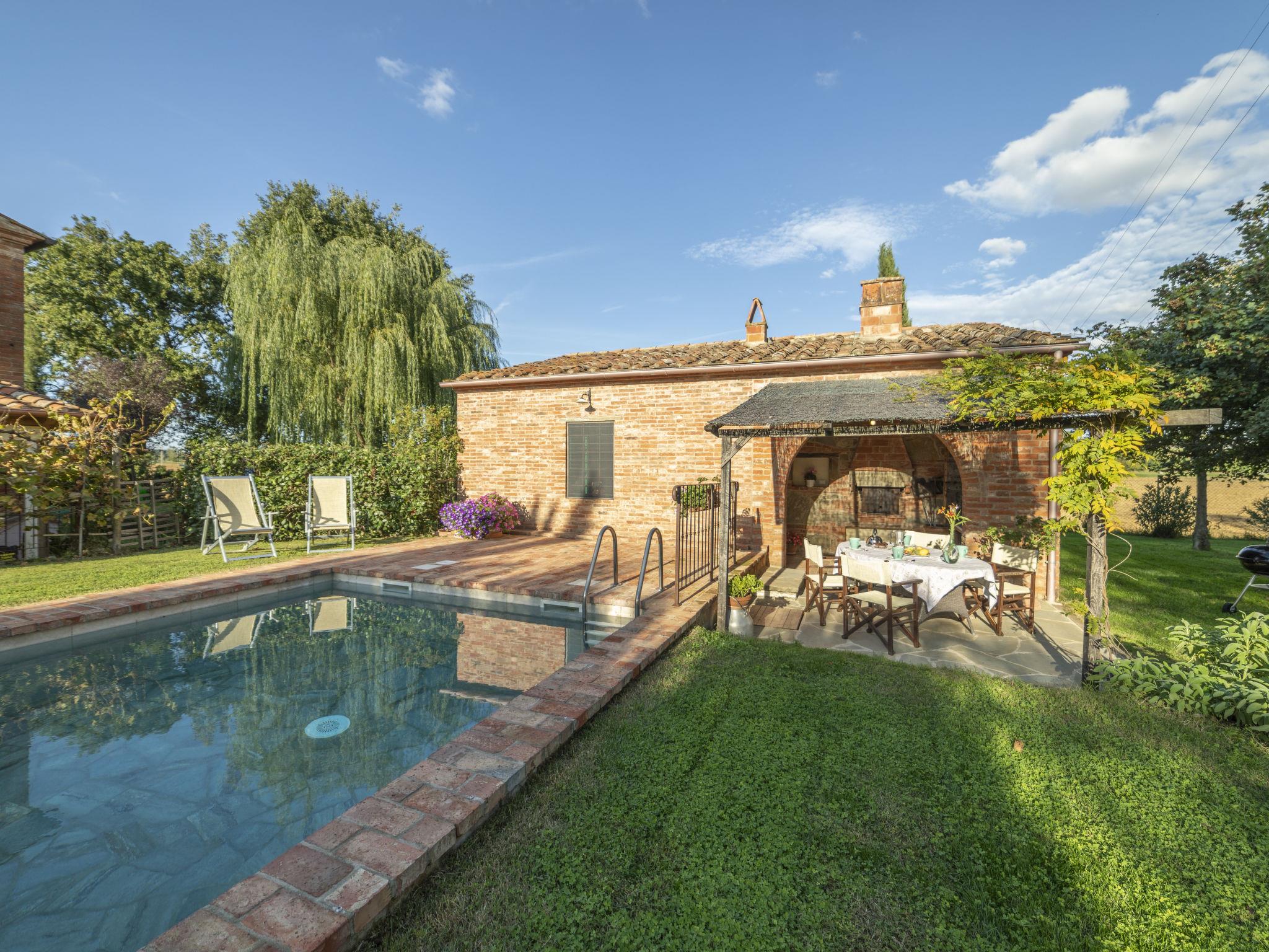 Cosy single-family house "La Capannina", detached, renovated, surrounded by fields. Foiano della Chiana 6 km from the centre of Foiano della Chiana, in a sunny position, 25 km from the lake, in the countryside. For shared use: property 2'000 m2 (fenced). Private: garden 1'000 m2 (fenced), swimming pool (8 x 4 m, depth 150 cm, seasonal availability: 01.May. - 30.Sep.). Shower/WC in the pool area, pergola, garden furniture, barbecue, barbecue house. In the house: internet access. Motor access (1.5 km via unmade road). Parking on the premises. Shop 2 km, supermarket 5 km, shopping centre 3 km, restaurant 3 km, bus stop 5 km, thermal baths "Rapolano Terme" 23 km, bathing lake "Trasimeno" 25 km. Golf course (12 hole) 10 km, riding stable 3 km. Nearby attractions: Cortona 20 km, Montepulciano 20 km, Pienza 30 km, Castiglione Del Lago 31 km, Arezzo 32 km, San quirico D'Orcia 38 km. Please note: car recommended. Suitable for families. Object suitable for 4 adults + 1 child. The owner lives on the same property. The owner has a dog.