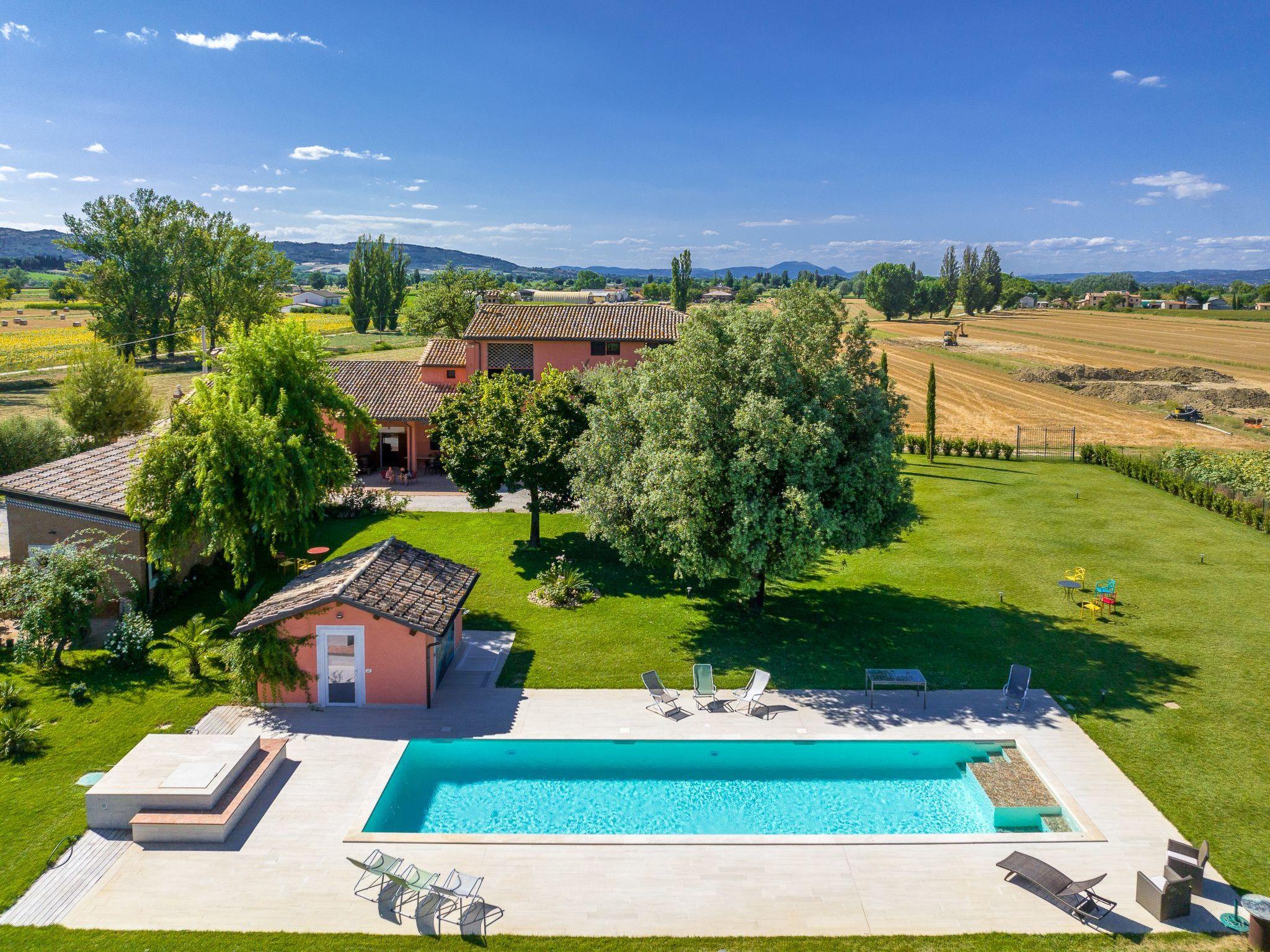 It is located 2 km from Bevagna, listed among the most beautiful villages in Italy, and a short distance from other medieval towns such as Trevi, Spello, Assisi and Perugia.