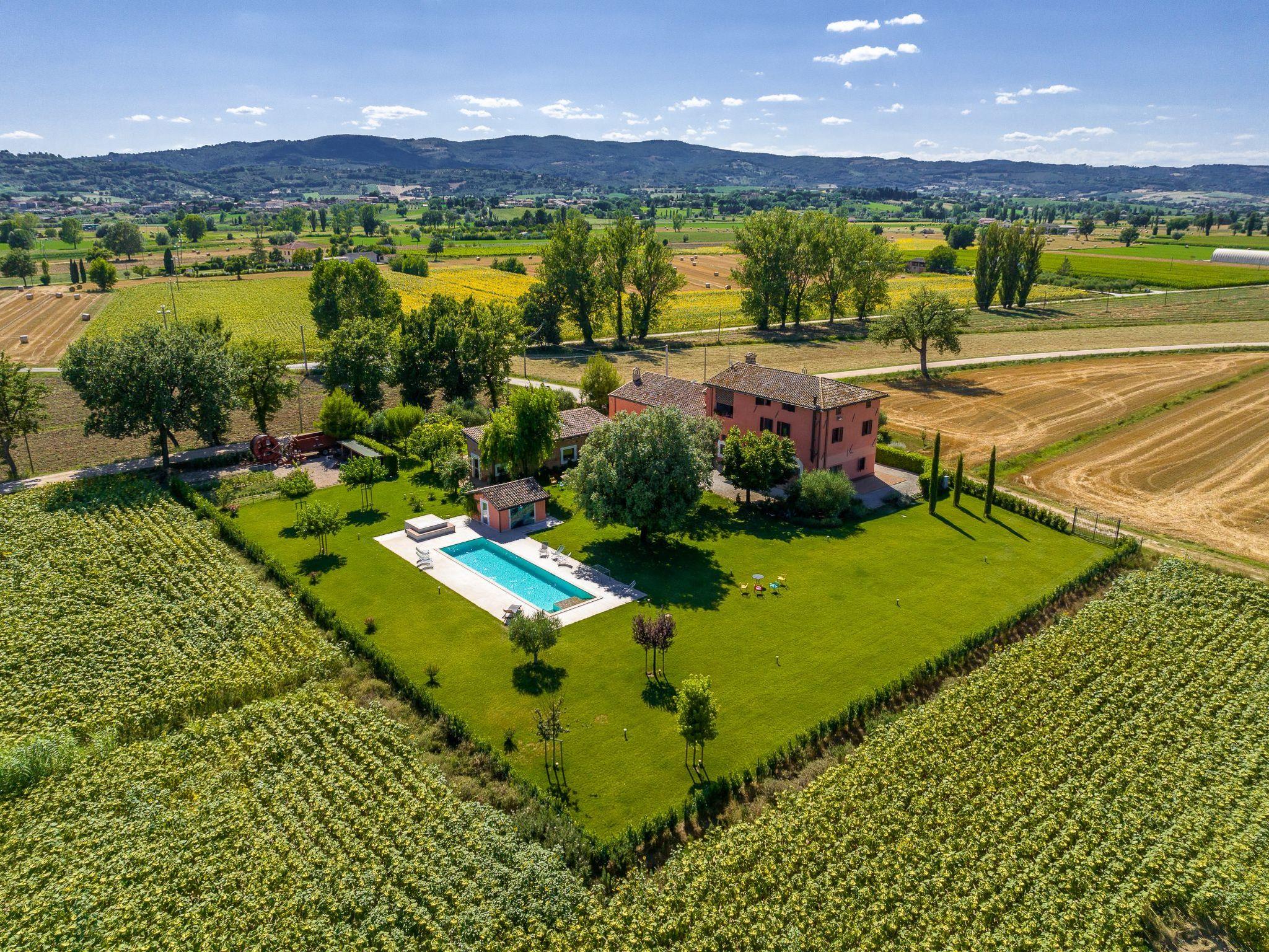 The Casale is located on a 30-hectare farm, surrounded by extensive cultivated fields and enjoys an exceptional view of Assisi and Mount Subasio.
