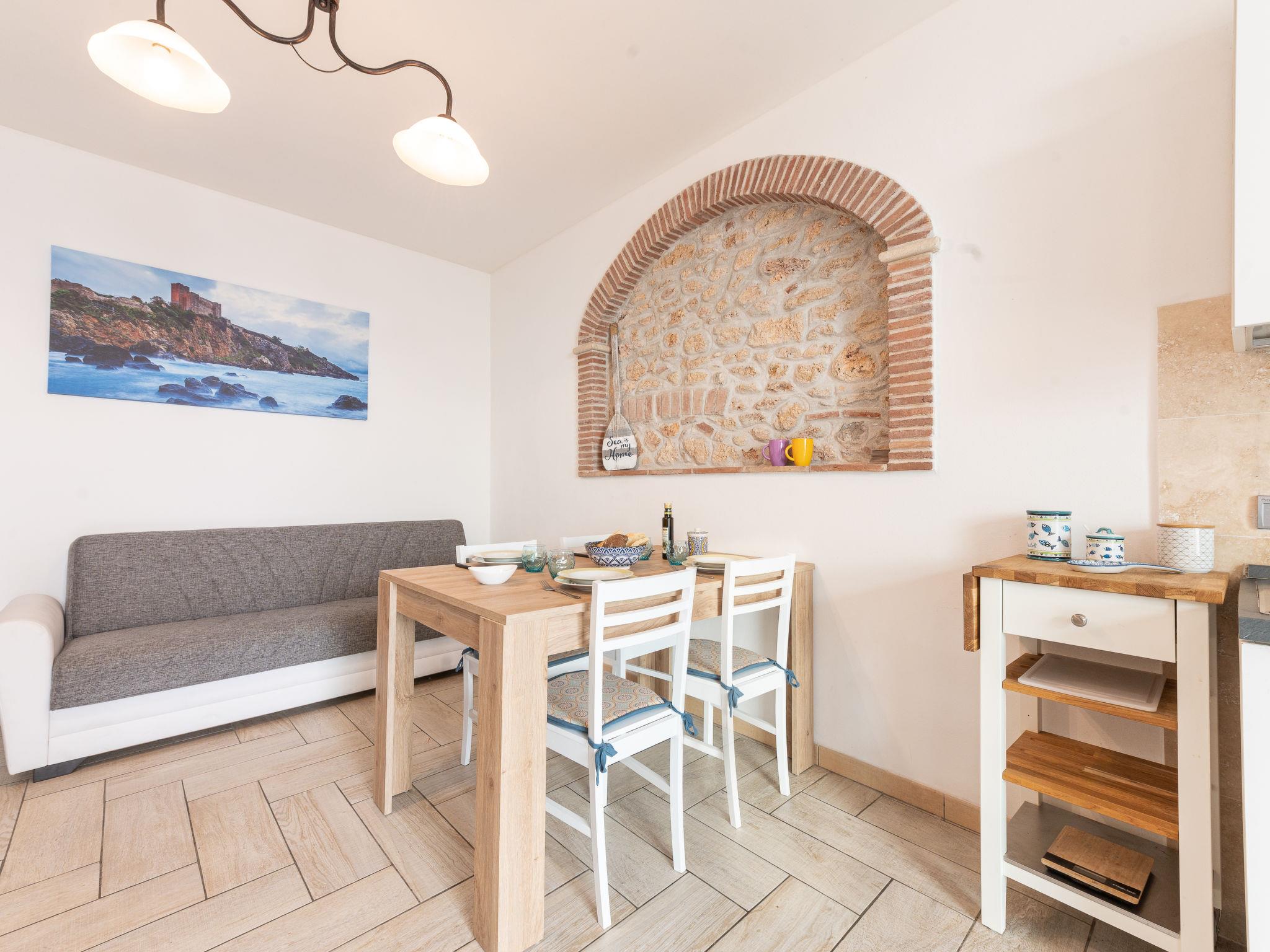 3-room apartment 57 m2, on the ground floor. Comfortable and cosy furnishings: living/dining room with dining table, TV and air conditioning. 1 room with 1 bed (80 cm), 1 double bed (160 cm), air conditioning. 1 room with 2 beds (80 cm). Open kitchen (oven, 4 gas rings, toaster, kettle, electric coffee machine). Shower/bidet/WC. Gas heating. Box-room. Facilities: washing machine, baby cot for up to 2 year olds (extra), hair dryer. Internet (WiFi). Please note: non-smokers only. Private entrance. IT053009C27XC8FEIB
