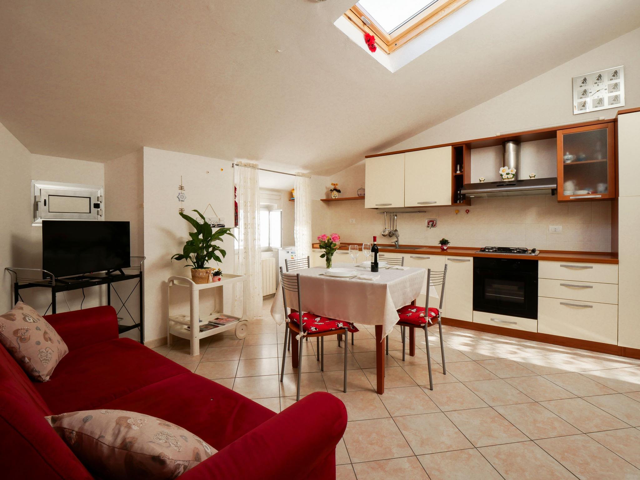"Stefi", 3-room apartment 55 m2 on 2nd floor. Bright, with sloping ceilings, comfortable and cosy furnishings: living/dining room with dining table and TV (flat screen), air conditioning. 1 double bedroom with TV (flat screen), air conditioning. 1 room with 2 beds (80 cm). Open kitchen (oven, dishwasher, 4 gas rings, toaster, kettle, freezer, electric coffee machine). Shower/bidet/WC. Electric heating, gas heating. Heating available only from 01.11. to 15.04. Facilities: washing machine, iron, baby cot for up to 2 year olds, hair dryer. Internet (WiFi, free). Suitable for families. Maximum 1 pet/ dog allowed. No mandatory extra charges to be paid on-site except for local tax. IT053009C2W6DUVCLE