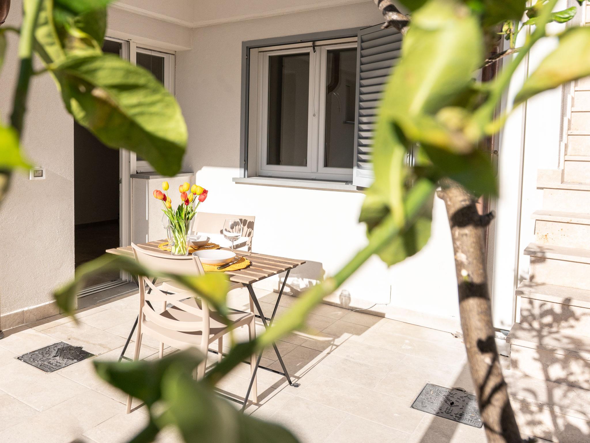 "Pianosa", 3-room apartment 90 m2, on the ground floor. Spacious, modern and tasteful furnishings: living room with 1 double sofabed, dining table, kitchen corner and TV. Exit to the loggia. 1 double bedroom. 1 large room with 1 double bed, 1 sleeping facility, dining nook, kitchen corner and shower/bidet/WC. Exit to the loggia. Open kitchen (dishwasher, 4 gas rings, toaster, kettle, microwave, electric coffee machine). Exit to the loggia. Shower/bidet/WC. Air-conditioning, forced-air heating. Heating available only from 01.11. to 15.04. Large terrace partly roofed, large terrace 30 m2. Terrace furniture. Facilities: washing machine, mosquito net, baby cot for up to 2 year olds, hair dryer. Internet (WiFi, free). Parking (fenced 1 car) at 200 m. Please note: maximum 1 pet/ dog allowed. Smoke alarm, fire extinguisher. No internal connecting door between the separated properties. IT053009C23YQSS45S