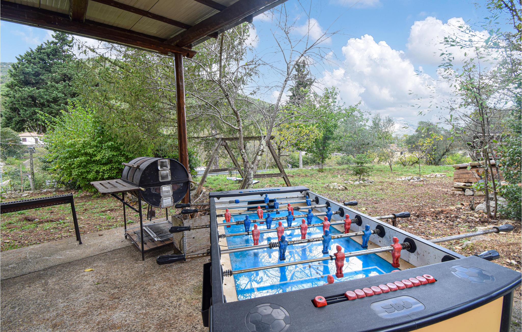 Hvis I gerne vil holde ferie et godt stykke væk fra byens larm, får I skønne, fredfyldte rammer i dette familievenlige feriehus nær Fondi. Her kan I se frem til flot design og praktisk komfort, så I kan bruge stuen med den hyggelige brændeovn som et centralt familiemødested. Der er også skønt i den grønne, naturskønne have. Her kan I spille bordfodbold, se børnene rende rundt eller tænde op i grillen og gøre klar til aftensmaden.