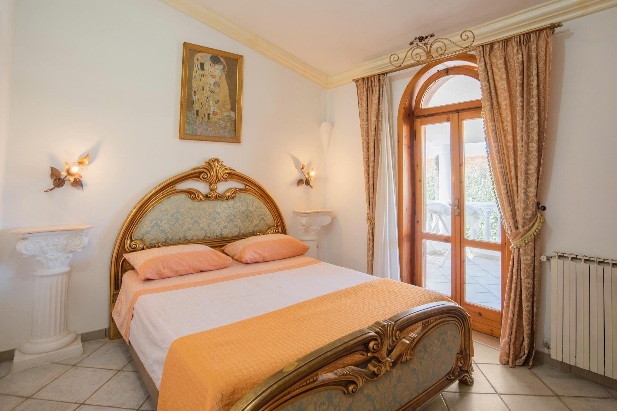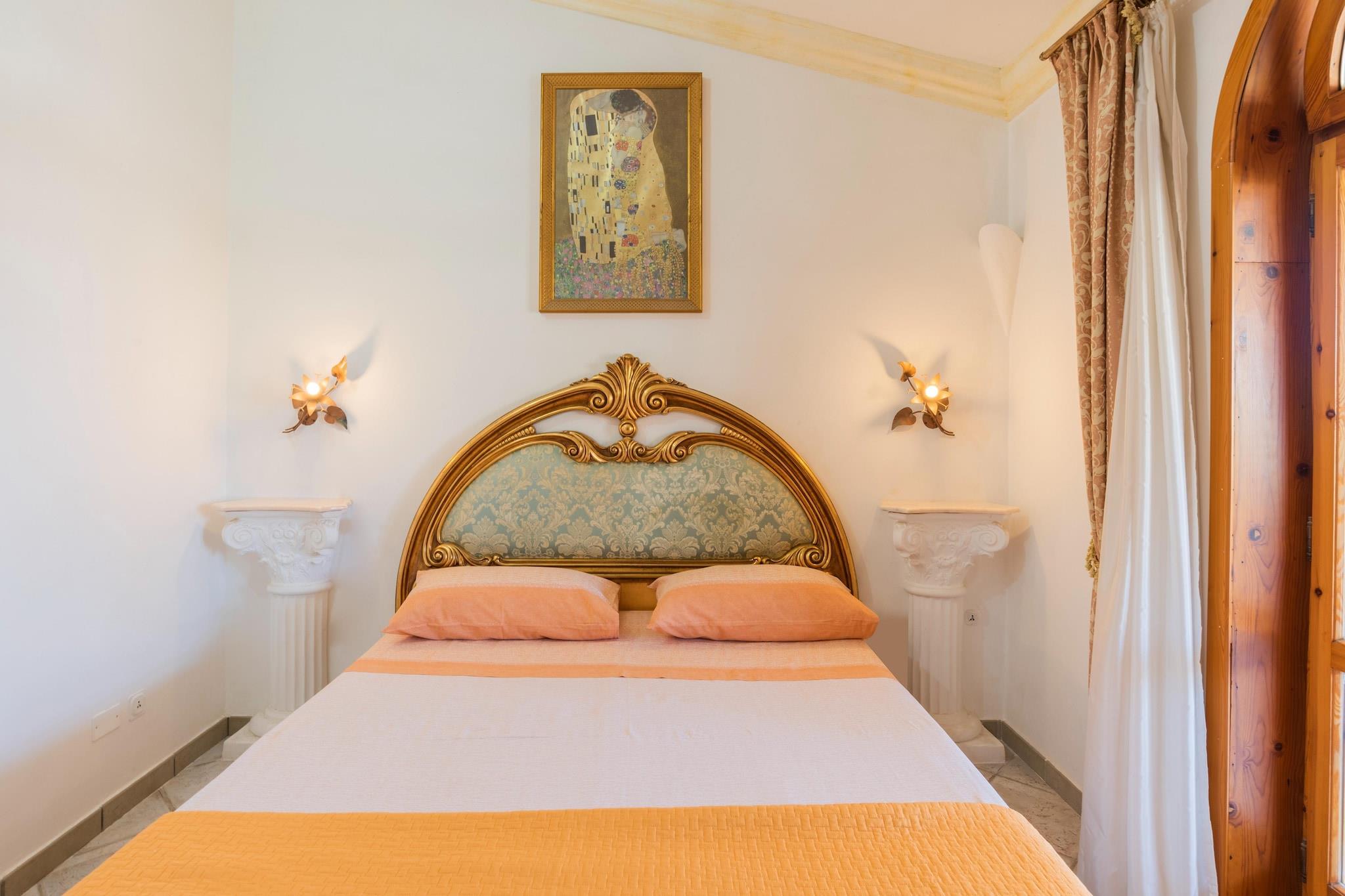 Stueetage: (Indgang ) På 1. etage: (Stue(enkeltseng, Fjernsyn, spisebord, pejs, sofahjørne), åbent køkken(kogeplade, emhætte, ovn, køle-fryseskab, håndvask), soveværelse(dobbeltseng), soveværelse(dobbeltseng), badeværelse(massagebruser, håndvask, toilet, bidet), klimaanlæg, terrasse(privat, overdækket, 15 m2)) bruser(udendørs), vaskemaskine(deles med andre gæster), have(indhegnet), havemøbler, grill, parkering