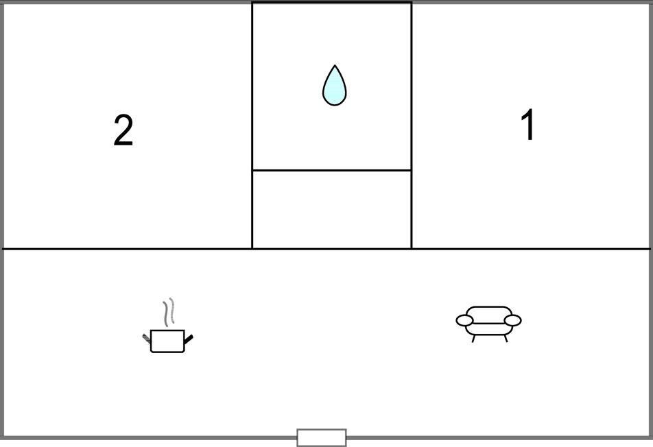 Badeværelse (nr. 1) - WC. Varmt og koldt vand. Bruser