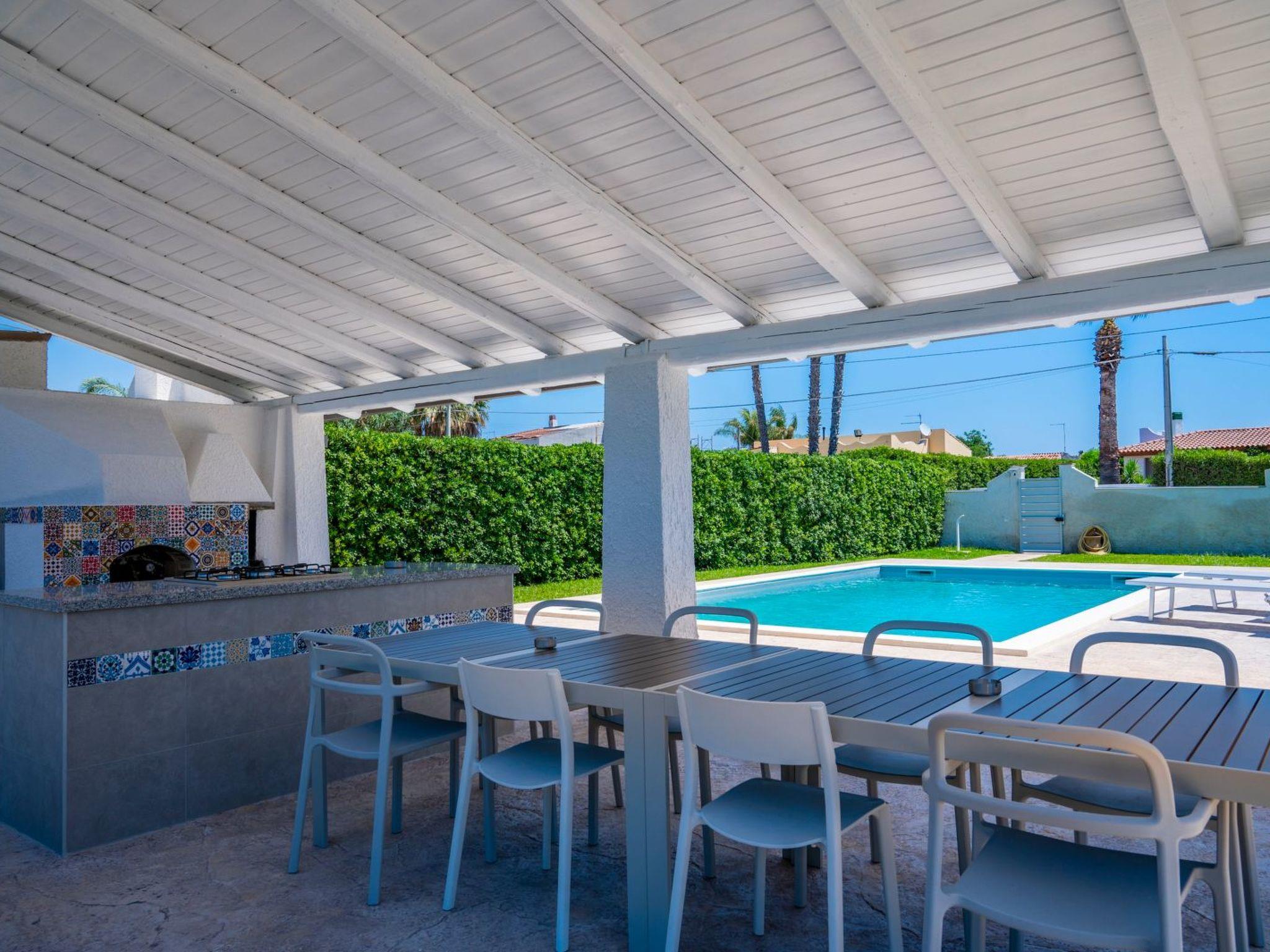 Inside, the villa is distinguished by its attention to detail and comprehensive amenities. It has a total of 5 bedrooms, 3 of which are located on the ground floor - 2 doubles and 1 twin. An additional double room and a twin room with single beds are located on the first floor, providing adequate space for privacy and rest for all guests. All rooms are air-conditioned, providing unparalleled comfort even on the hottest Sicilian summer days. The villa also provides 3 full bathrooms, a washing machine for exclusive use, an induction oven, and a dishwasher, allowing you to live your daily life in a practical and carefree manner.
