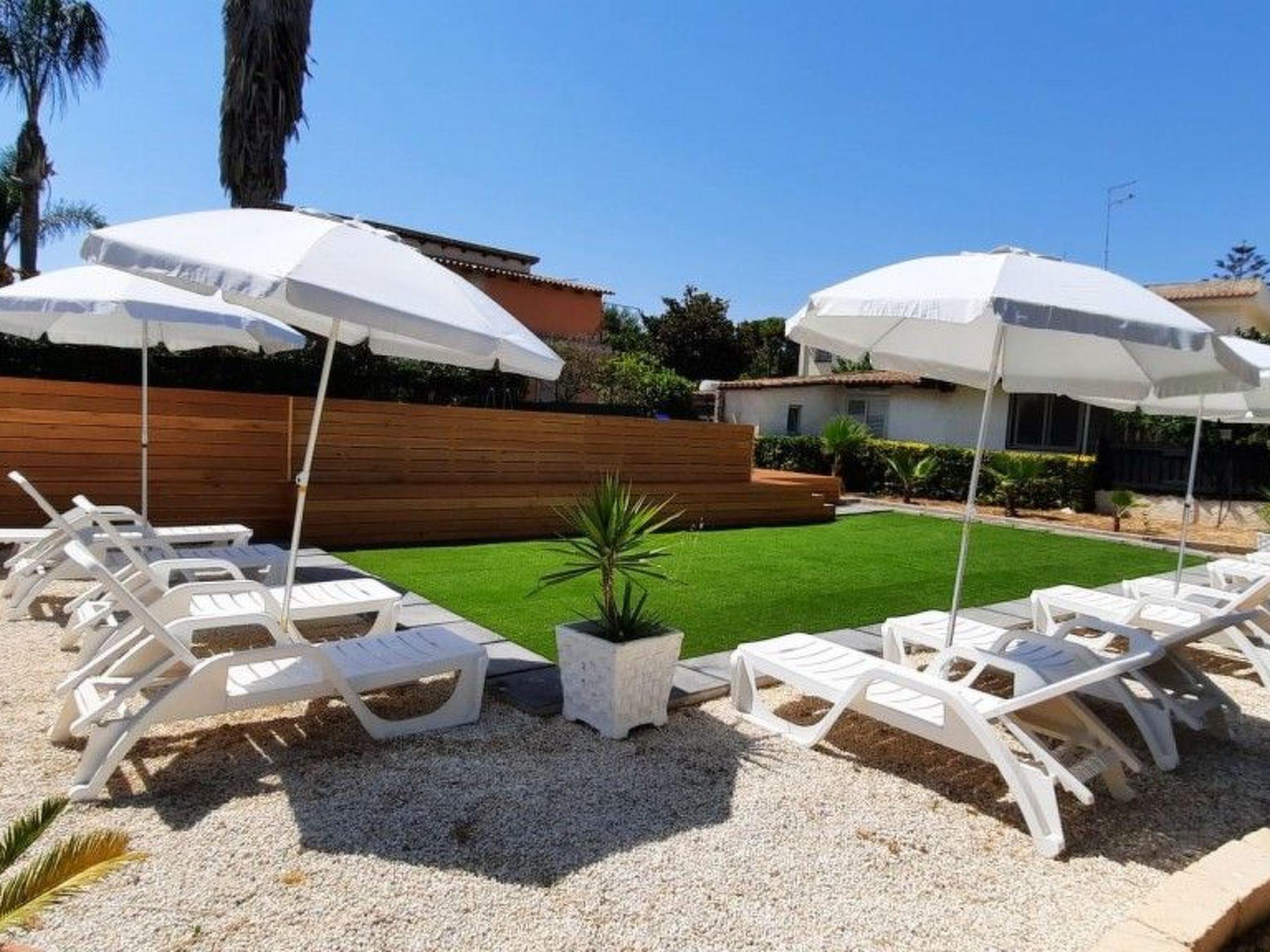 The flat is located in Fontane Bianche, 12 km from Syracuse. It is inside a villa with swimming pool. The sea is 300 m away, the sandy beach 2 km.