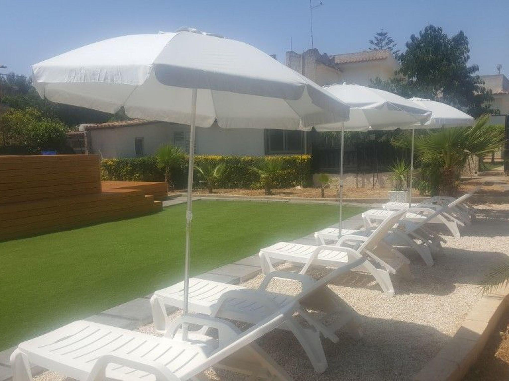 The flat is located in Fontane Bianche, 12 km from Syracuse. It is inside a villa with swimming pool. The sea is 300 m away, the sandy beach 2 km.