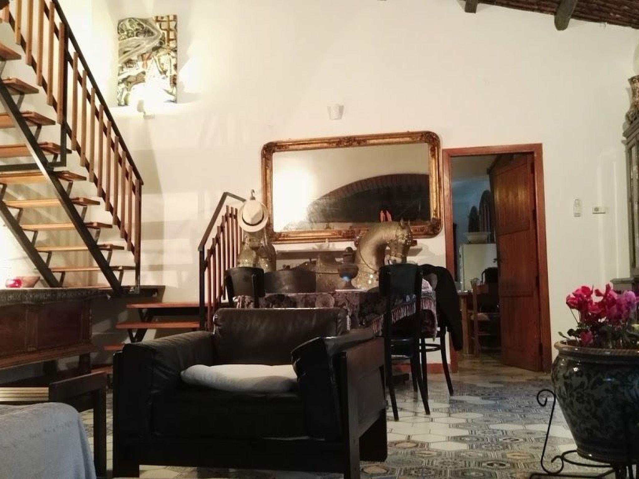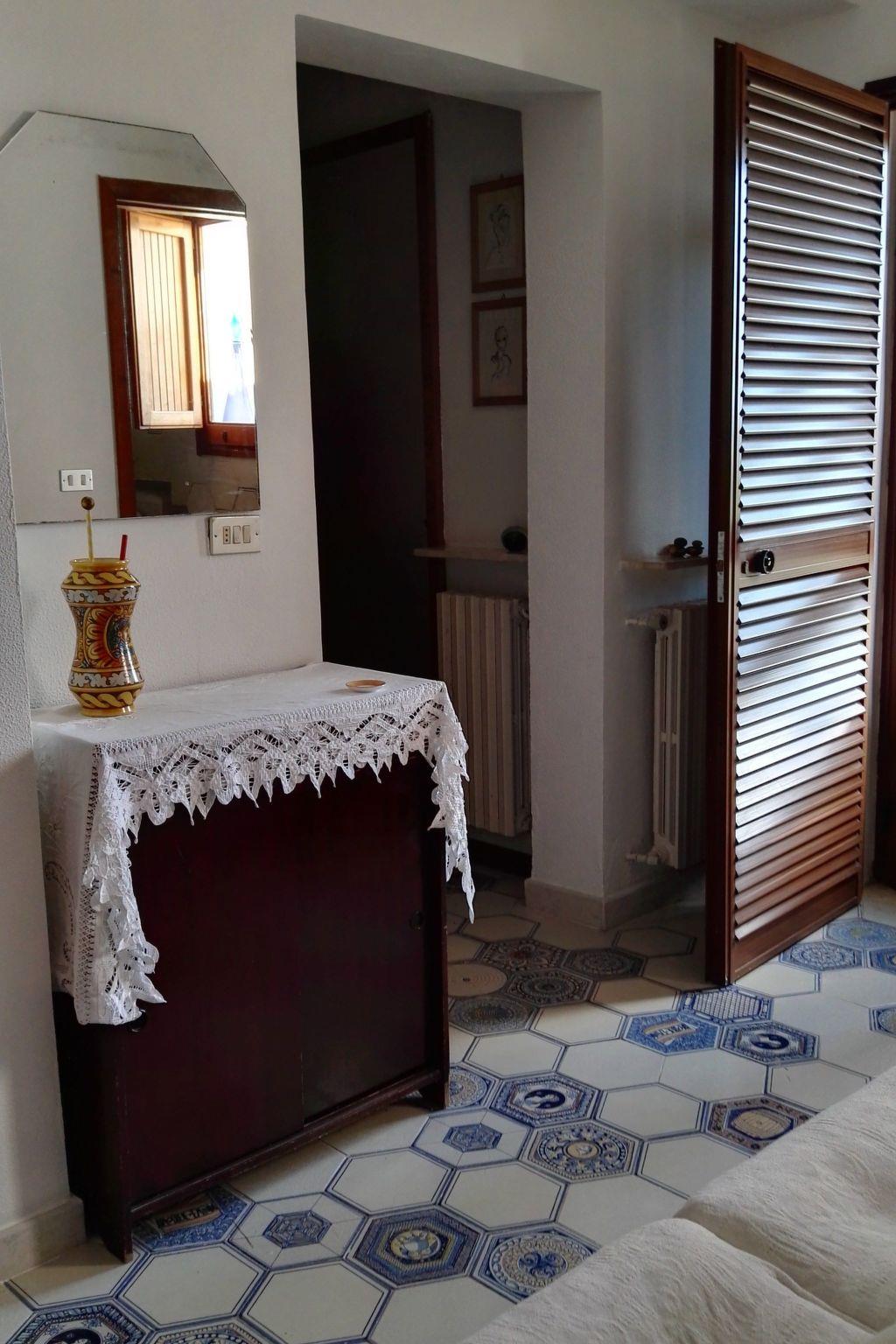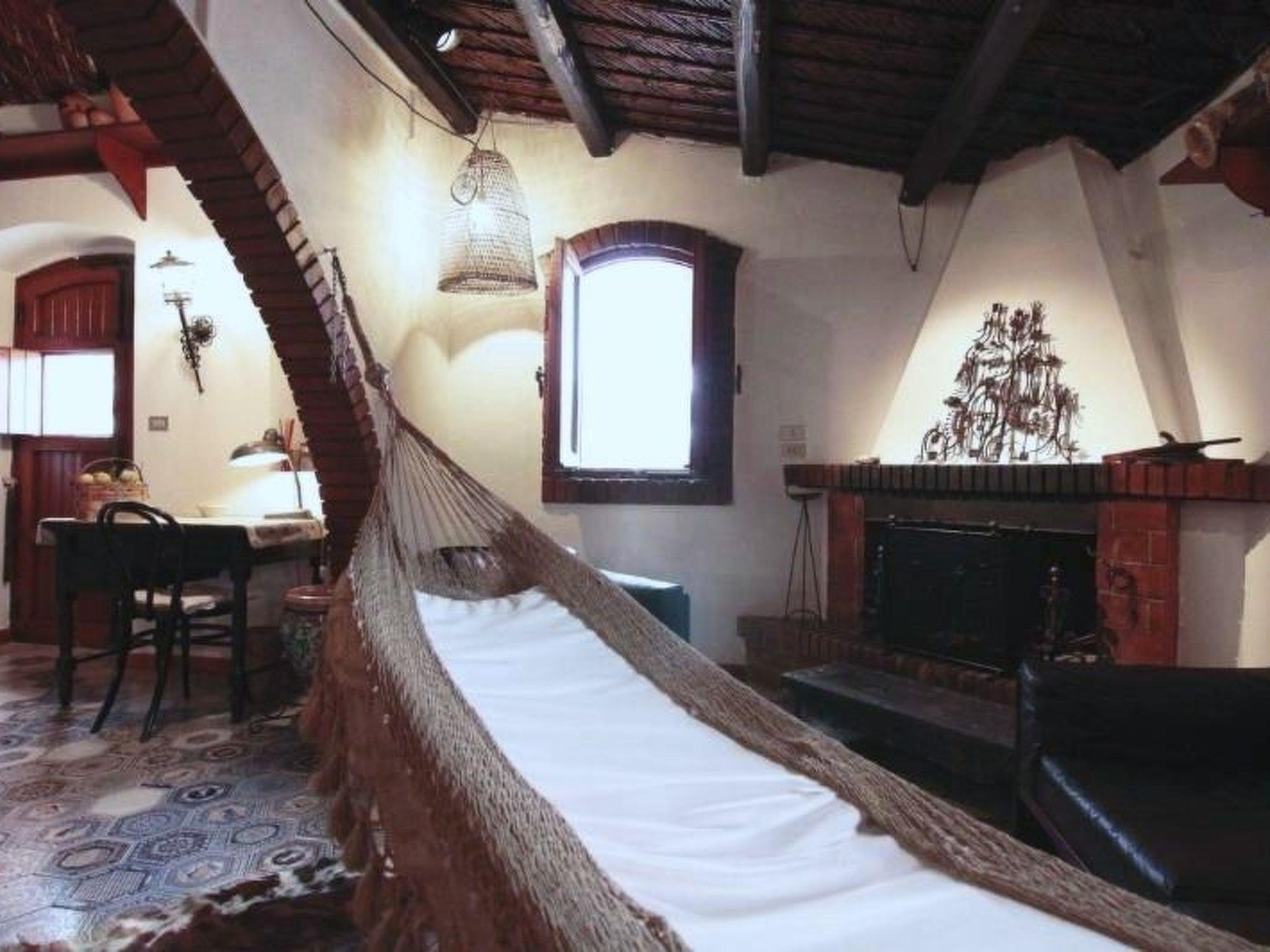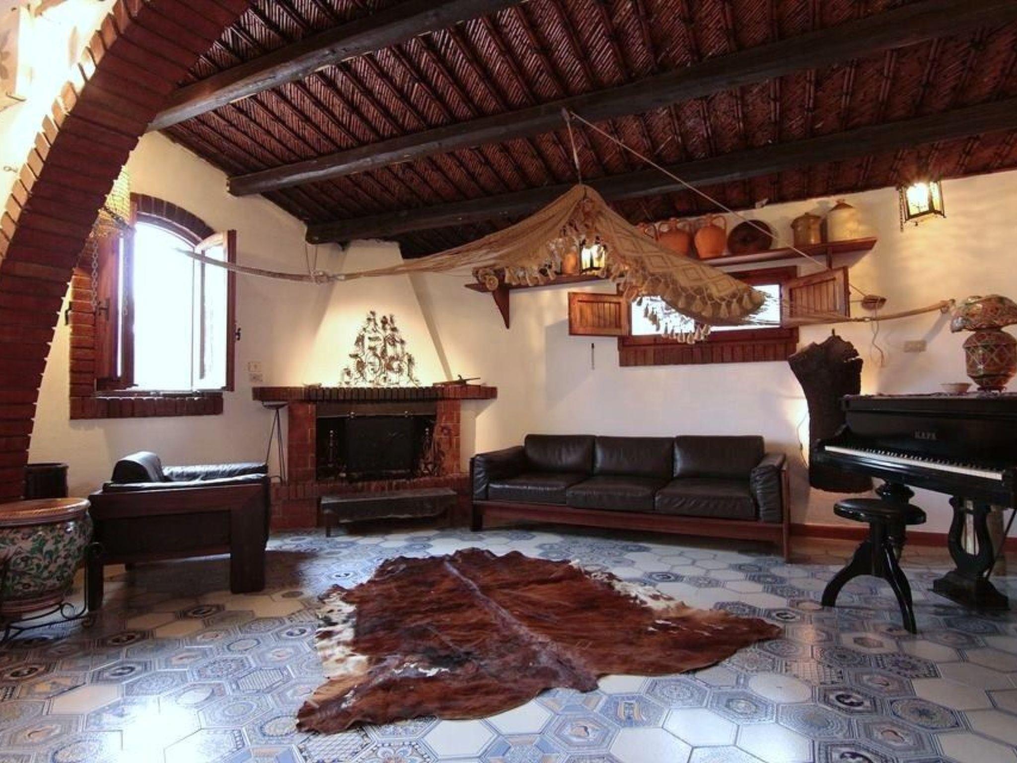 This is an old Sicilian farmhouse that has been renovated (2016) while maintaining the original building features: wooden and reed roofs, terracotta arches, Vaselli-style majolica floors, and handmade rustic terracotta from Catania give life to the mood of the house and its surroundings. On the ground floor: large living room with fireplace, stereo, piano; fully equipped kitchen with cooker, oven, microwave, toaster; dining area with table seating 14. Wood-fired oven for making bread and pizzas, barbecue. A fully equipped bedroom, a glassed-in porch with a double sofa bed, an indoor bathroom with shower and an outdoor bathroom. On the first floor: four bedrooms, two bathrooms and a living room with a single sofa bed. All the rooms are equipped with air conditioning and methane heating.