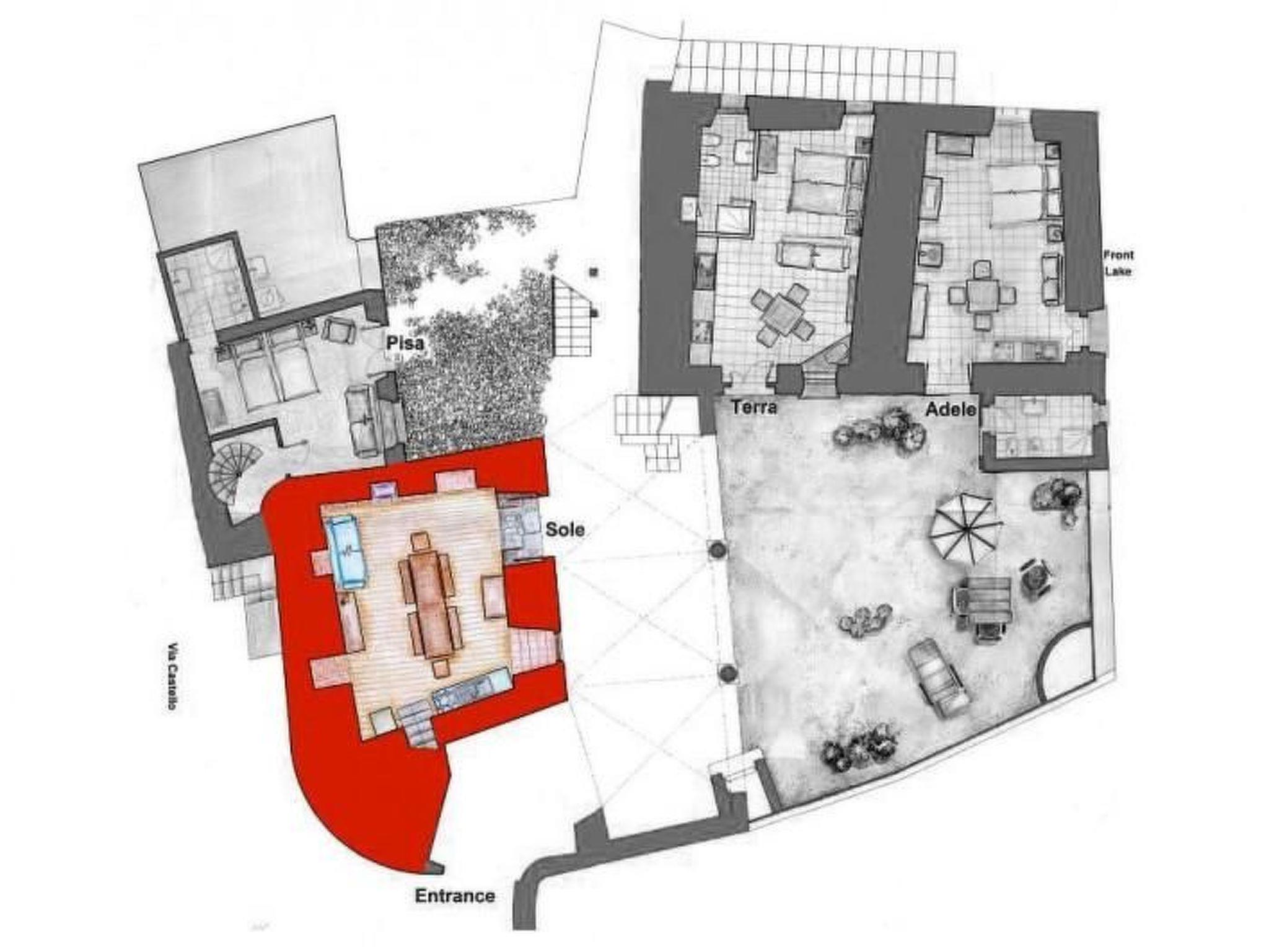 From one of the bedrooms you have access to the veranda on the first floor furnished with a round table and wooden chairs which enjoys a splendid view of the lake; via the steep and ancient staircase you have exclusive access to the common areas such as the courtyard and garden