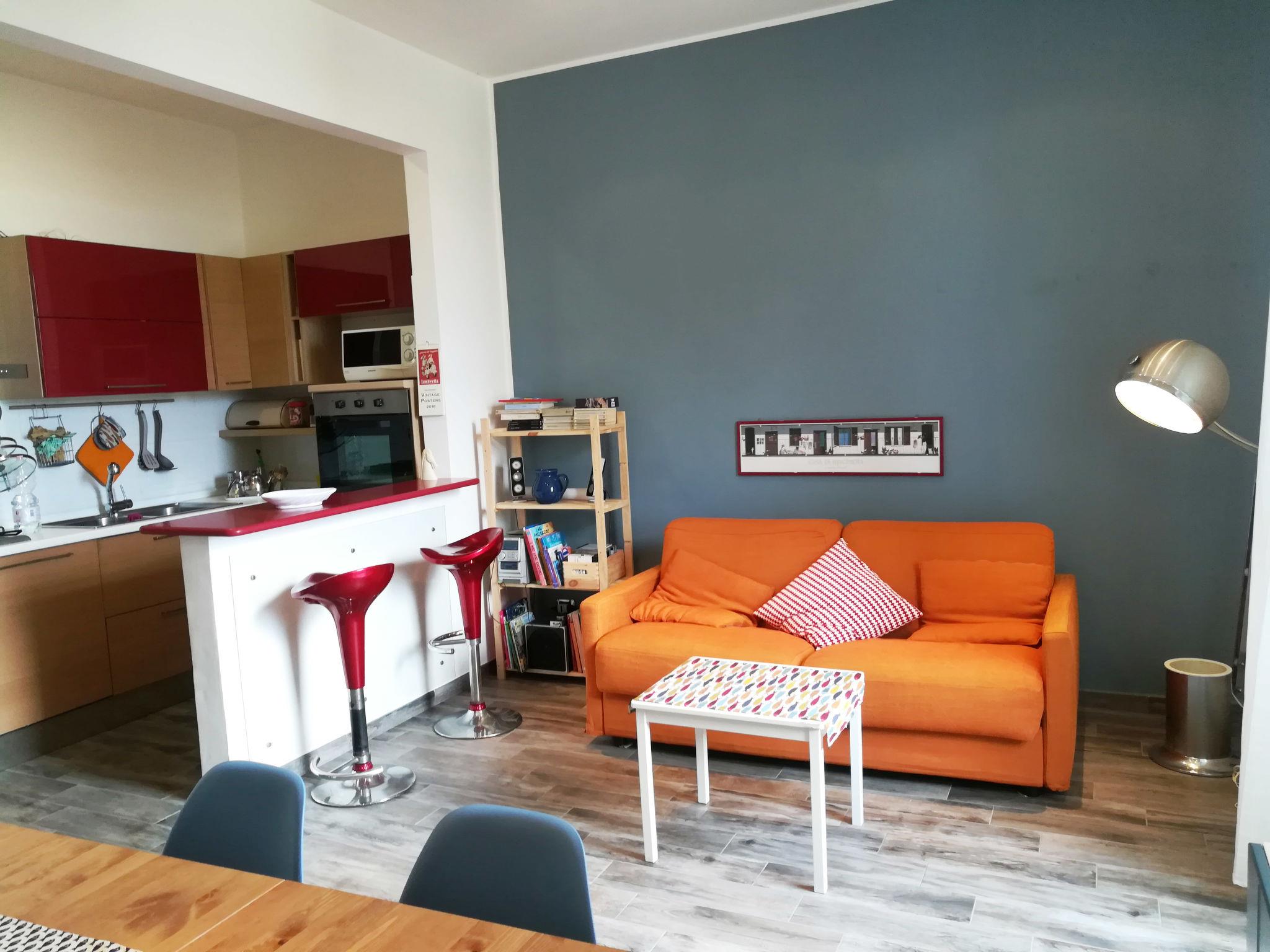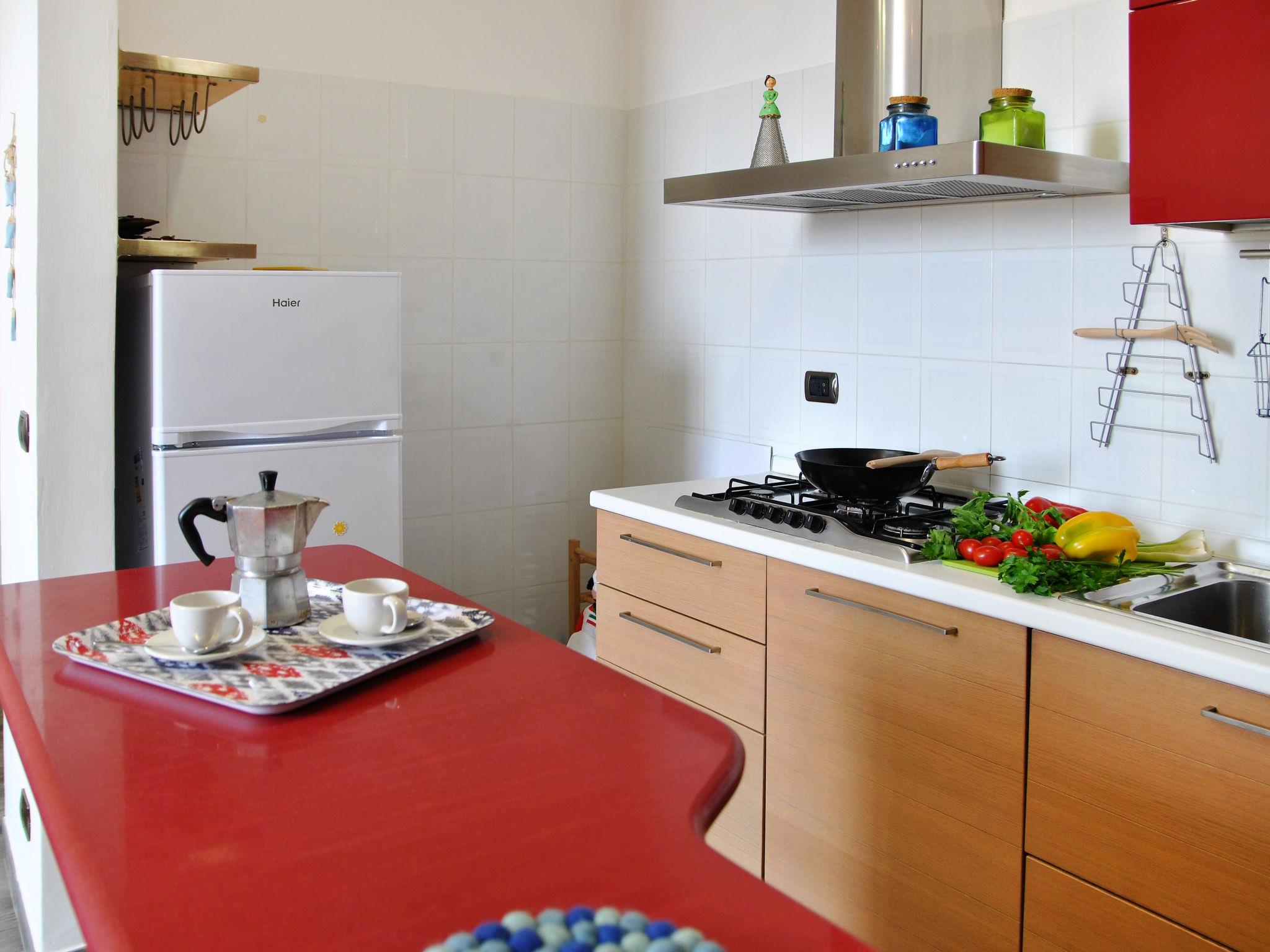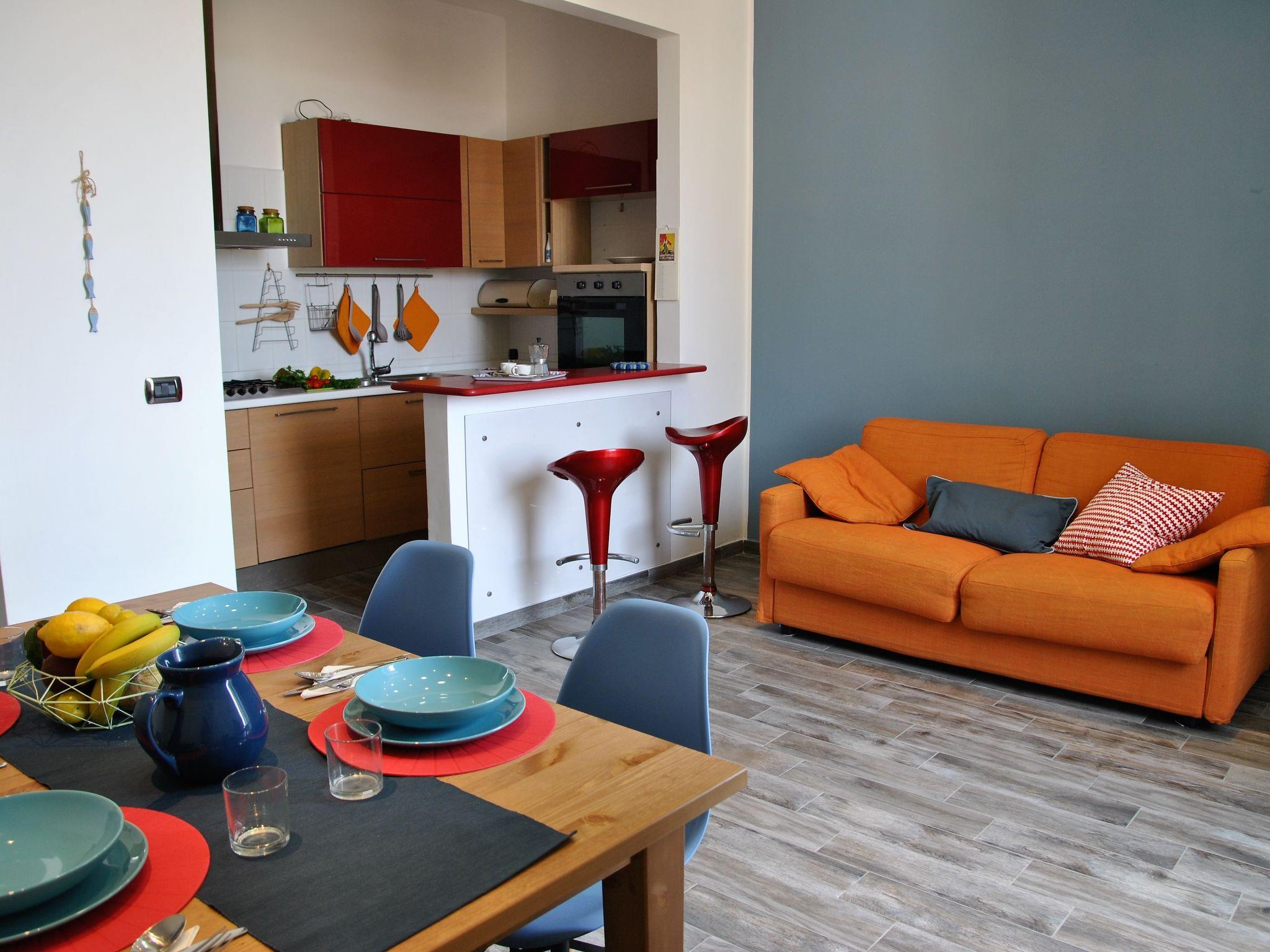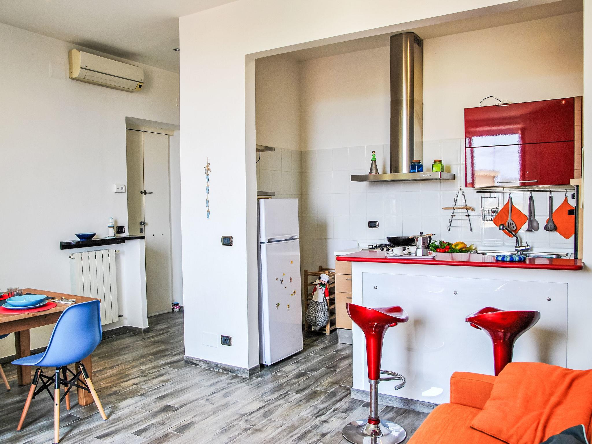 3-room apartment 60 m2 on 4th floor. Modern and cosy furnishings: living/dining room with kitchen corner. 1 double bedroom. 1 room with 2 beds. Kitchenette (4 hot plates, oven, dishwasher, freezer). Bath/bidet/WC. Gas heating, air-conditioning. Small balcony 2 m2. Facilities: washing machine, iron, hair dryer. Internet (WiFi). Parking (1 car). Please note: 1 small pet/ dog allowed. No lift. IT059008C23UG7XU99