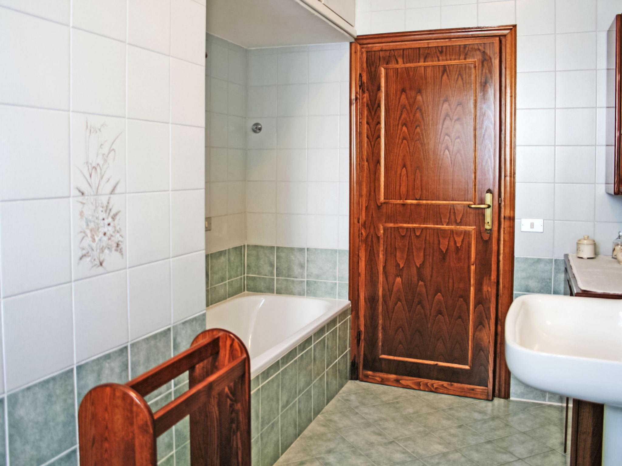 "Giovanna", 5-room villa 130 m2, on the ground floor. Living/dining room with satellite TV and DVD. Exit to the garden. 1 double bedroom with shower/bidet/WC and air conditioning. 1 room with 2 beds and air conditioning. 1 room with 1 bed and air conditioning. 1 room with 1 bed. Kitchen (4 hot plates, dishwasher, microwave, freezer) with dining table. Bath/bidet/WC, shower/bidet/WC. Gas heating, air-conditioning. Heating available only from 01.11. to 15.04. Large garden, lawn. Sitting area. Facilities: washing machine, iron, hair dryer. Parking (fenced) at the house. Please note: fire extinguisher. Beds made up on arrival. IT046013B436ABLMEO