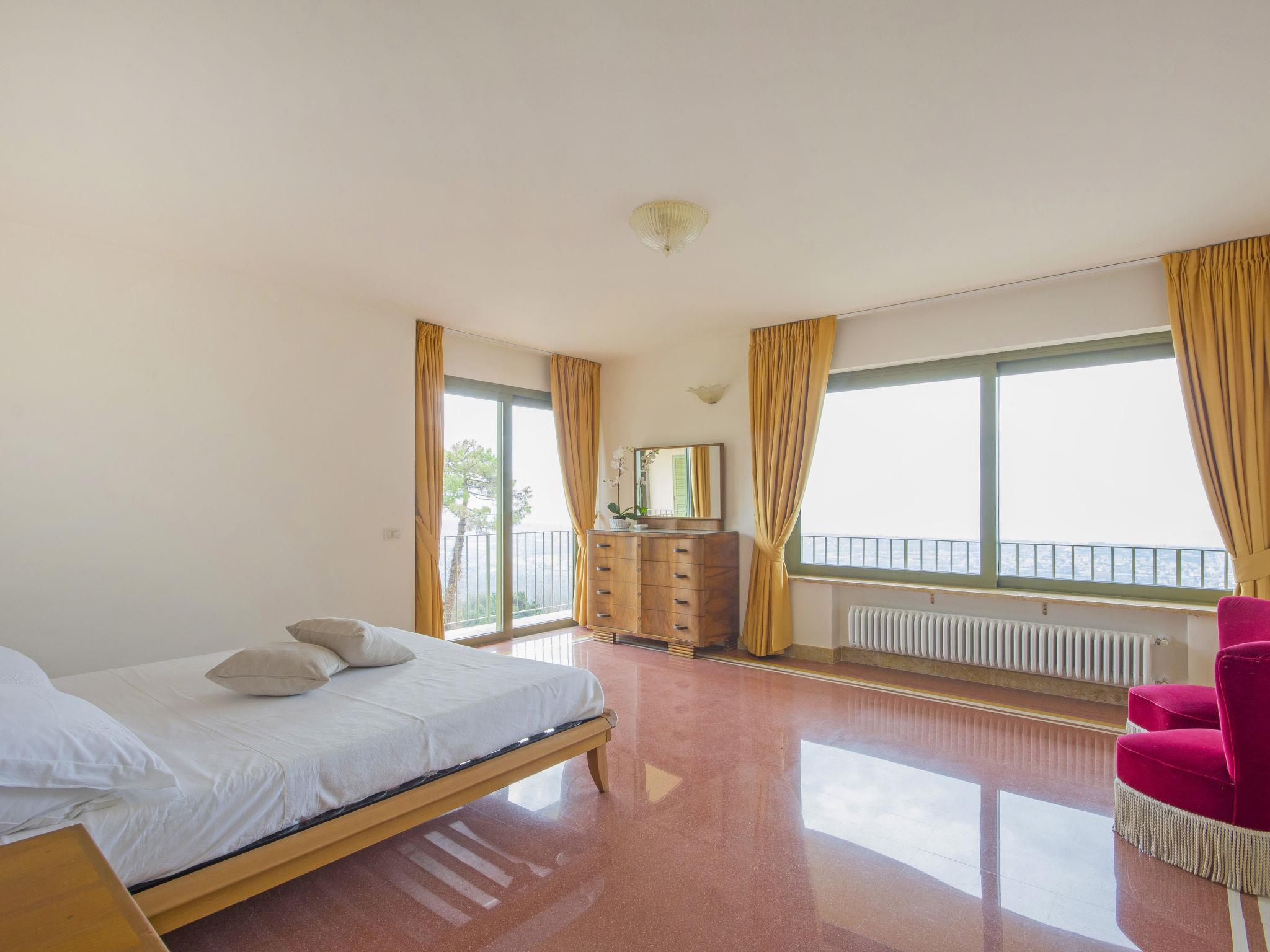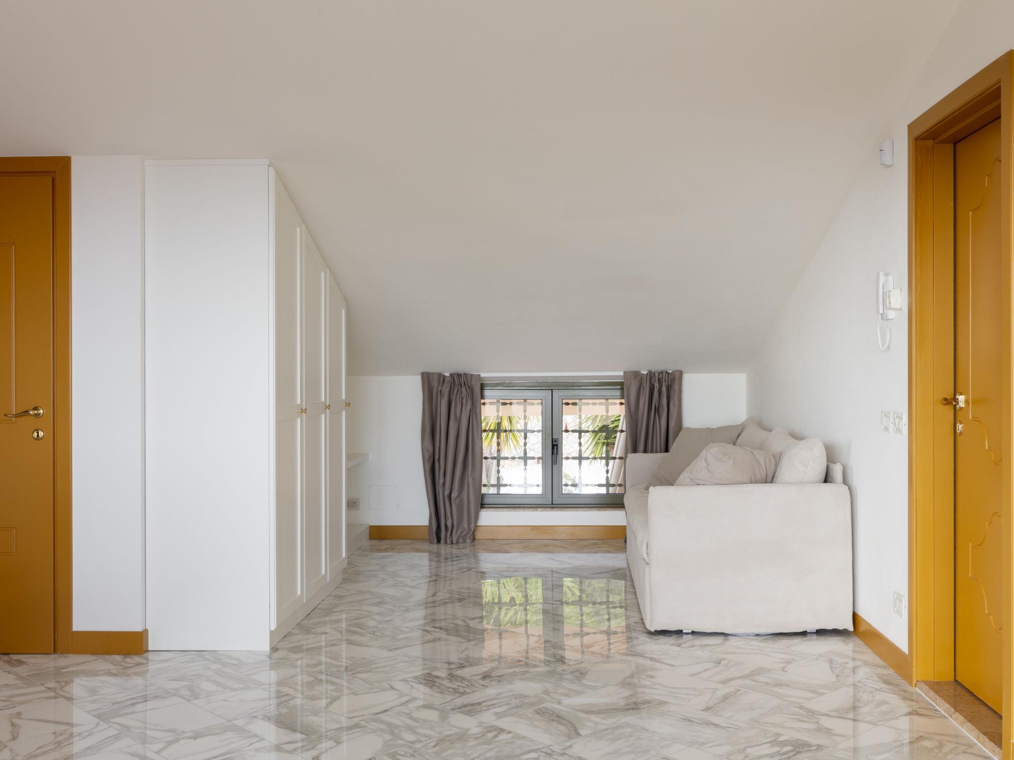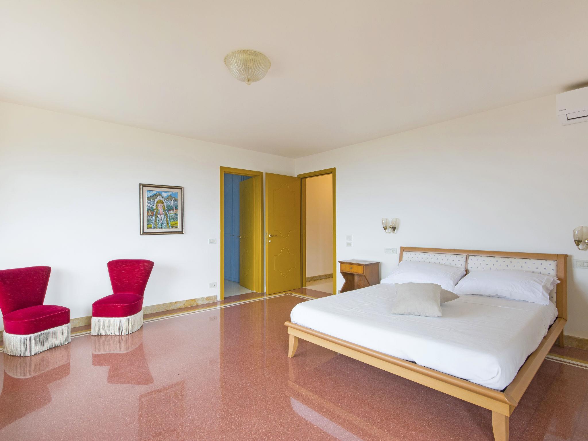 7-room villa 300 m2 on 3 levels. Spacious and bright, beautiful and stylish furnishings: 2 double bedrooms, each room with air conditioning. 1 room with panoramic window with 1 double sofabed, 1 double bed, shower/bidet/WC and air conditioning. Exit to the terrace. Bath/bidet/WC, shower/bidet/WC. Gas heating, air-conditioning. Heating available only from 01.11. to 15.04. Upper floor: dining room 21 m2 with panoramic window with dining table. Exit to the terrace. Large living room 87 m2 with sliding door, panoramic window with TV (flat screen). Exit to the terrace. Large kitchen 27 m2 (5 hot plates, oven, dishwasher, microwave, electric coffee machine). Exit to the garden. Bathroom. 2nd upper floor: 1 large room 30 m2, with sloping ceilings with sliding door, panoramic window with 1 double sofabed, 1 double bed, bath/bidet/WC and air conditioning. Exit to the balcony. 3 terraces. Barbecue (portable). Very beautiful view of the sea. Facilities: washing machine, iron, hair dryer. Internet (WiFi, free). Parking (fenced 3 cars) at the house. Please note: non-smoking house. Maximum 3 small pets/ dogs allowed. The property is on three levels and features neutral-coloured fine furnishings and finishes with large windows that allow the natural light to flow through the spaces. IT045011C2WC2PUTS4
