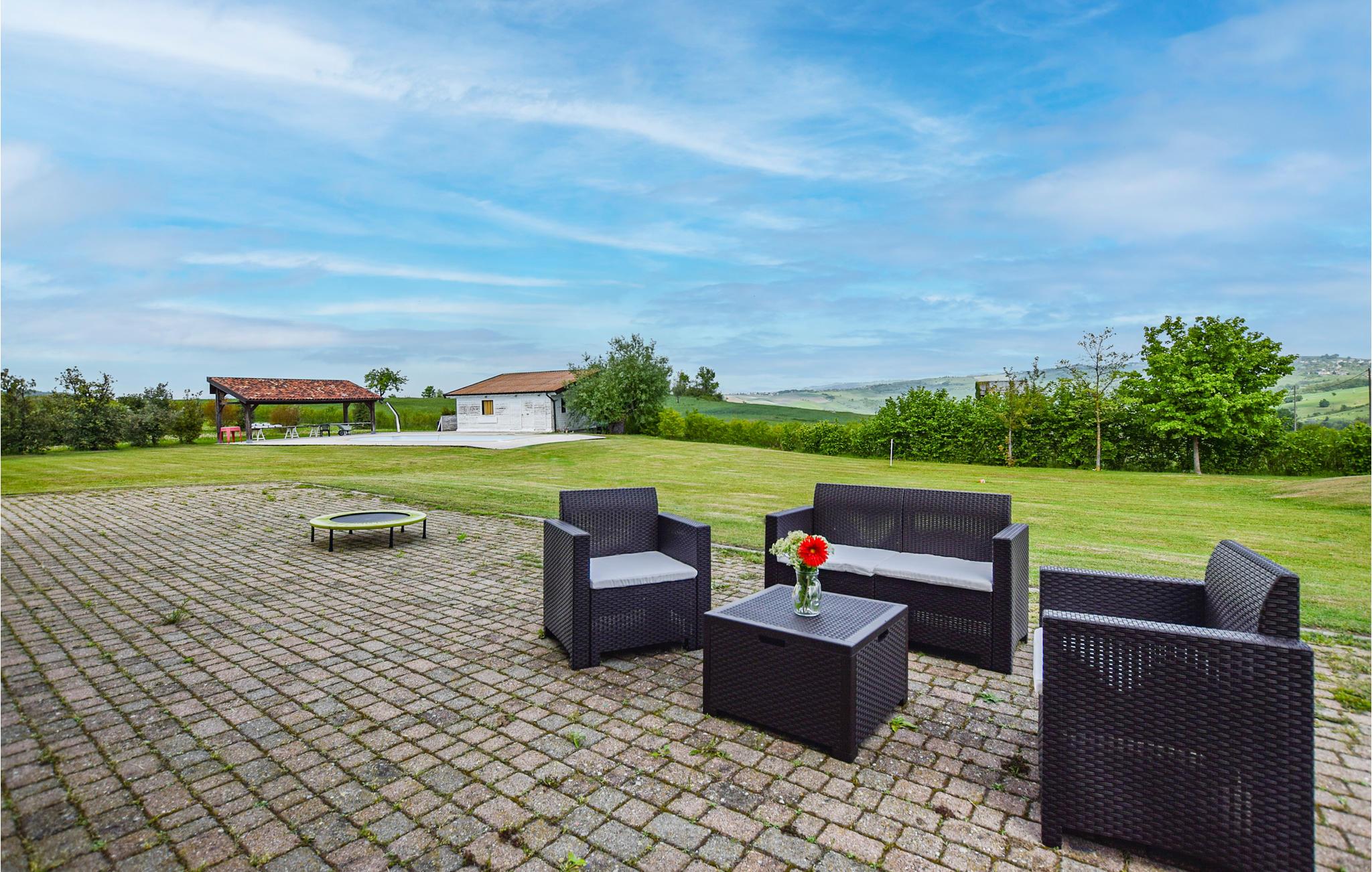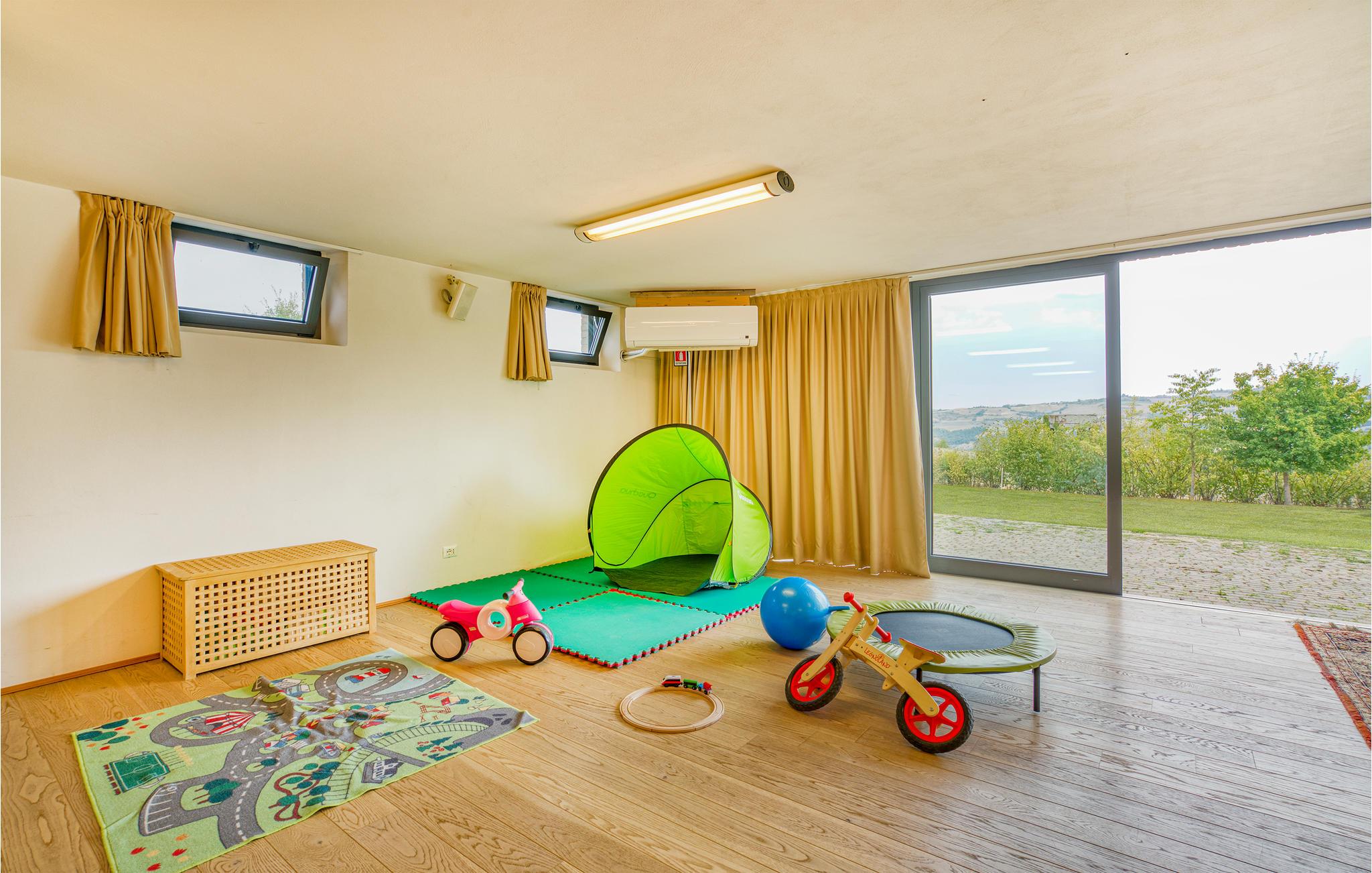 Slap af på den overdækkede terrasse og nyd de lange sommerdage, hvor I kan slænge jer i de komfortable liggestole. Poolen giver jer mulighed for at køle ned, og børnene bliver henrykte over, at der er trampolin, legehus og gynger.