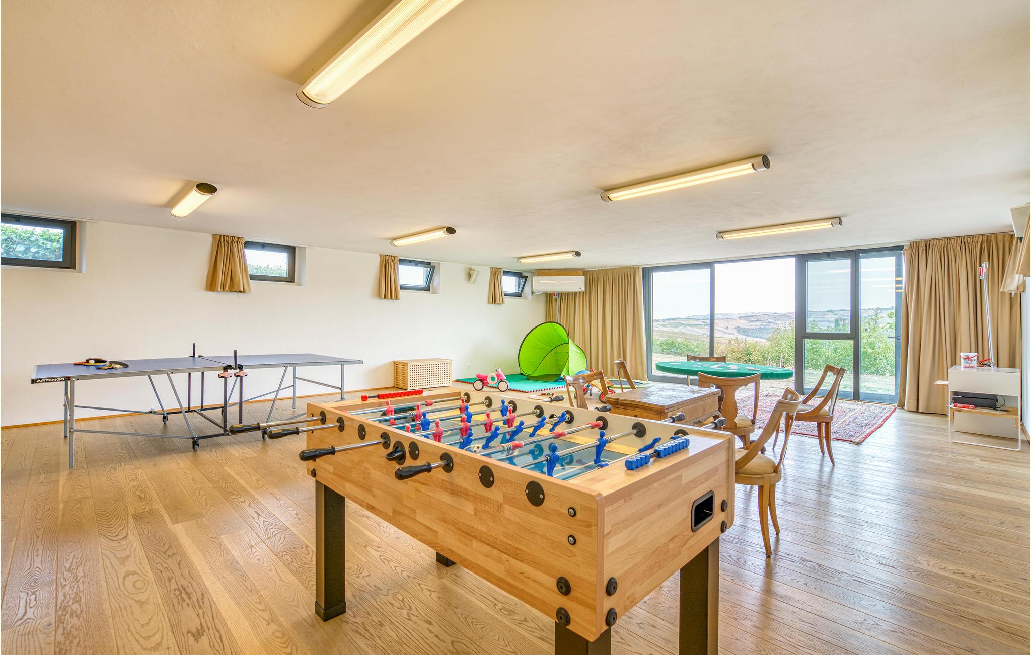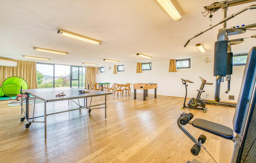 Huset er lyst og smukt indrettet, og her er alt, hvad I skal bruge til en vellykket ferie. Der er syv soveværelser og otte badeværelser. I kan desuden medbringe op til fire kæledyr. Gulv til loft-vinduerne lukker lyset ind i boligen og sørger samtidig for en stor og bred udsigt. Takket være klimaanlægget er der en behagelig temperatur på fællesarealerne i stuen og aktivitetsrummet, selv på varme sommerdage. Sauna, fitnessudstyr og spil bidrager både til ekstra aktiviteter - også hvis I vil holde formen på ferien.
