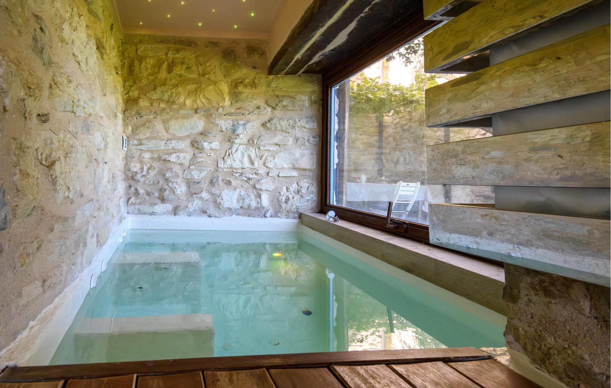 Oplev ren afslapning omgivet af natur, stenmure og en pool med udsigt over det bakkede landskab. Tilbring en uforglemmelig ferie i denne feriebolig, der kombinerer rustik charme med moderne faciliteter. Træd ind i det hyggelige interiør med lave træbjælkelofter, tykke naturstensmure og en behagelig landstedsatmosfære. Køkkenet er indrettet i traditionel stil. Saml jer ved spisebordet og nyd afslappende timer indenfor, ideelt for par eller familier, der søger autentisk italiensk stil. Tilbring masser af tid udenfor. Den velholdte have er ideel til afslapning. Slap af ved den store pool med uhindret udsigt over det omkringliggende landskab. Nyd solrige eftermiddage eller træk jer tilbage til skyggefulde steder. Nyd jeres måltider udenfor eller nyd blot roen i omgivelserne. Oplev Frontino, en af Italiens smukkeste landsbyer. Besøg de middelalderlige gyder, nyd regionale retter, eller vandr gennem naturparken Sasso Simone e Simoncello. Tag på udflugter til de historiske byer Urbino eller San Leo, eller udforsk Adriaterhavskysten, som er let tilgængelig i bil.