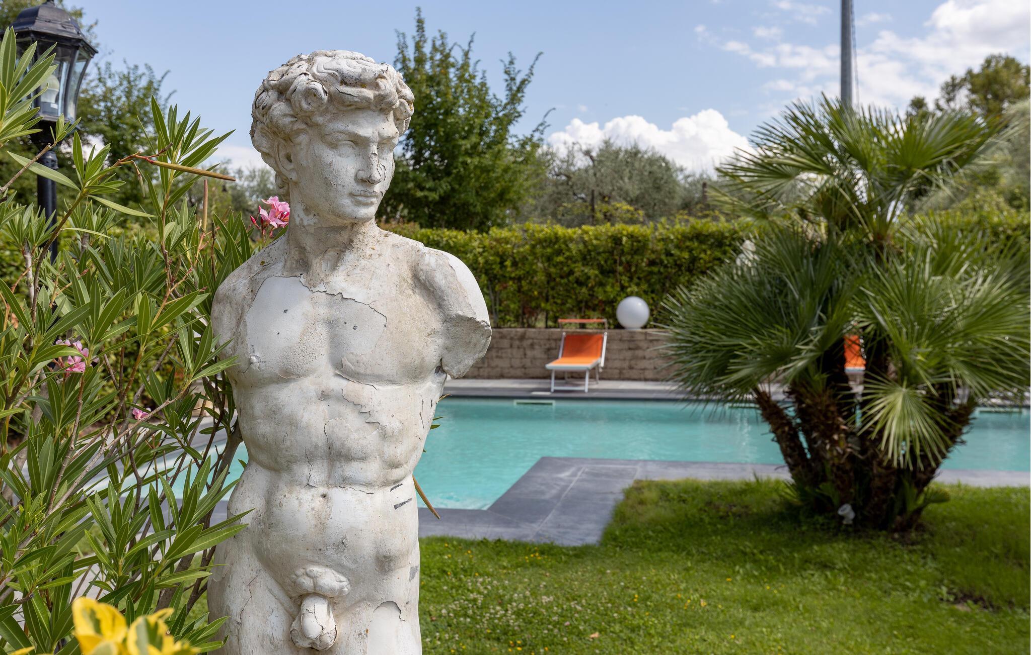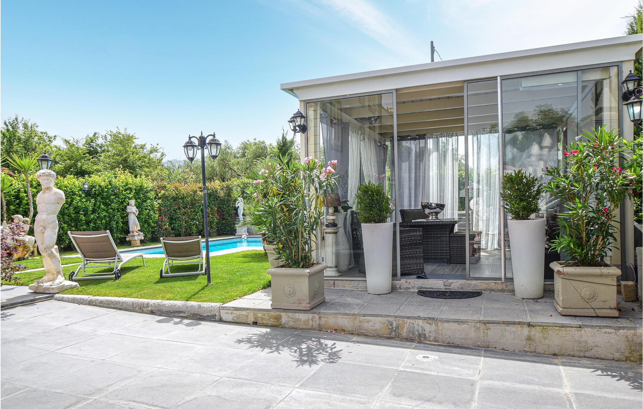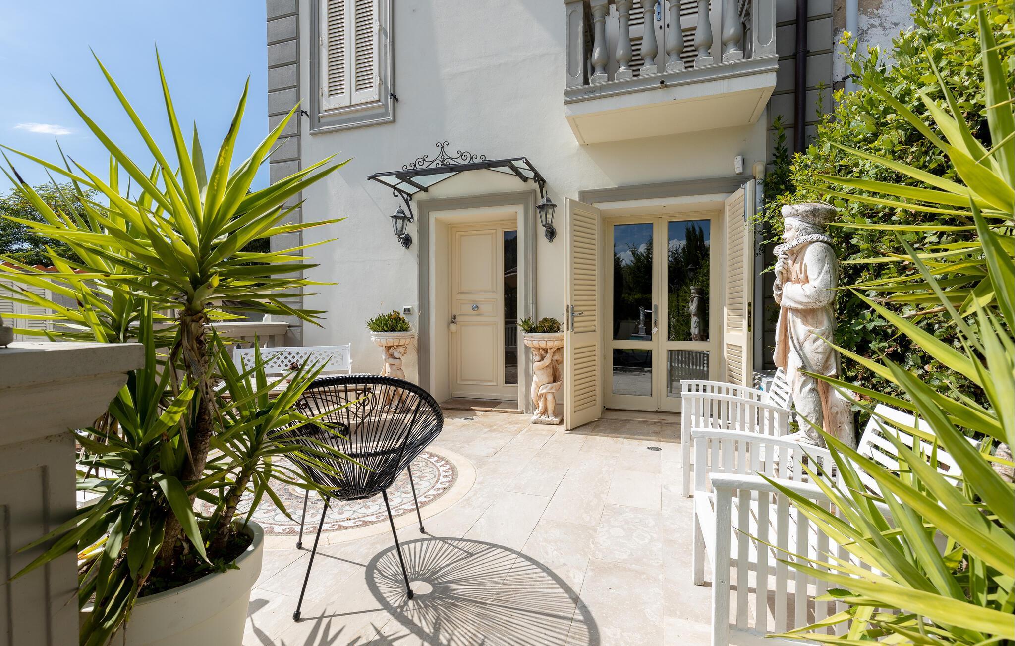 Slap af i loggiaen med havemøbler og udsigt over poolen, mens de andre plasker rundt i vandet. Eller læs en spændende bog, mens du nyder solen i liggestolene.