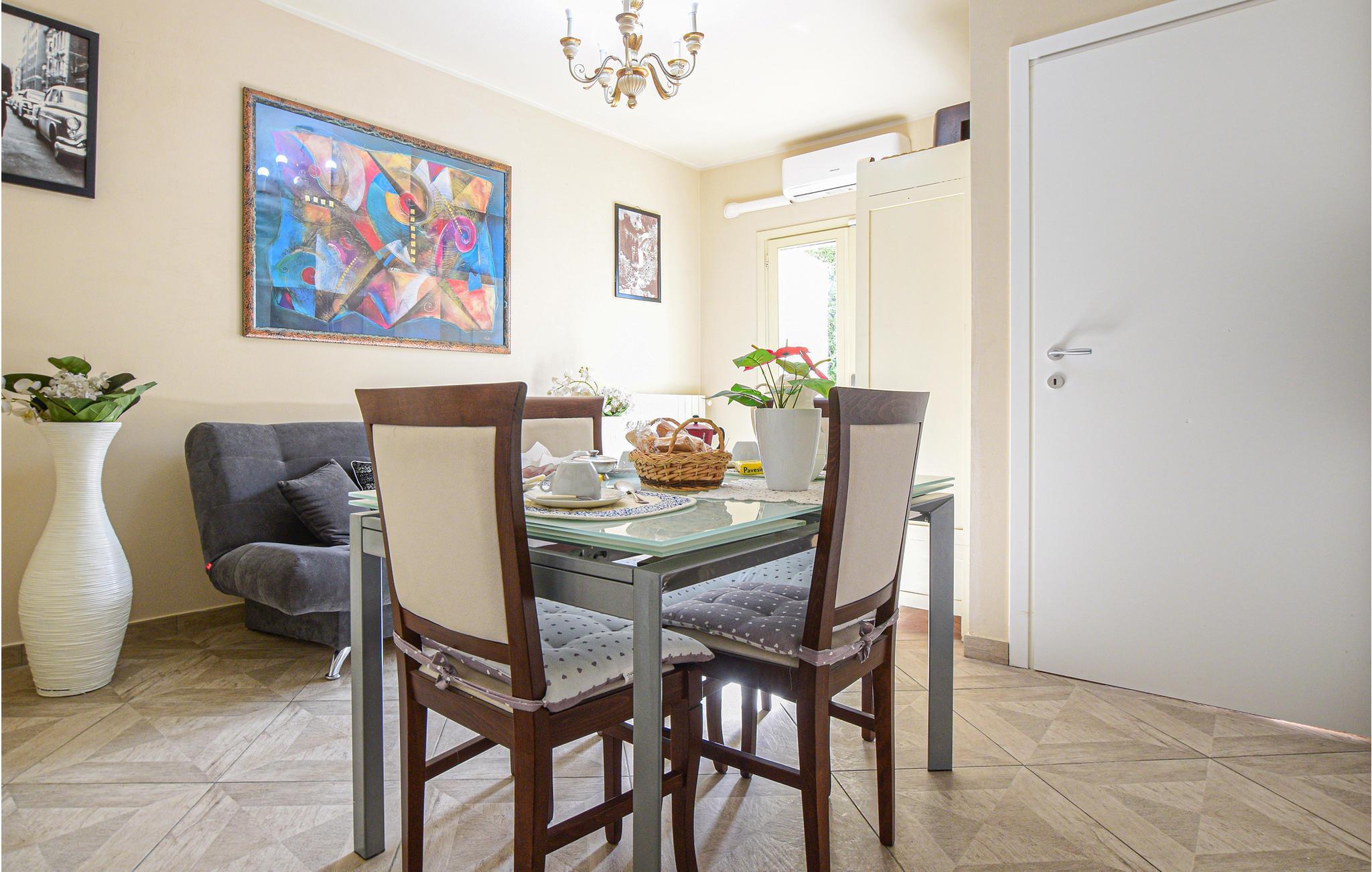 Lejligheden er lys og møbleret med moderne møbler i smuk stil og ligger i stueetagen. Herfra har du adgang til de smukke udendørs områder og poolen.