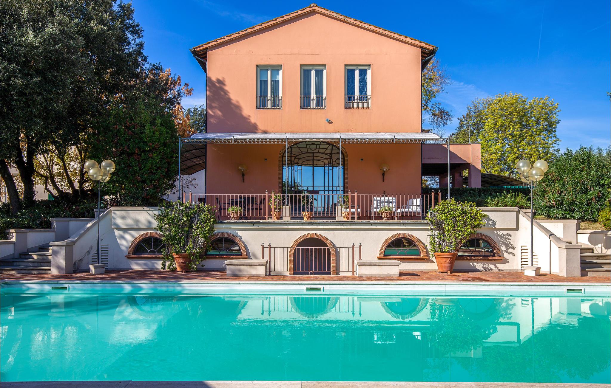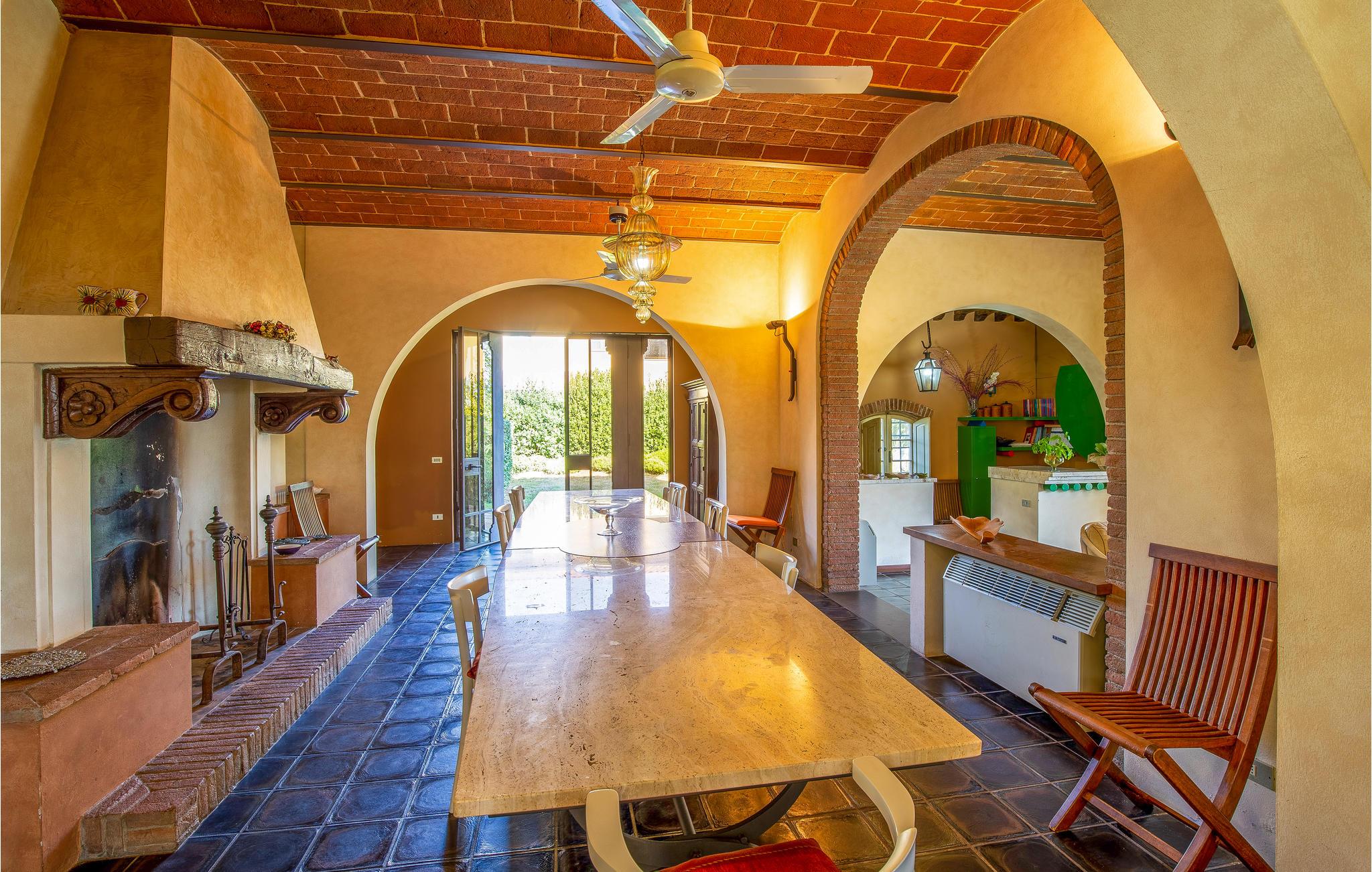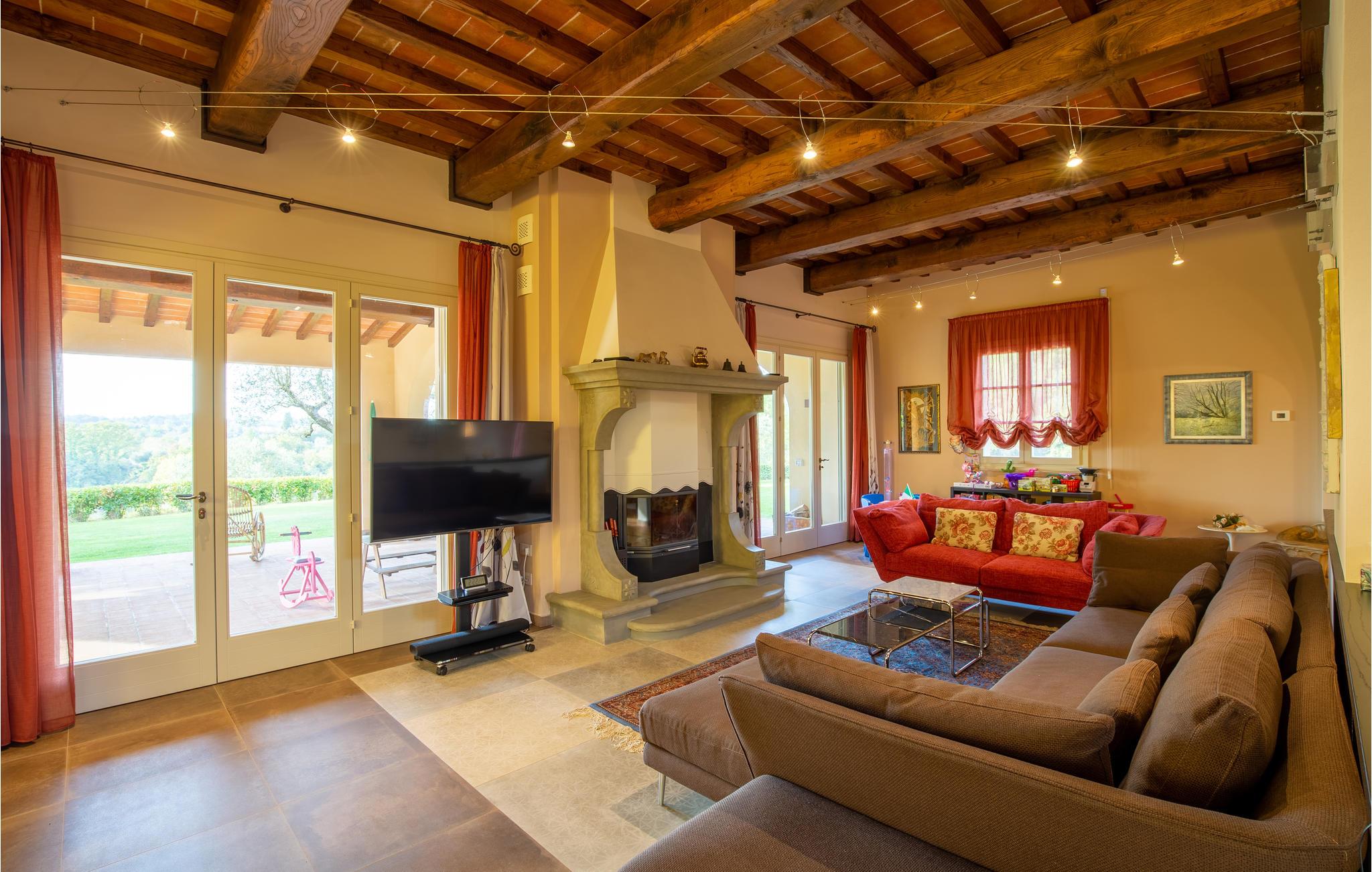 Det yderst rummelige hus byder velkommen i en vidunderlig beliggenhed midt i det maleriske toscanske landskab og byder på plads til en ferie med flere familier. De tiltalende møbler i middelhavsfarver i stil med en landejendom gør det nemt for jer at føle jer hjemme her fra dag ét. Glæd jer til et smukt landskabspanorama og hyggelige aftener på de komfortable sofaer i stuen.