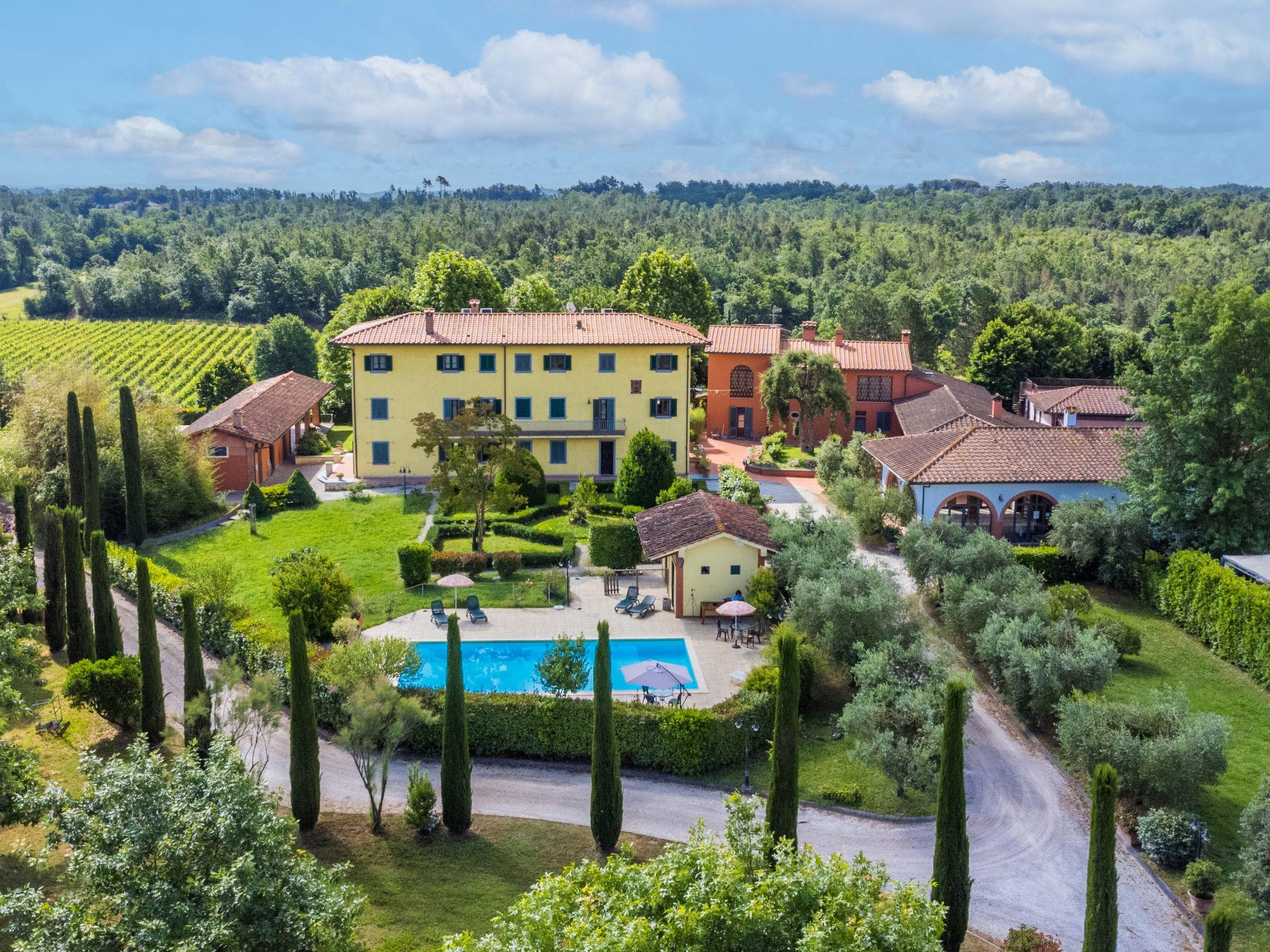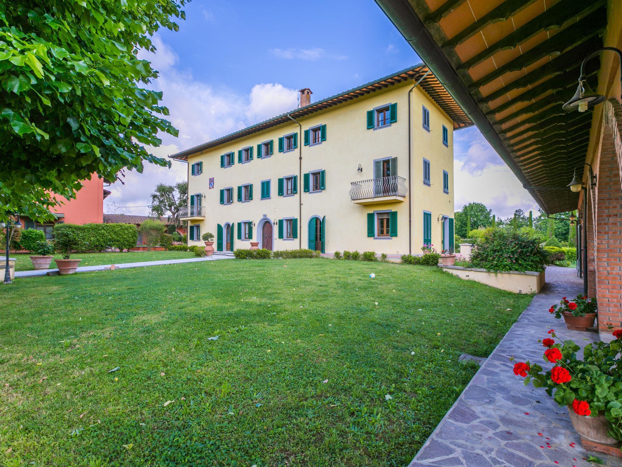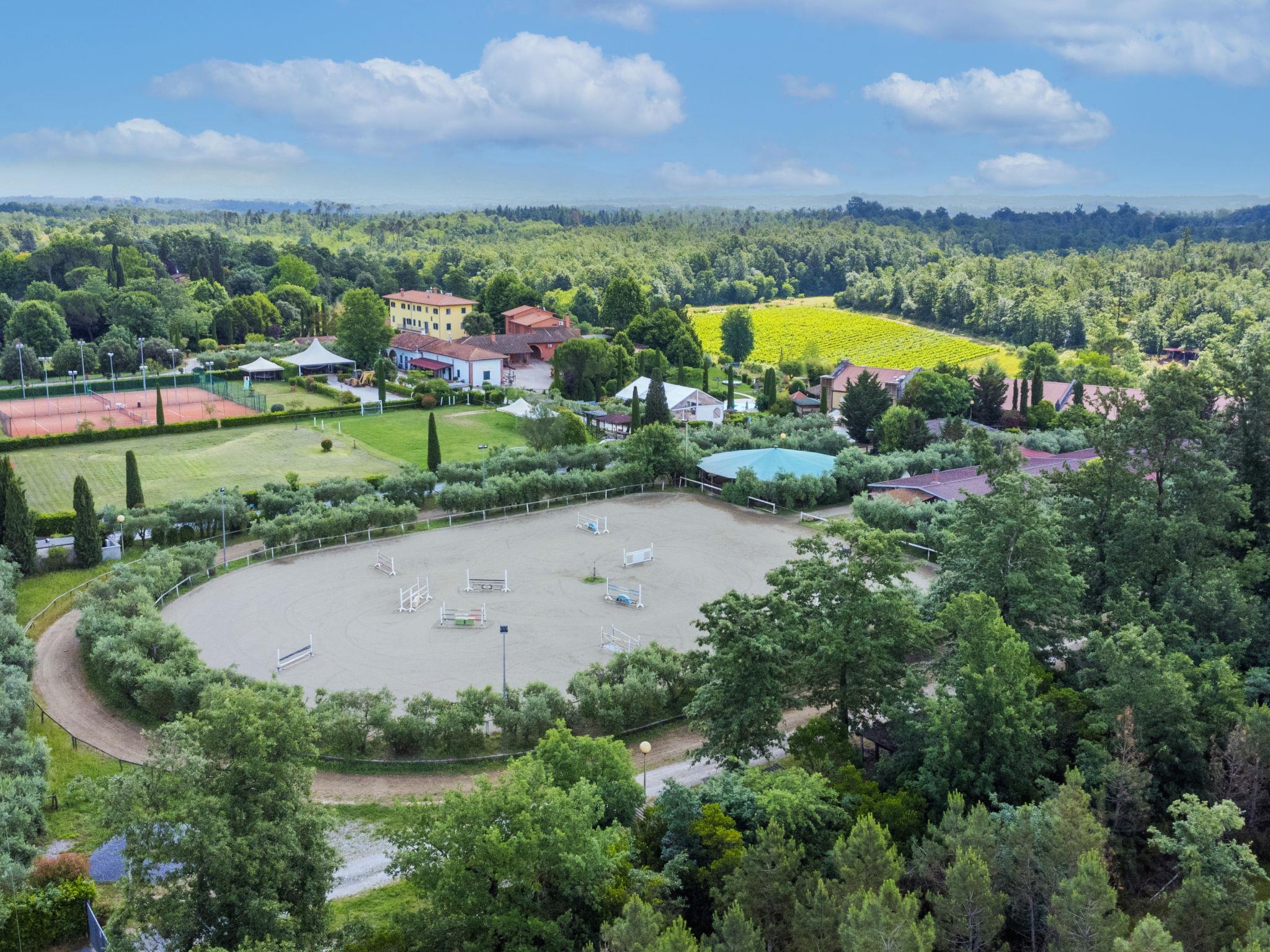 Villa "Elena". 9 km from the centre of Fucecchio, 40 km from the centre of Pisa, 50 km from the centre of Firenze, 52 km from the sea. For shared use: property 40 ha (fenced). Tennis (2 x hard court). Private: garden 1'600 m2 (not fenced), swimming pool (12 x 6 m, depth 150 cm, seasonal availability: 26.Apr. - 03.Oct.). Pool house with WC, garden furniture, barbecue. In the complex: reception, restaurant, breakfast room, in summer, use of sauna is included (1 times per week), in winter, use of sauna is included, lift, heating available only from 01.Nov. - 15.Apr.. Parking on the premises. Shop 9 km, grocery 9 km, supermarket 9 km, bus stop 2.5 km, sandy beach "Viareggio - Forte dei Marmi" 52 km, thermal baths "Montecatini Terme" 20 km. Golf course (18 hole) 21 km, riding stable 100 m. Nearby attractions: Montecarlo 16 km, San Miniato 18 km, Vinci 20 km, Lucca 27 km, San Gimignano 55 km. Please note: suitable for families, suitable for seniors. Suitable for events. Property ref. IT5282.910.1 is situated on the same property. Villa Elena can be booked on request for up to 10 people (ref. IT5282.900.2). Customers can take advantage of riding inside the structure (extra) and sport fishing in the inland lake (included in price).