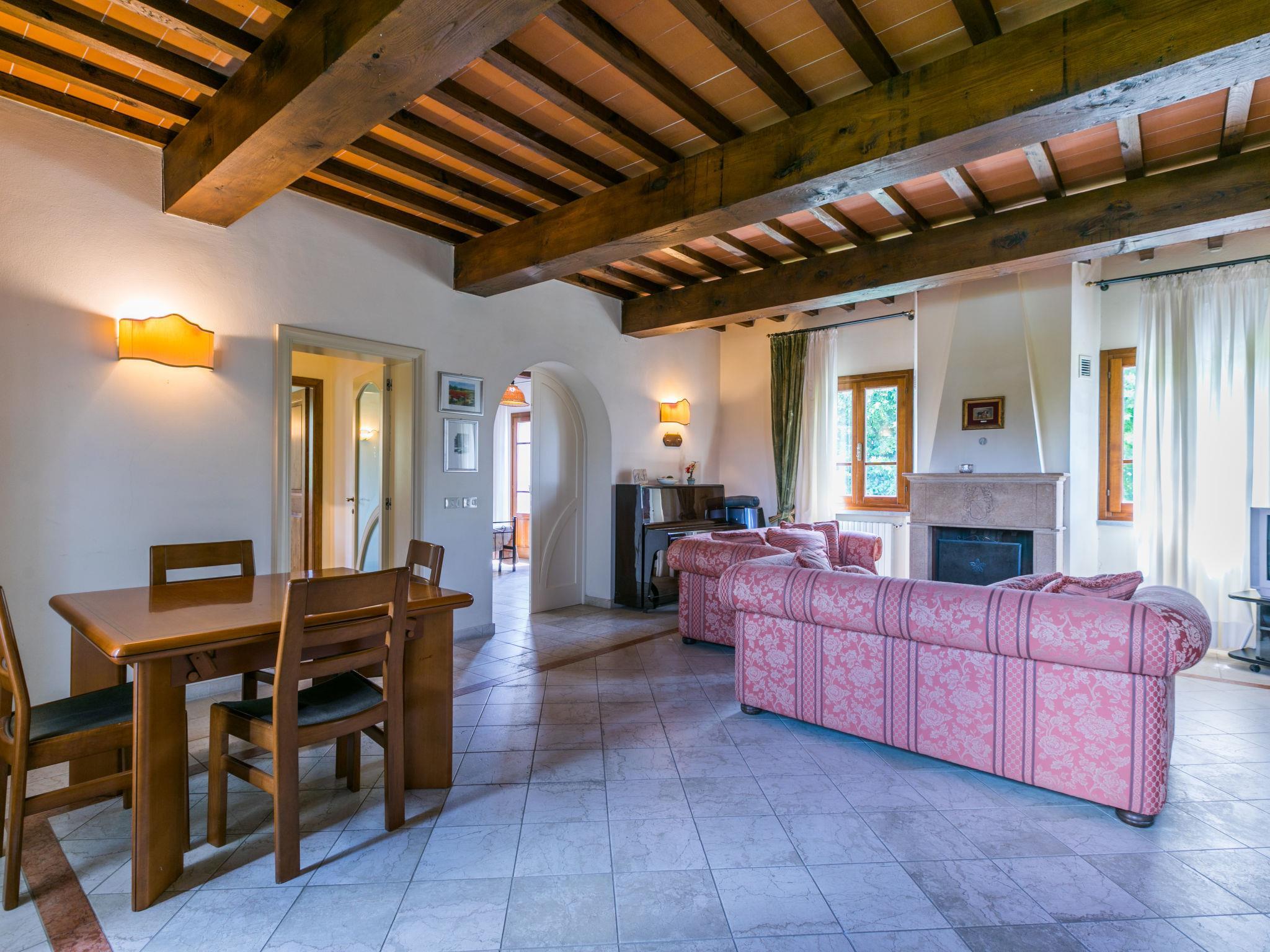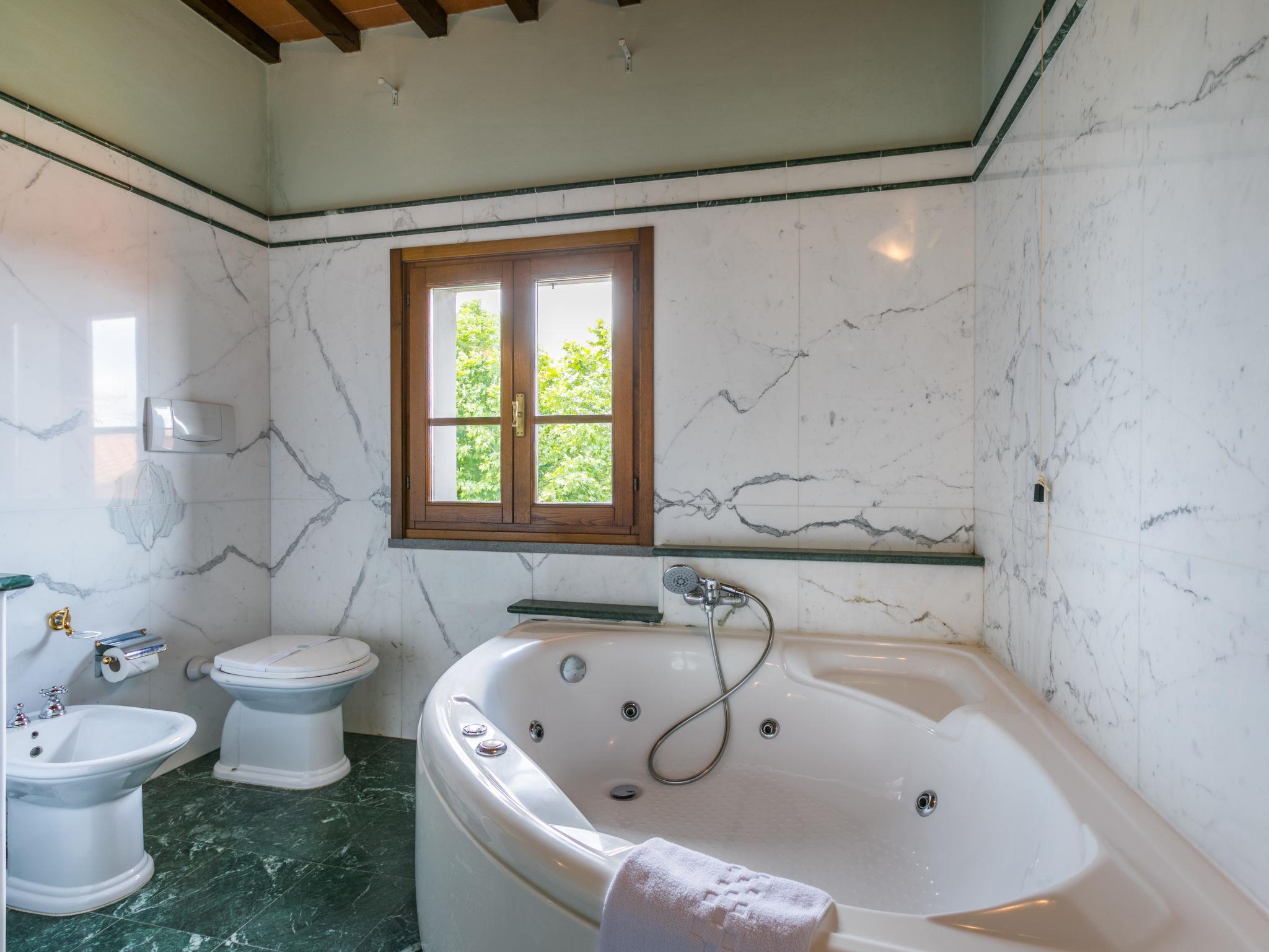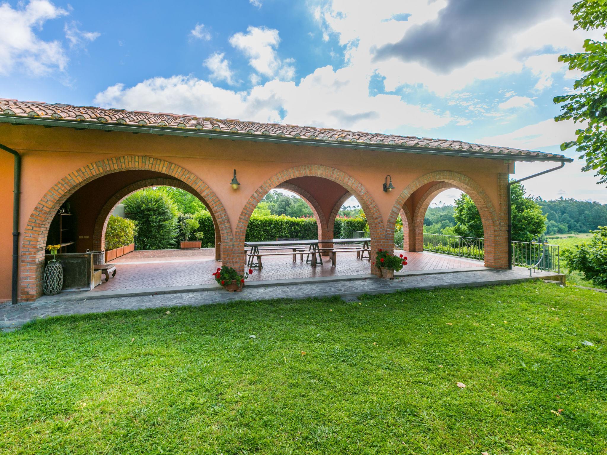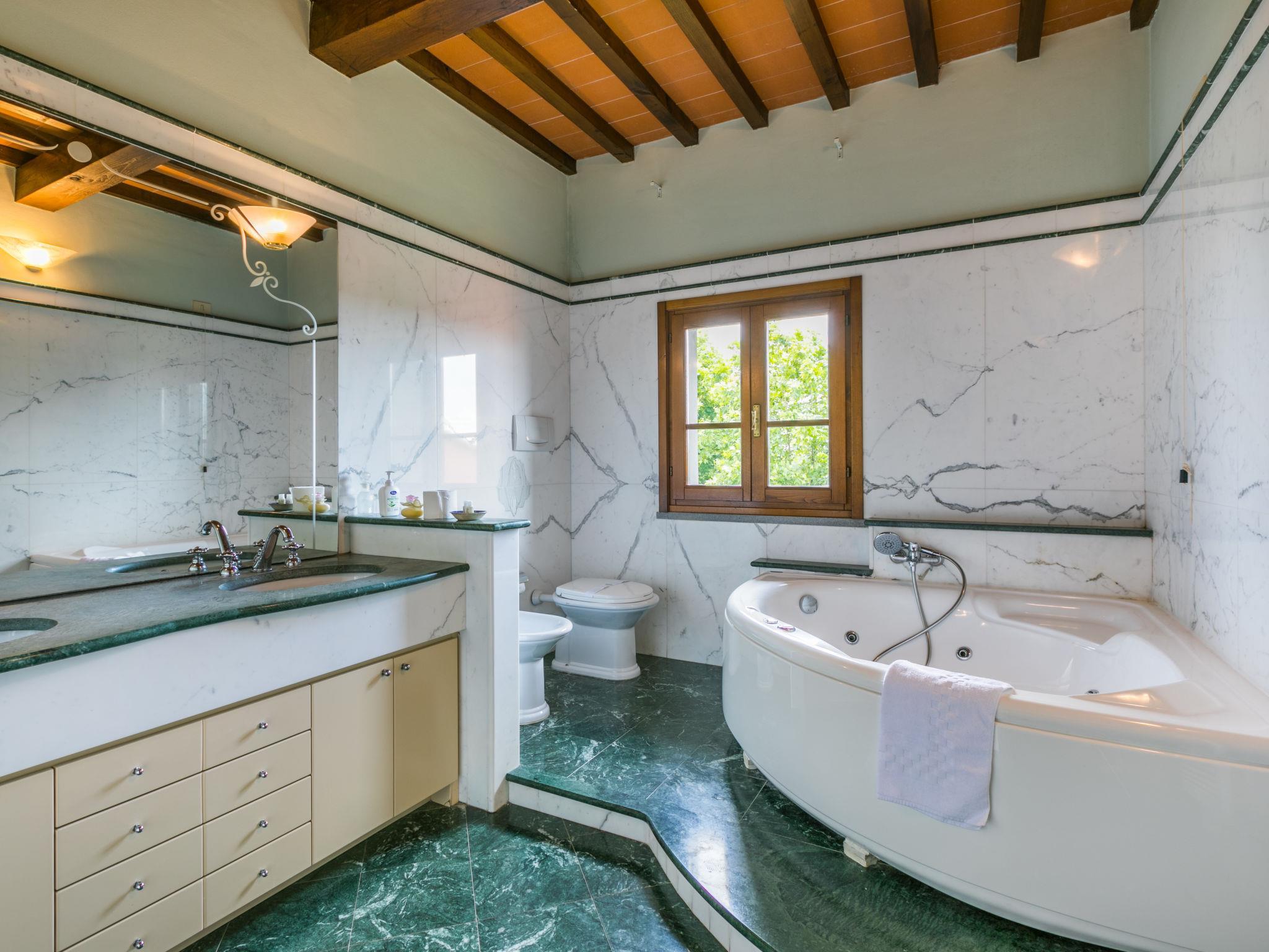 Villa "Elena". 9 km from the centre of Fucecchio, 40 km from the centre of Pisa, 50 km from the centre of Firenze, 52 km from the sea. For shared use: property 40 ha (fenced). Tennis (2 x hard court). Private: garden 1'600 m2 (not fenced), swimming pool (12 x 6 m, depth 150 cm, seasonal availability: 26.Apr. - 03.Oct.). Pool house with WC, garden furniture, barbecue. In the complex: reception, restaurant, breakfast room, in summer, use of sauna is included (1 times per week), in winter, use of sauna is included, lift, heating available only from 01.Nov. - 15.Apr.. Parking on the premises. Shop 9 km, grocery 9 km, supermarket 9 km, bus stop 2.5 km, sandy beach "Viareggio - Forte dei Marmi" 52 km, thermal baths "Montecatini Terme" 20 km. Golf course (18 hole) 21 km, riding stable 100 m. Nearby attractions: Montecarlo 16 km, San Miniato 18 km, Vinci 20 km, Lucca 27 km, San Gimignano 55 km. Please note: suitable for families, suitable for seniors. Suitable for events. Property ref. IT5282.910.1 is situated on the same property. Villa Elena can be booked on request for up to 10 people (ref. IT5282.900.2). Customers can take advantage of riding inside the structure (extra) and sport fishing in the inland lake (included in price).