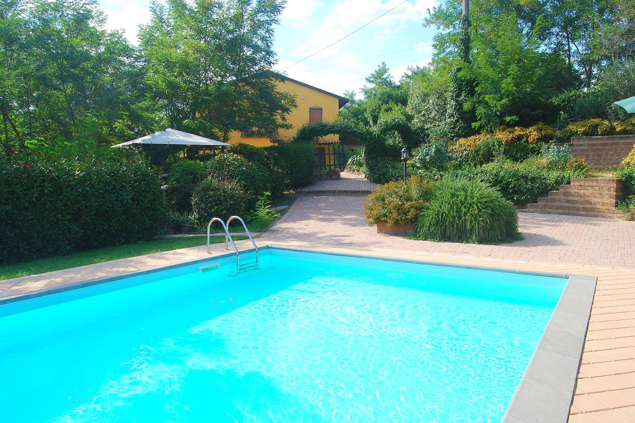 Dette hyggelige feriehus er omgivet af bakker, natur og cypres-forede veje i Fucecchio-landskabet, og tilbyder den perfekte blanding af fredeligt tilflugtssted og kulturelt eventyr. Uanset om du slapper af ved den fælles swimmingpool, nyder et glas vin på din private terrasse eller fyrer op for grillen til et alfresco-måltid, er dette et sted, hvor tiden går langsommere, og naturen tager føringen. Hjemmet ligger i en stille landsby, kun en kort køretur fra charmerende Fucecchio (6,7 km), hvor du kan slentre brostensbelagte gader, udforske lokale markeder og spise i hyggelige trattoriaer. For dem, der søger mindeværdige kulinariske oplevelser, kan nærliggende La Taverna di Emma og Trattoria il Frantoio varmt anbefales til autentisk toscansk køkken. Fra denne centrale beliggenhed er dagsture ubesværede: Nyd kurbyen Montecatini Terme (20 km), vandre langs de gamle mure i Lucca (33 km), eller beundre det kunstneriske i Firenze (54 km), hjemsted for Brunelleschis kuppel, Uffizi-galleriet og renæssanceskatte rundt om hvert hjørne. Pisa og dets verdensberømte skæve tårn er lige under en time væk, perfekt til en halvdagstur, der blander historie med indfald. Tilbage på ejendommen kan du slappe af i den fælles have, strække ud på en liggestol under parasollen, eller blot se solen dykke under horisonten. Dette er mere end et ophold - det er din indgang til Toscanas mest tidløse fornøjelser.