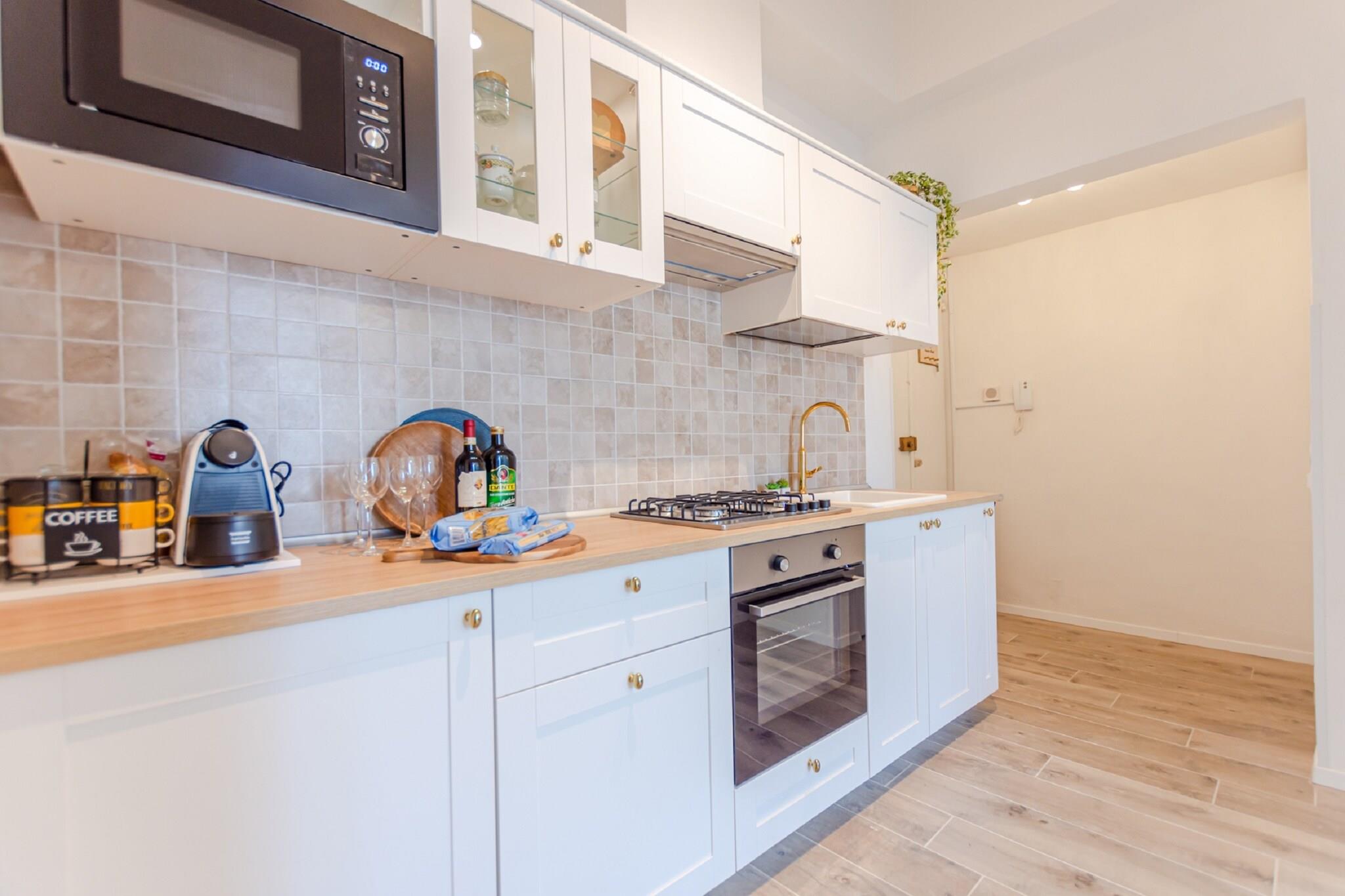 Denne elegant indrettede lejlighed er bekvemt beliggende i Toscana. Du kan bo komfortabelt med familie eller venner, og det er ideelt at slappe af. Fucecchio er et smukt sted i Toscana-regionen med en rig historie og kultur. Gå en tur gennem det historiske centrum og sørg for at besøge det arkæologiske museum, hvor du kan lære alt om regionens etruskiske historie. Det ligger i udkanten af det smukke naturreservat Padule di Fucecchio, et af de største vådområder i Italien, hvor du kan nyde smukke gå- og cykelture. Og du kan selvfølgelig ikke gå glip af det toscanske køkken, med retter som den berømte ribollita og pappardelle al cinghiale. Indkvarteringen har et veludstyret køkken, der giver dig mulighed for at starte dagen med en hjemmelavet morgenmad efter eget valg. Nyd et fælles måltid ved spisebordet i stuen.