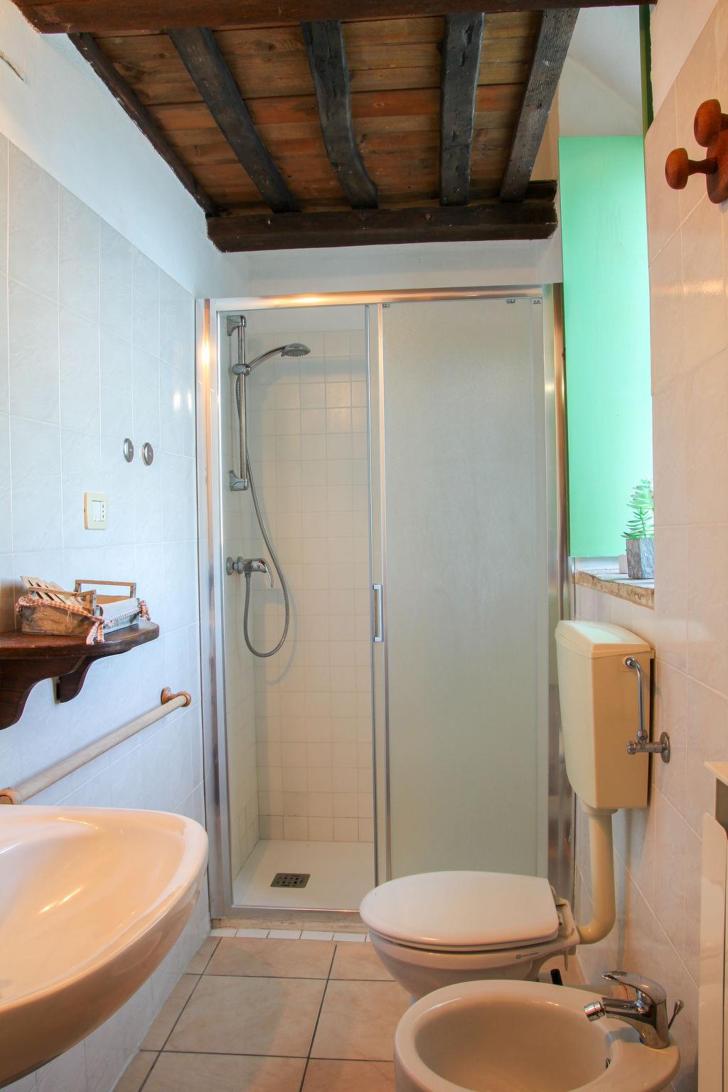 Parco San Bartolo: Rustic, simple, historical cottage "Casamare Gabicce", 2 storeys, from the 17th century, surrounded by meadows and fields. 8 apartments in the residence. Above Baia Vallugola 2.7 km from the centre of Gabicce Monte, 5 km from the centre of Cattolica, outside the resort, in a secluded, sunny position on top of a hill, 1.5 km from the sea, 1.5 km from the beach, in the countryside. For shared use: natural state property, garden (not fenced) with plants and trees, meadow, swimming pool (40 m2, depth 120 cm, seasonal availability: 01.Jun. - 15.Oct.). Unconventional pool shape. Outdoor shower, hot tub, patio, terrace, garden furniture. In the complex: WiFi. Linen change weekly. Towel change 2 times per week. Room cleaning on request (extra). 200 m long motor access (via unmade road). Parking on the premises. Shop 1.5 km, supermarket 7 km, bus stop 800 m, railway station "Cattolica" 5 km, pebble beach "Baia Vallugola" 1.5 km. Marina 1.5 km. Nearby attractions: Gradara 3.5 km, Casteldimezzo 3.5 km, Pesaro 13 km, Rimini 30 m. Hiking paths: Parco San Bartolo 200 m, Parco Sasso Simone Simoncello 55 km. Please note: car recommended. Local sale of farm products.