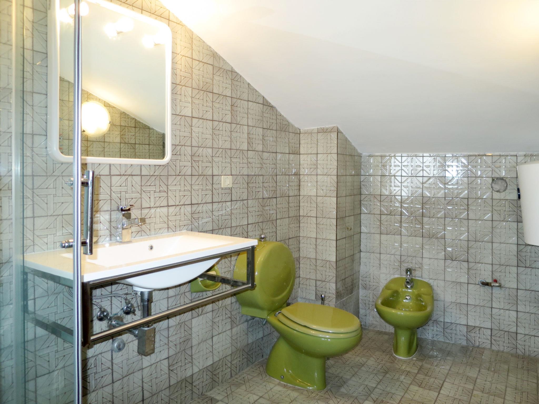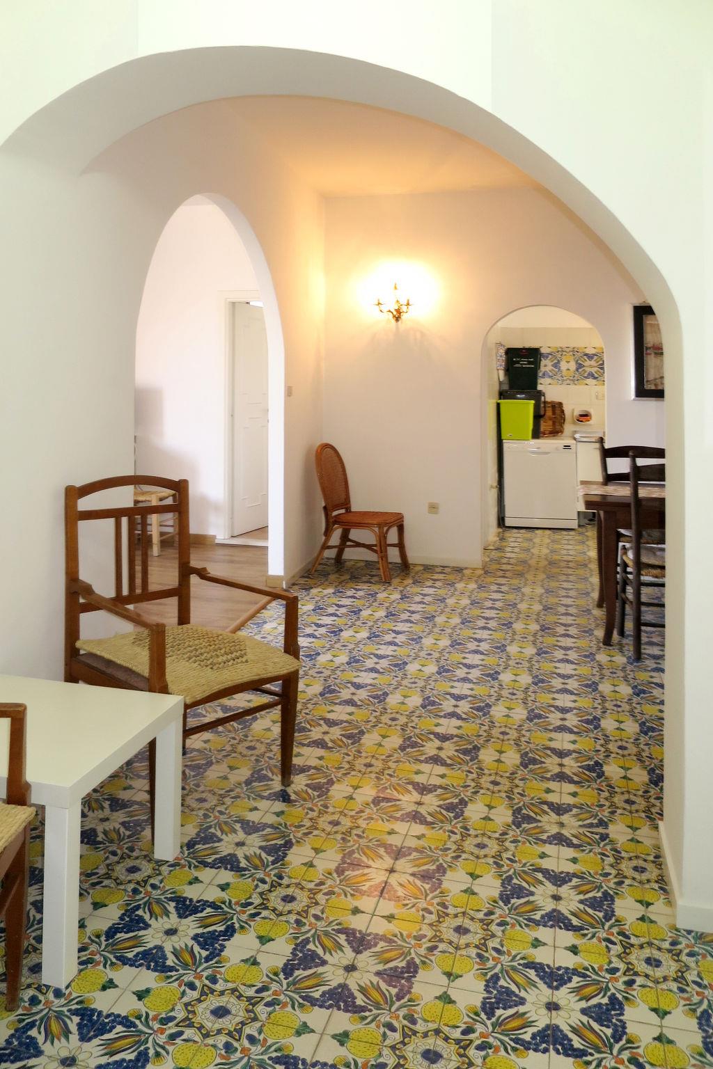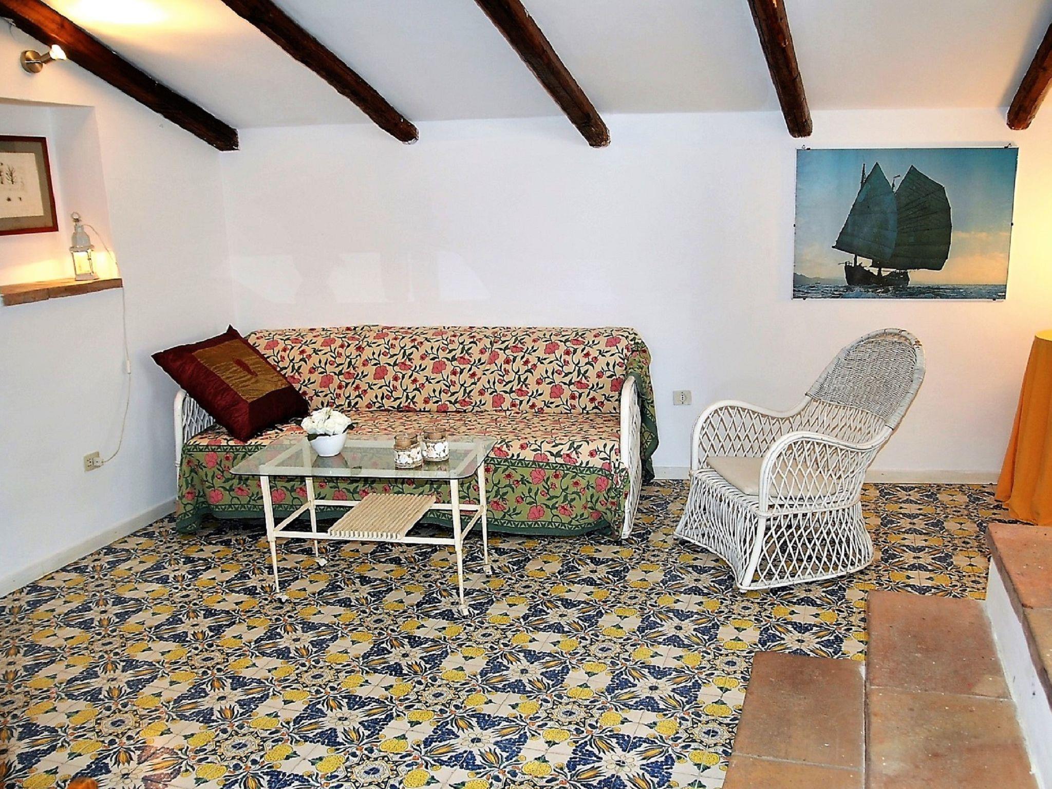 "Casa Belvedere", 5-room house 130 m2 on 2 levels on 1st floor. Beautiful furnishings: living room with 1 double sofabed, TV, flat screen and air conditioning. Dining room. 1 double bedroom. Kitchen (4 hot plates, oven, dishwasher, kettle, freezer). 2 showers/bidet/WC. 2nd upper floor: living room with sloping ceilings with 1 sofabed. Exit to the terrace. 1 double bedroom. Shower/bidet/WC, hydro massage shower. Heating, air-conditioning. Terrace 30 m2 partly roofed. Terrace furniture, electric barbecue. View of the sea. Facilities: washing machine. Internet (WiFi, free). Please note: non-smoking house. Maximum 1 pet/ dog allowed. No lift. IT059009C2JRMNXCRA