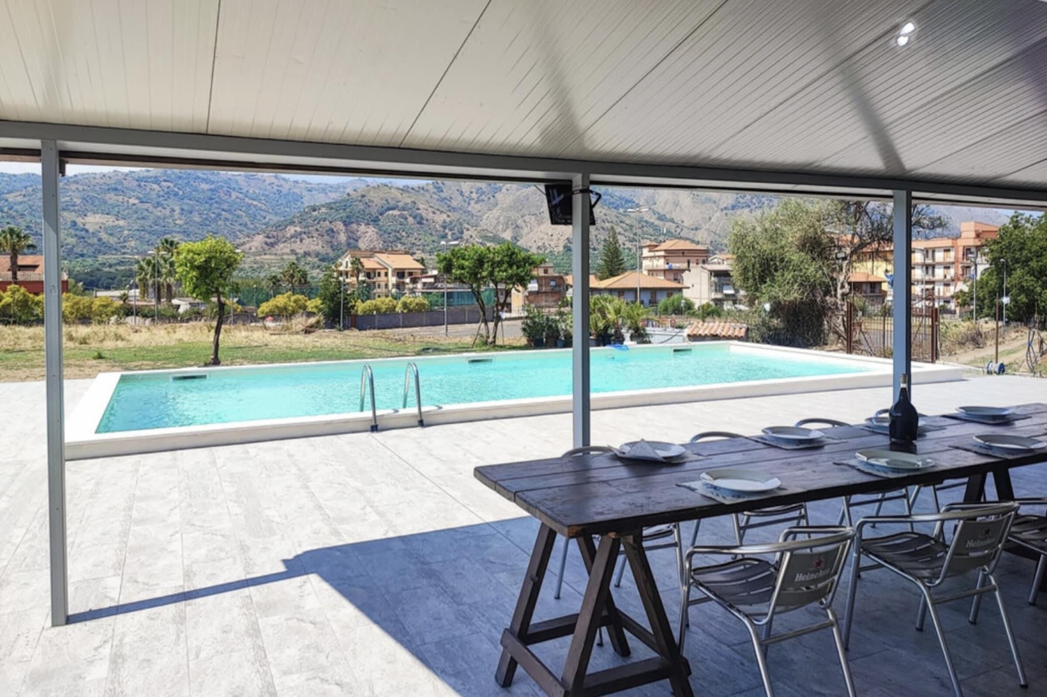 Denne smukke moderne villa i Gaggi tilbyder et elegant, men funktionelt design med fem rummelige soveværelser, hver udstyret med aircondition for ultimativ komfort. Det velindrettede køkken er perfekt til at tilberede lækre måltider med lokale råvarer, som kan nydes under villaens charmerende møblerede veranda. Villaen ligger i en stor privat have og har en forfriskende swimmingpool, der giver det ideelle sted at slappe af og nyde den sicilianske sol. Med sine fredfyldte omgivelser er det det perfekte tilflugtssted for dem, der søger både ro og luksus. Villaens beliggenhed er perfekt til at udforske områdets naturlige skønhed. Kun en kort afstand fra det majestætiske Etna, det krystalklare vand i det østlige Sicilien og den historiske charme af byer som Taormina og Catania, tilbyder denne ejendom en eksklusiv base for at opleve betagende landskaber og rig kulturhistorie.