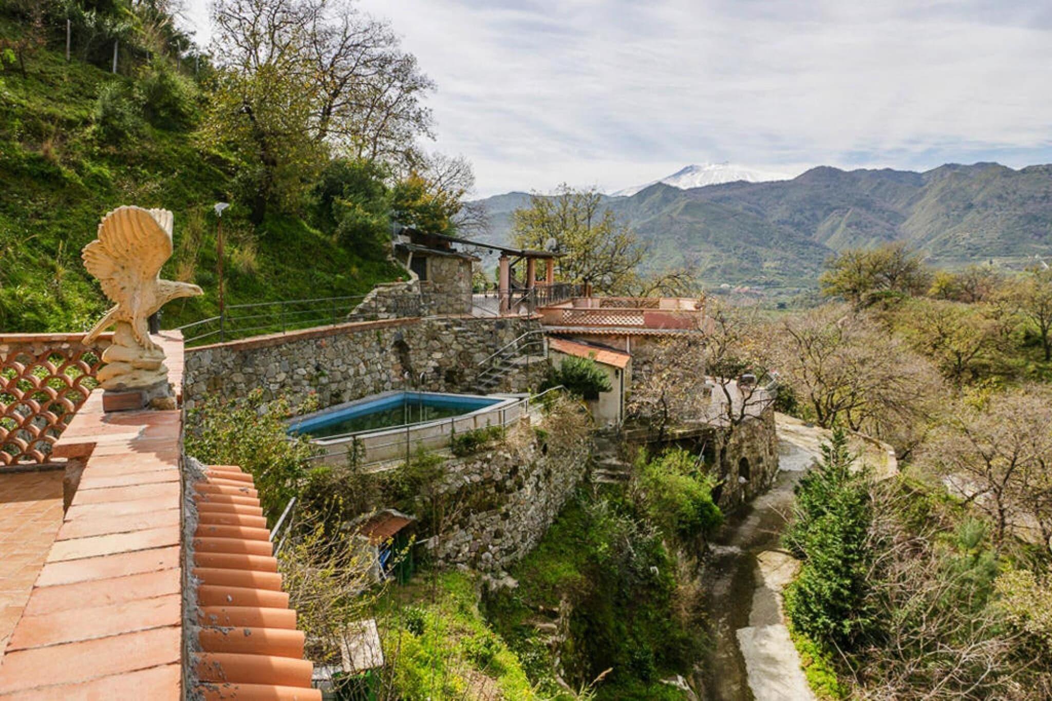 Hyggeligt sommerhus med smuk udsigt og privat udendørs pool. Det tidligere bondehus er et vidunderligt tilflugtssted, hvis du ønsker at tilbringe en afslappende ferie på Sicilien med din familie eller et par venner. På panoramaterrassen kan du slappe af og lade blikket vandre over det omkringliggende bjerglandskab. I et lille udhus (20 m²) er der et soveværelse med eget badeværelse. Ind imellem eller efter en udflugt kan du tage en dukkert i den halvtreds kvadratmeter store swimmingpool. Gaggi er en lille landsby omkring fem kilometer fra Giardini Naxos og Taormina på den smukke kyst. Butikker og bagerier, en café og en restaurant findes i byens centrum, som kan nås på en kort gåtur på 600 meter. Detaljer: Forbrugsbaserede energiomkostninger, sengelinned, håndklæder, slutrengøring, WiFi Aktiviteter i nærheden: Dejlige stranddage i bugten Giardini Naxos nær Taormina, som ligger midt i det smukke kystlandskab på det østlige Sicilien. Opstrøms ligger den lille ø Isola Bella, hvor mange kunstnere allerede har fundet inspiration. Taormina har mange seværdigheder såsom det græsk-romerske teater, hvorfra man også har udsigt til Etna. Den berømte vulkan er naturligvis også en tur værd. Mobilitet: Velegnet til bevægelseshæmmede