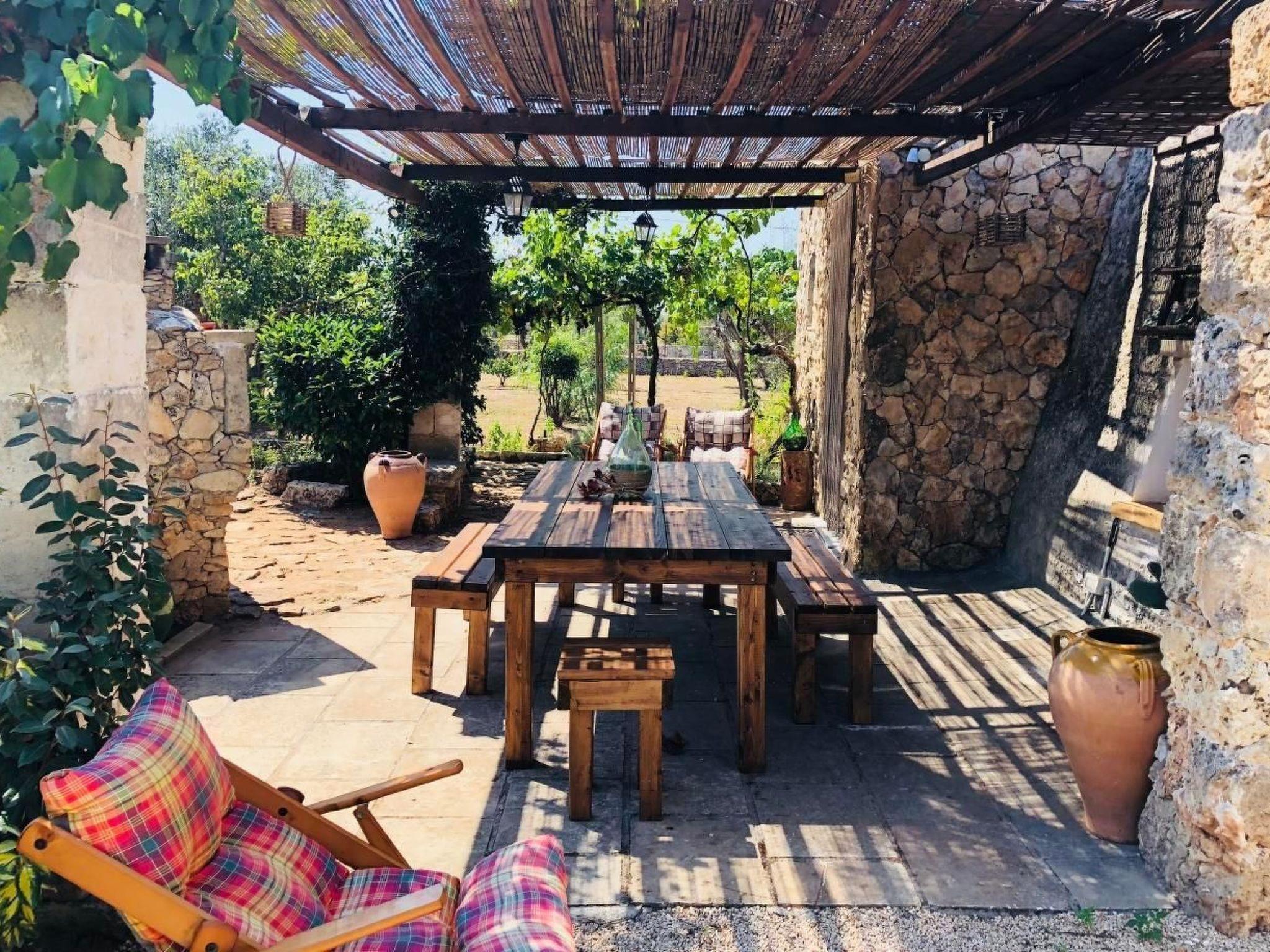 Very old Pajara, typical Salento TRULLI original and preserved (no imitations), just 5 minutes from the sea and the beaches of Gallipoli and 10 minutes from Lecce, in a beautiful resort area in the Salento countryside of the bay of Gallipoli, in a strategic position to visit the whole Salento, from Otranto to Porto Cesareo, from Lecce to Gallipoli! 3 bedrooms of which: 2 double rooms in the trulli with domed ceiling and one metre thick walls and 1 room with 3 single beds in the old wood-burning oven where frise and bread were baked. Tv in the room.1 semi-double sofa bed in the living room. Sheets included.From 2 to 9 beds, you rent the whole house regardless of how many of you there are, so you will not find other guests and both the house and the garden will be for your exclusive use! Full kitchen, fridge, oven, cooker, pots and pans, cutlery, kettle, teapot.2 verandas and barbecue area with wooden table where you can dine al fresco.Living room with LCD TV, sofa bed, bookshelves and dining table.Air conditioning hot/cold and wifi internet connection throughout the house.2 bathrooms with toilet, bidet, shower, hot water, an indoor bathroom and a very characteristic one in the garden near the barbecue area. There is also a third sun shower in the garden, very useful in the summer when returning from the sea! Washing machine, iron and hairdryer available.Garden with orchard, centuries-old olive grove and fully fenced parking spaces.Your 4-legged friends are welcome and safe as everything is fenced off with walls and nets.hammocks, deckchairs, swings and much more!Excellent solution FOR ALL SEASONS, thanks to the presence of HEAT/COOL AIR CONDITIONING.BECAUSE THE SALENTO IS BEAUTIFUL ALL YEAR ROUND!Brief descriptionOther : Non-smoking houseBrief description 1Total kitchens : 1SurroundingsSports facilities nearby : Surfing, Climbing, Football pitch, Golf course, Riding school/riding possibilities, Canoeing, Sports centre, Sailing, Cycling, Mountainbiking, Basketball, Skating, Hunting opportunities, Rowing, Climbing, Water skiing, Riding school, Snorkelling, TennisRenting possibilities : Bicycle rental, Rental servicesGarden and outdoor areasGarden equipment : Grill, Garden furniture available