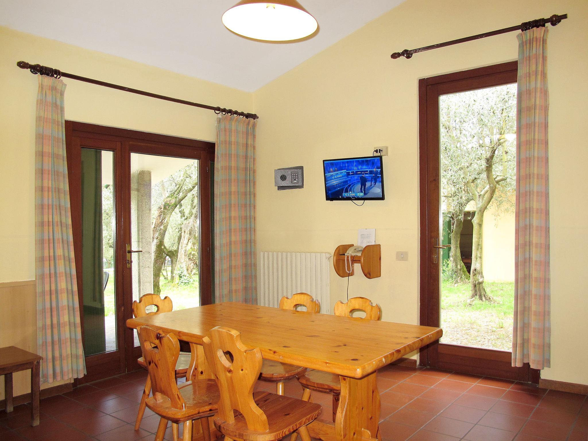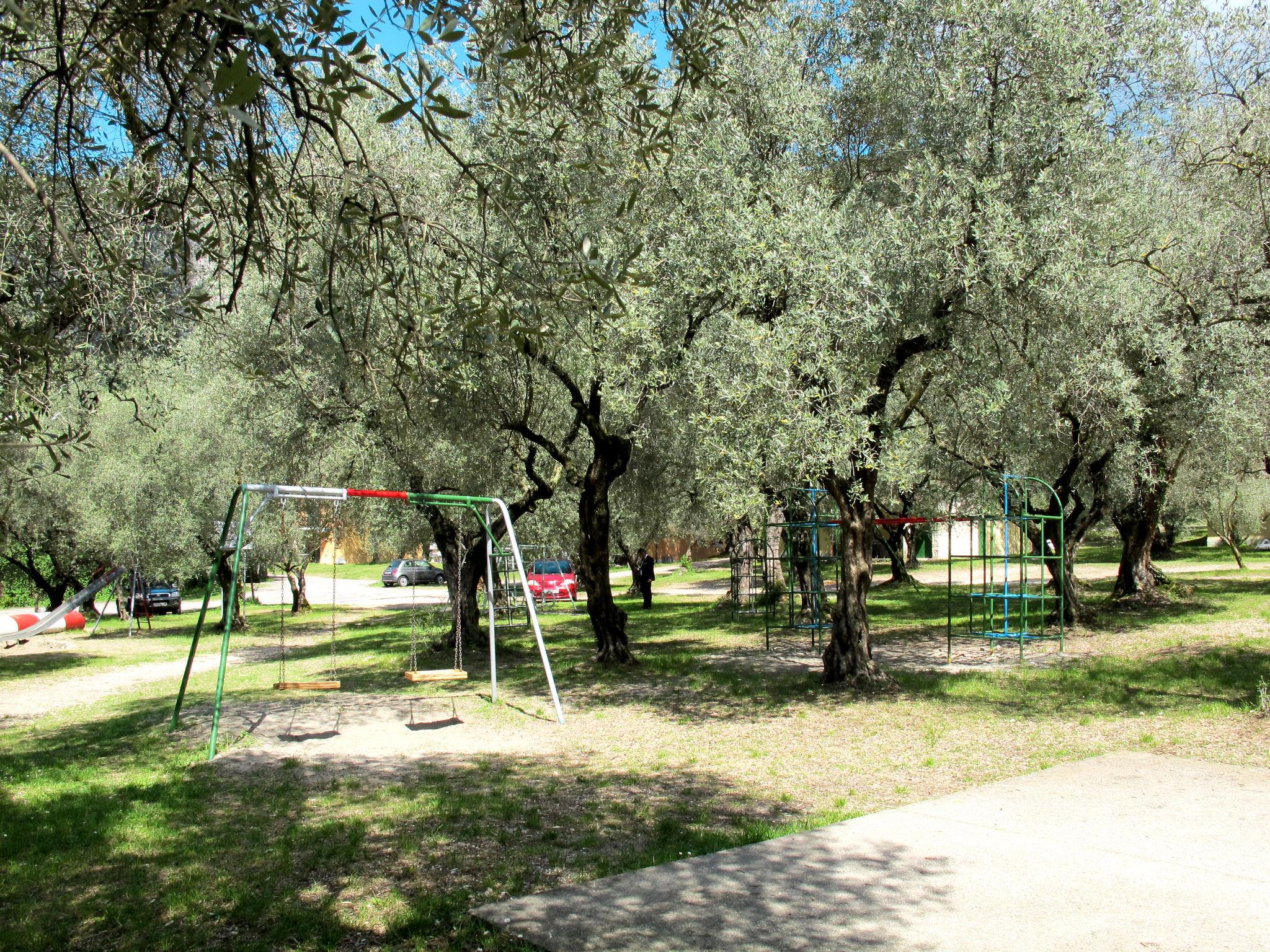 Large, simple resort "Parco del Garda". 248 houses in the resort. Above Garda, 1 km from the centre, in an elevated position on top of a hill, 900 m from the lake, 900 m from the beach, road to cross. For shared use: natural state property 11 ha with plants and trees, 2 swimming pools (depth 40 - 170 cm, seasonal availability: 01.Apr. - 31.Oct.). Unconventional pool shape. WC in the pool area, children's pool, outdoor shower, tennis (4 x clay court) (extra), beach volleyball, garden furniture, children's playground. In the complex: reception, restaurant, bar, internet access, WiFi, table tennis, shopping facilities, heating to be paid on the spot. Parking on the premises. Bus stop 300 m, pebble beach 900 m. Golf course (18 hole) 4 km. Nearby attractions: Peschiera del Garda 19 km, Malcesine 27 km, Verona 40 km. Please note: baby equipment on request (extra).
