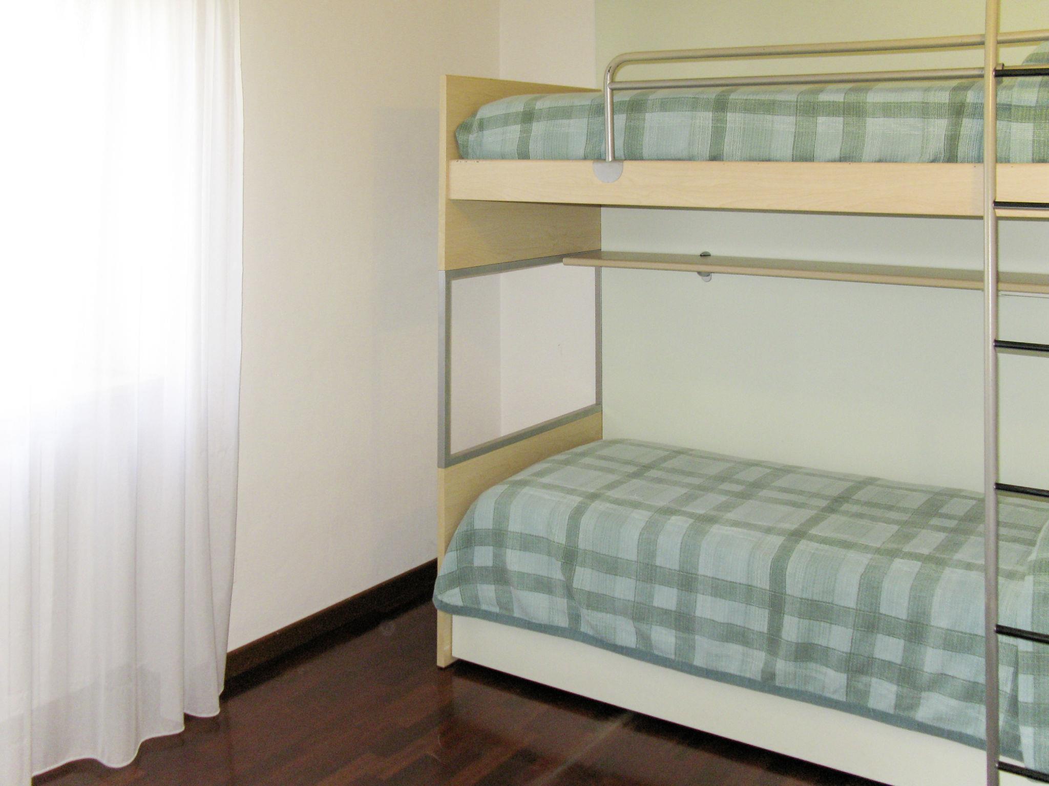 3-room apartment 70 m2 on 2 levels, on the ground floor. Beautiful furnishings: living/sleeping room with 1 sofabed, dining table and satellite TV. Exit to the garden. 1 room with 1 x 2 bunk beds. Open kitchen (oven, dishwasher, 4 gas rings, toaster, kettle, microwave, freezer, electric coffee machine). Shower/bidet/WC. Upper floor: 1 double bedroom with bath/bidet/WC. Gas heating, air-conditioning. Heating available only from 01.10. to 30.04. Parquet floors. Patio, garden. Facilities: washing machine, safe, children's high chair, baby cot. Internet (WiFi, free). Garage (1 car). Please note: non-smokers only. Private entrance. IT023030B4QD7G87SY