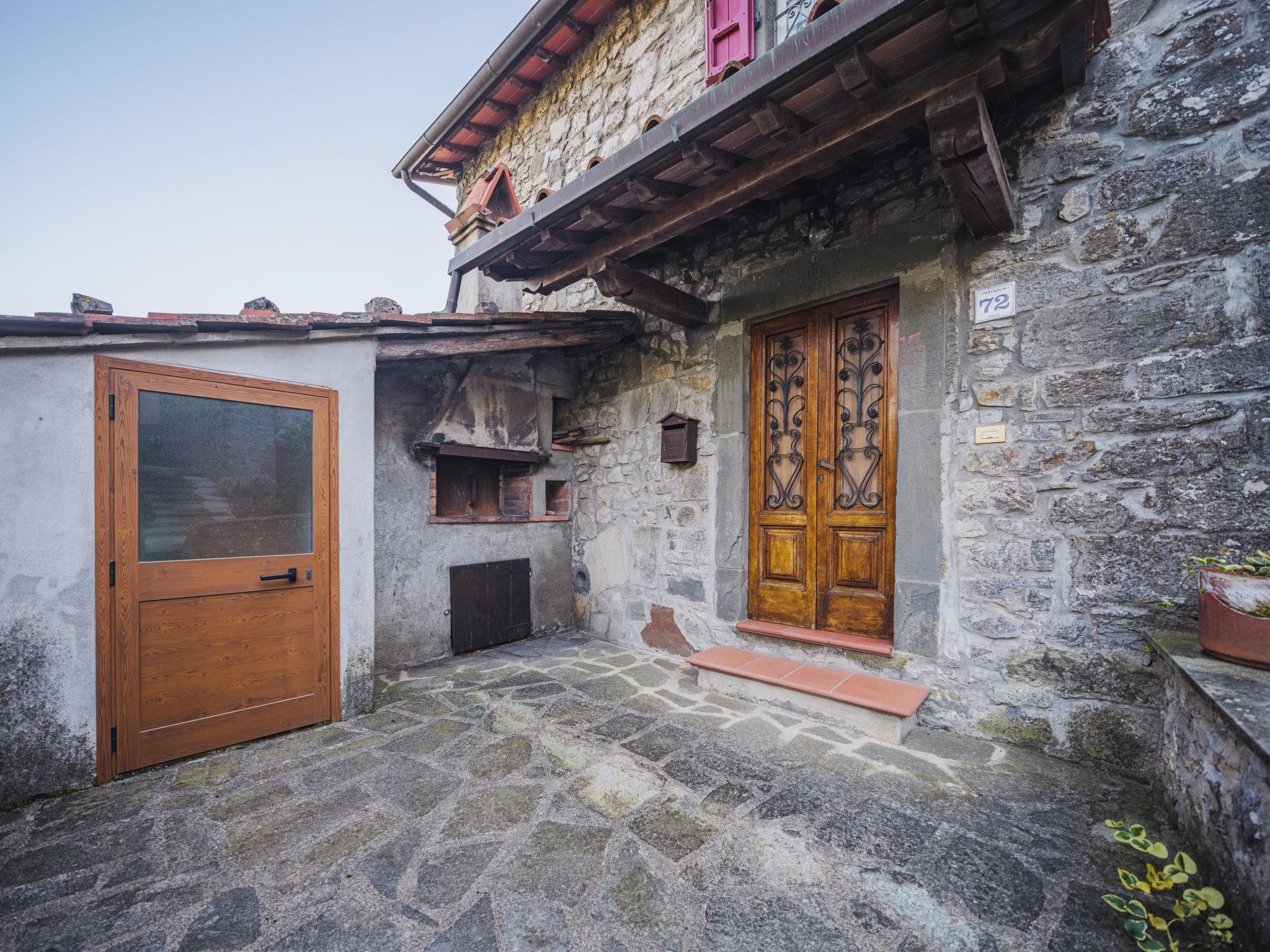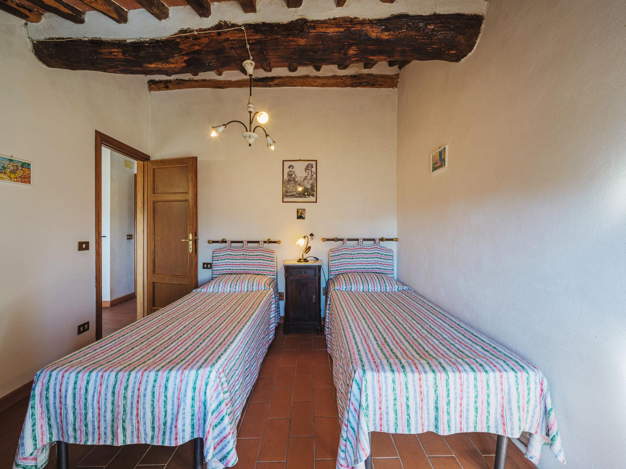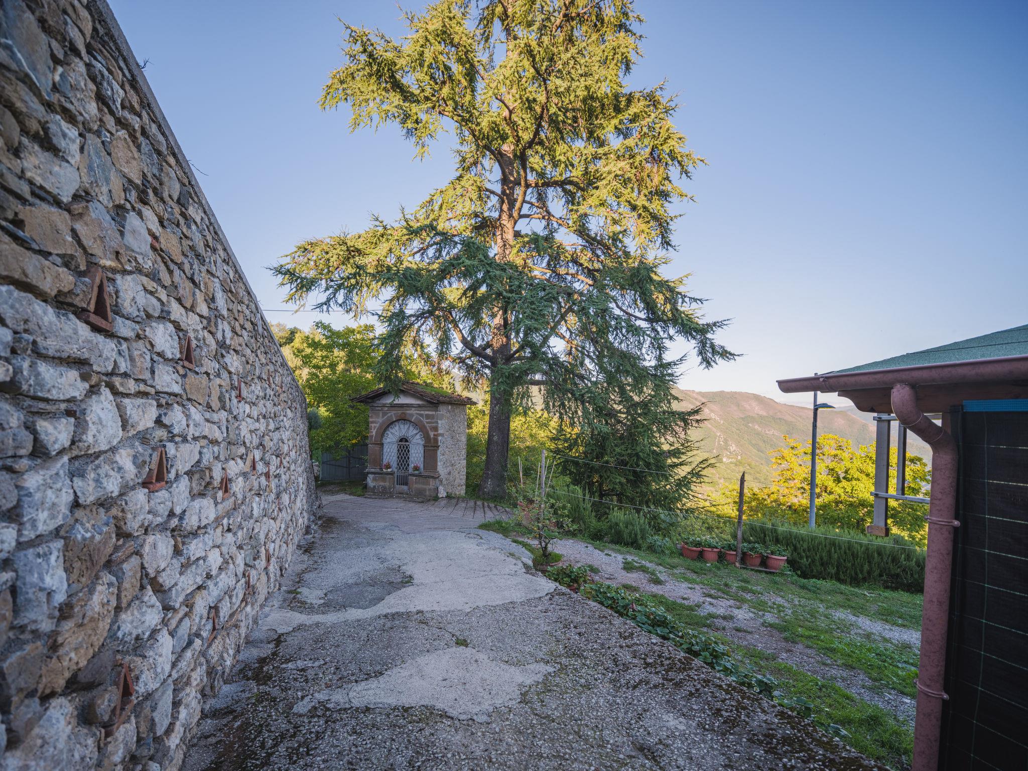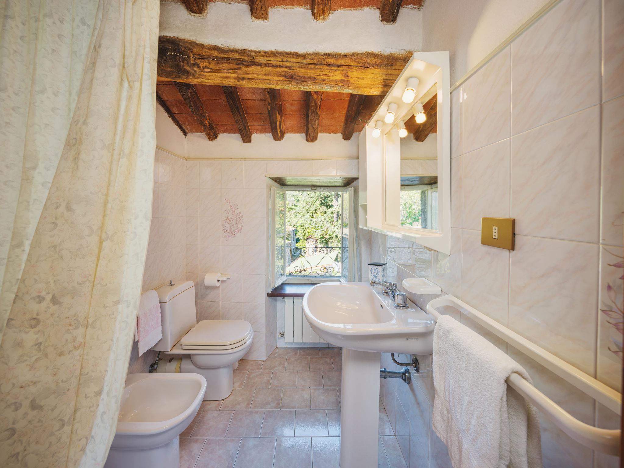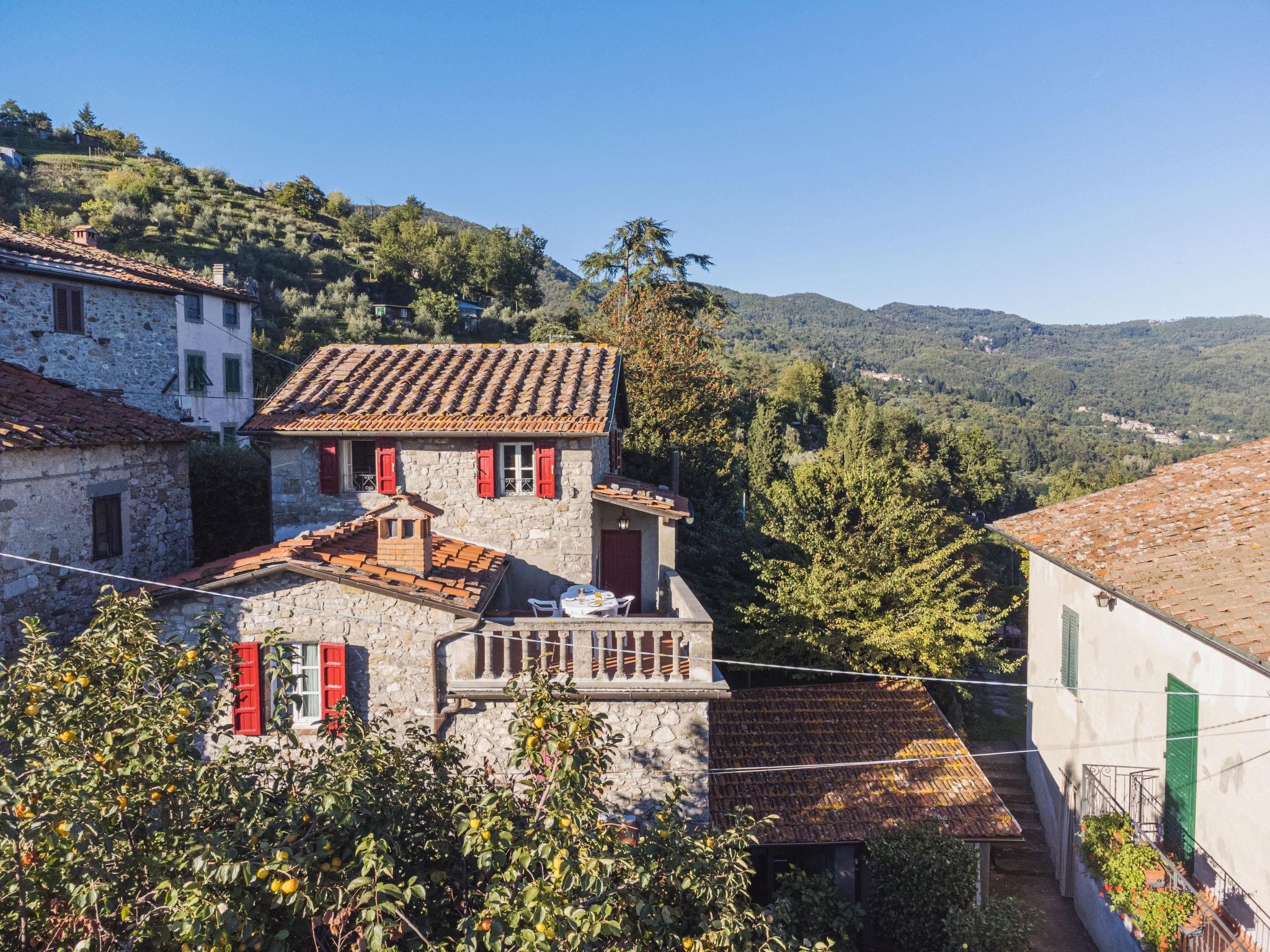 2-family house "Pervinca", 3 storeys. 50 m from the centre of Gello, 9 km from the centre of Diecimo, 25 km from the centre of Lucca, in an elevated position, 35 km from the sea, 35 km from the beach, in a pedestrian area. In the house: central heating system, heating to be paid on the spot (28.Mar. - 30.Oct.), heating available only from 31.Oct. - 27.Mar.. 150 m steep footpath to the house. Public parking 150 m on the road. Shop 6 km, supermarket 12 km, bus stop 150 m, sandy beach 35 km, outdoor swimming pool 12 km. Nearby attractions: Montecatini Terme 50 km, San Giuliano Terme 38 km, Pisa 44 km, Collodi Pinocchio Park 34 m, Viareggio 36 km, Firenze 108 km. Well-known lakes can easily be reached: Torre del Lago 40 m, Lago di Massaciuccoli 43 m. Please note: car recommended.