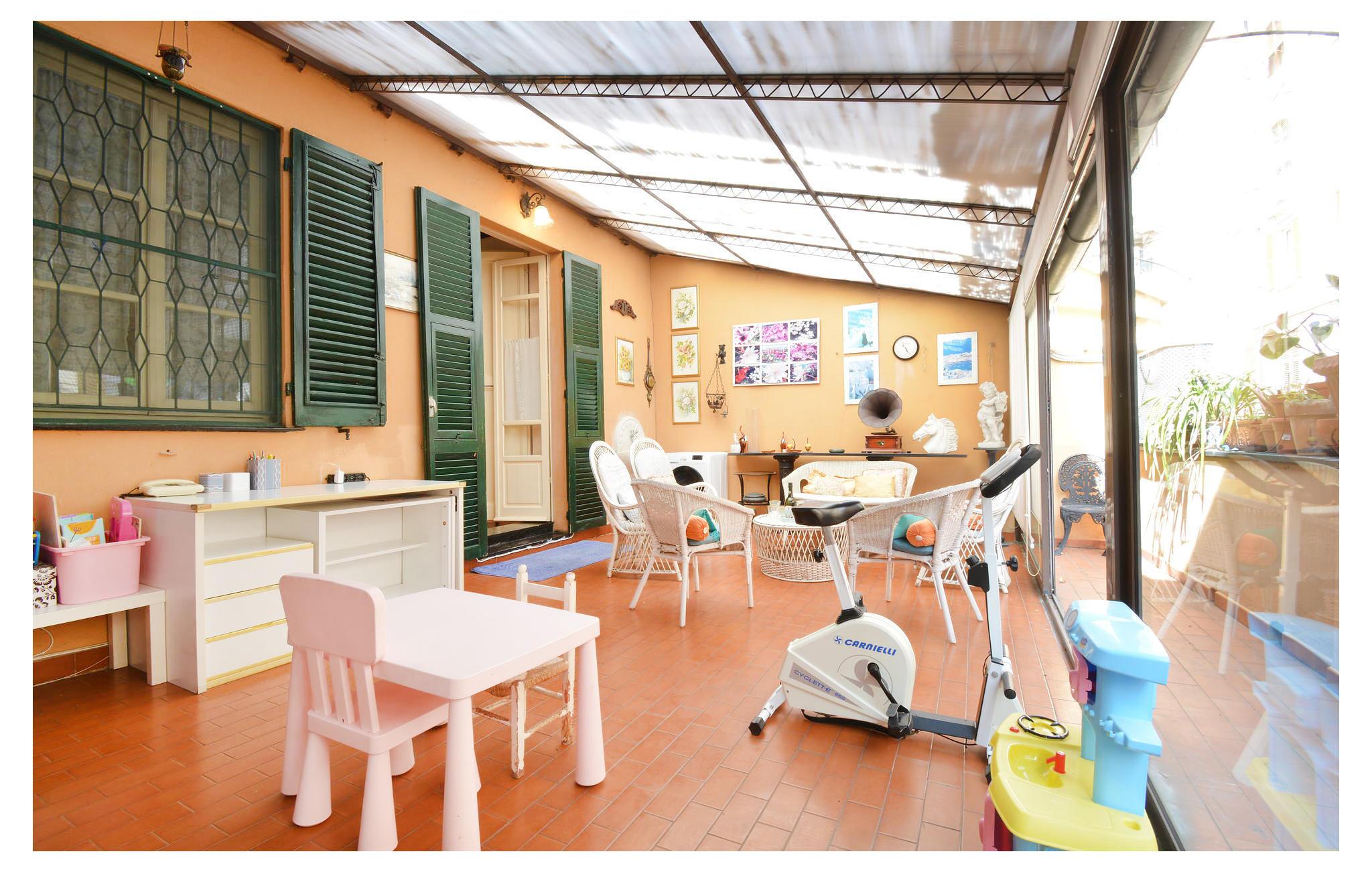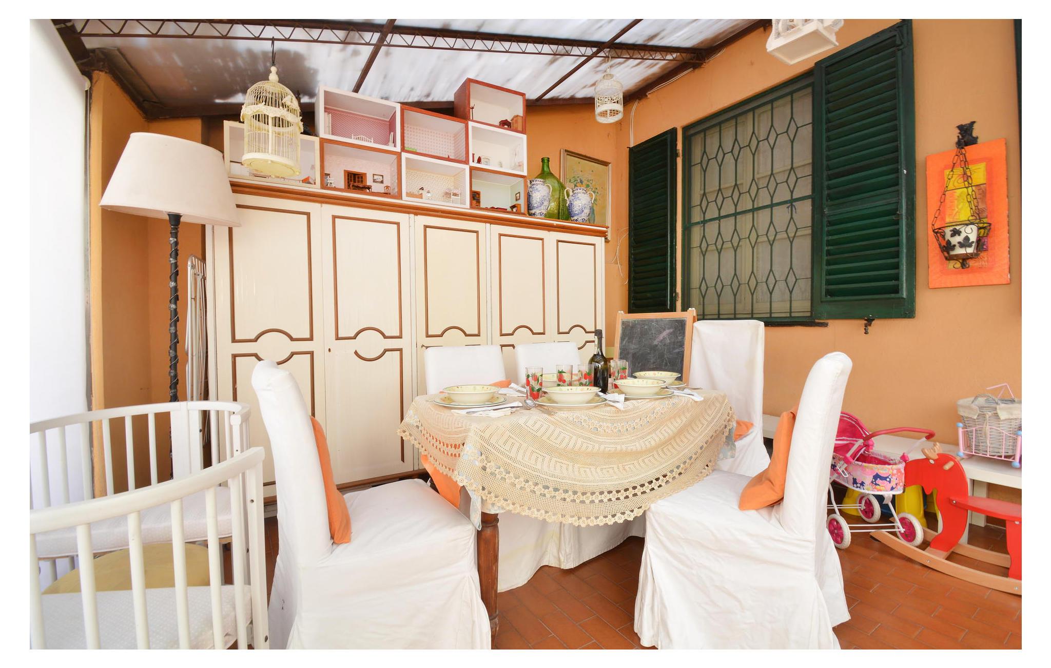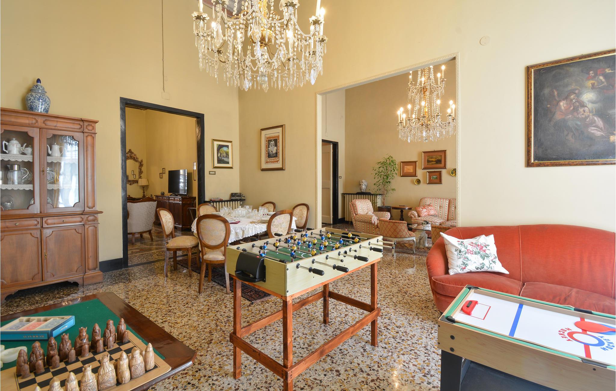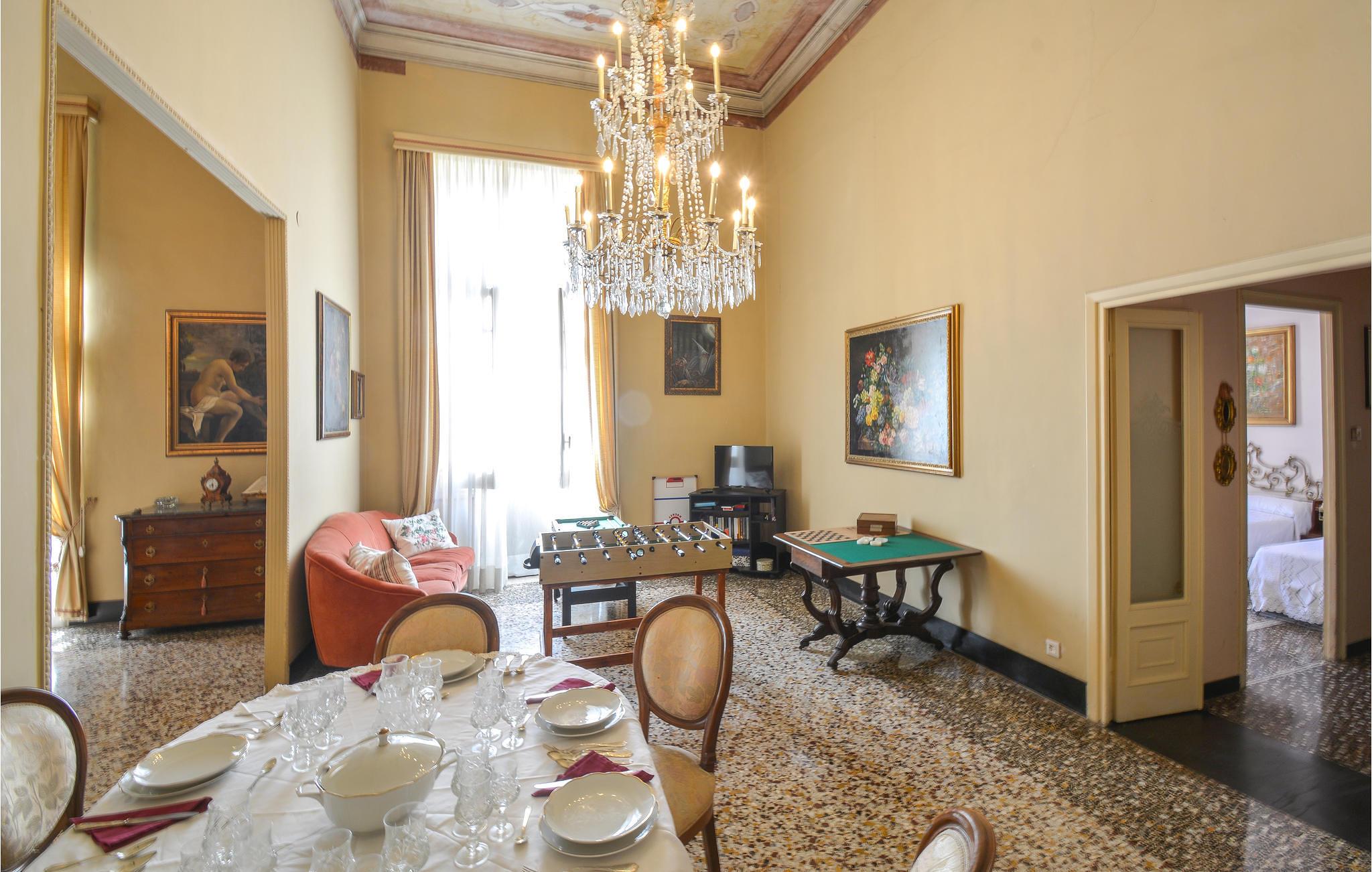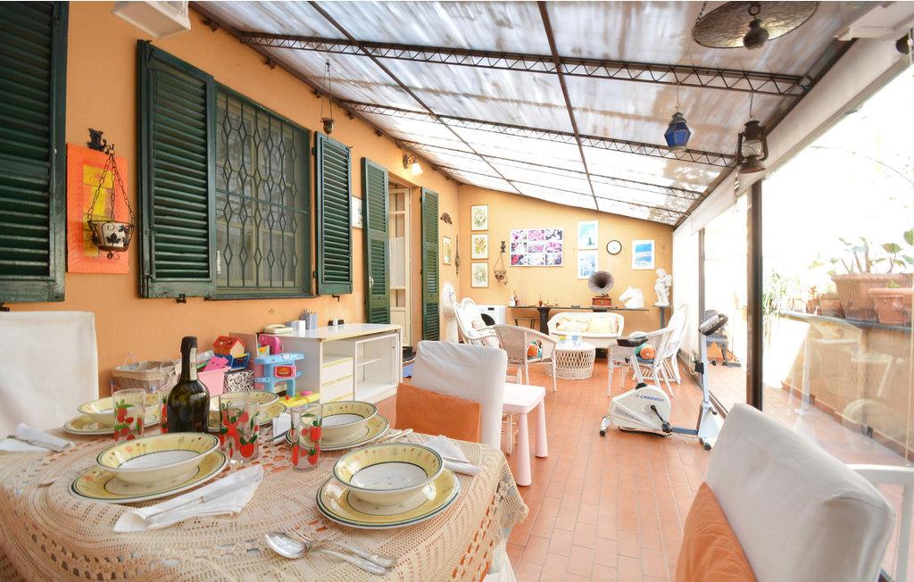 Vest for Genova, i bydelen Sestri Ponente, finder I denne rummelige ferielejlighed med ideelle forhold for store og små. De flotte værelser med smukke møbler og et væld af fine, dekorative detaljer gør et stateligt indtryk og inviterer jer og jeres store familie til en afslappende ferie i en unik atmosfære. Her er underholdning for alle pengene. Spil en omgang bordfodbold eller billard, mens de små boltrer sig med legetøjet, der er til rådighed i lejligheden. Der er også en motionscykel for de aktive gæster. Om morgenen kan I nyde en lækker morgenmad på den dejlige veranda og senere afslutte dagen samme sted med en god middag.