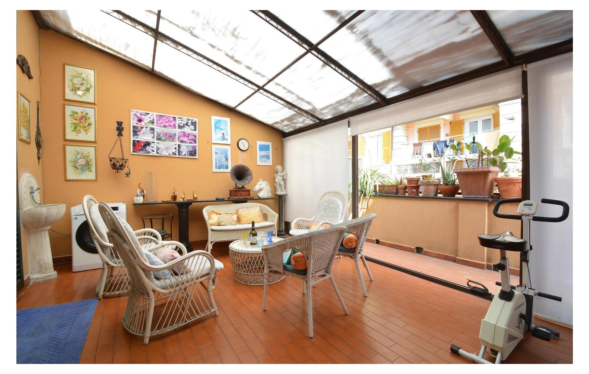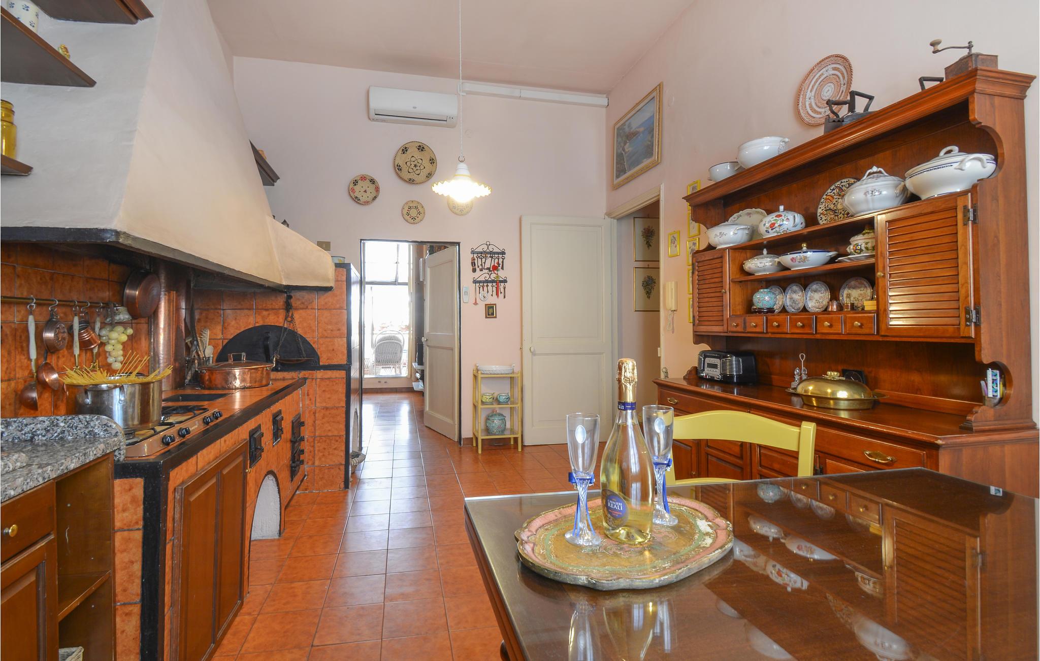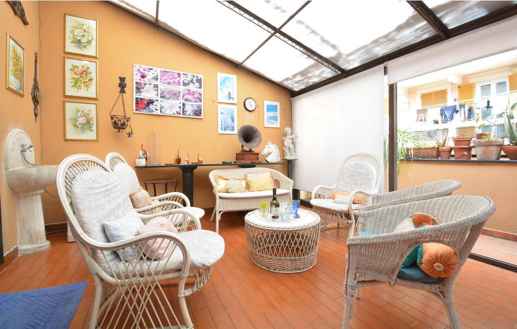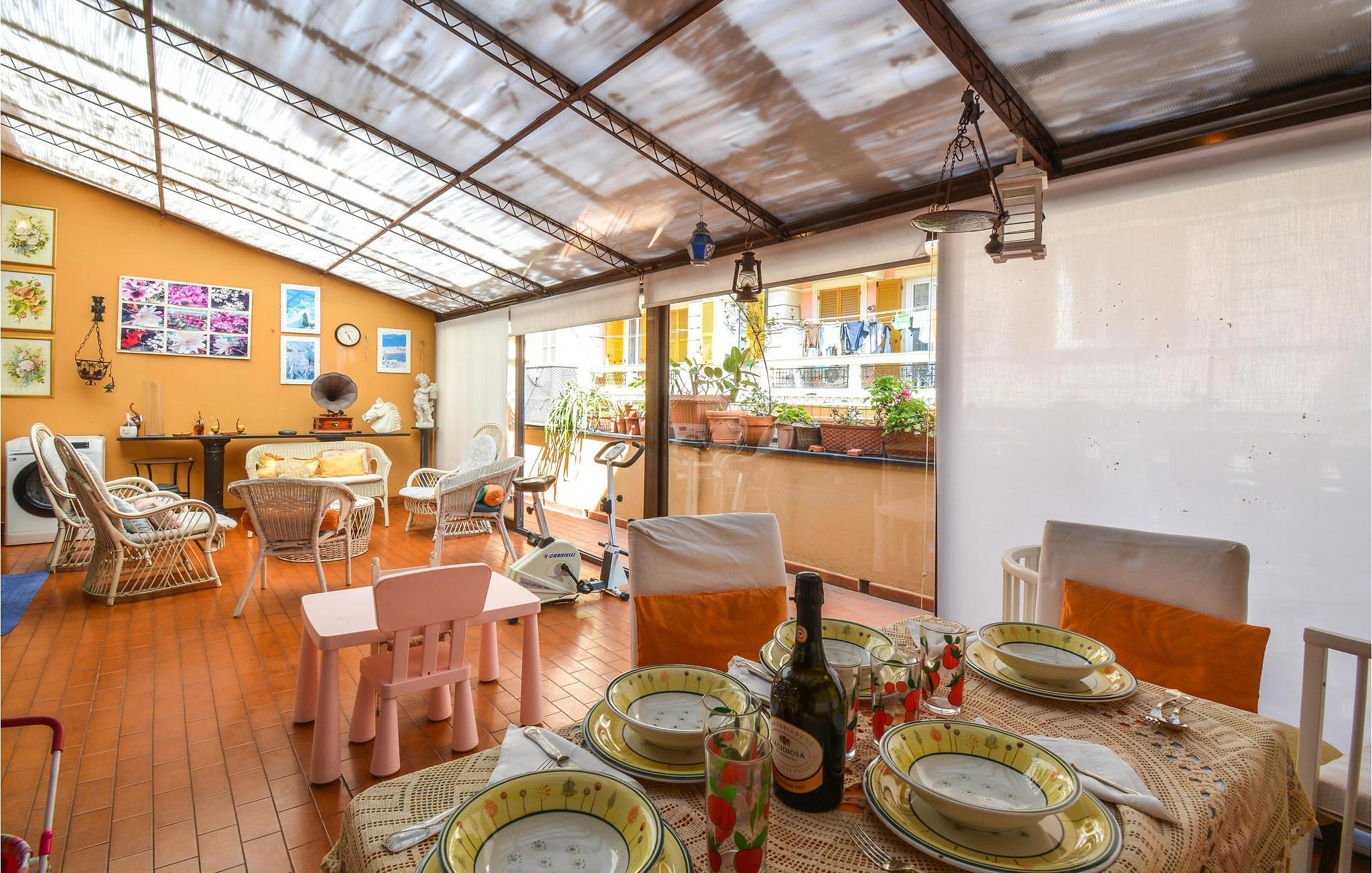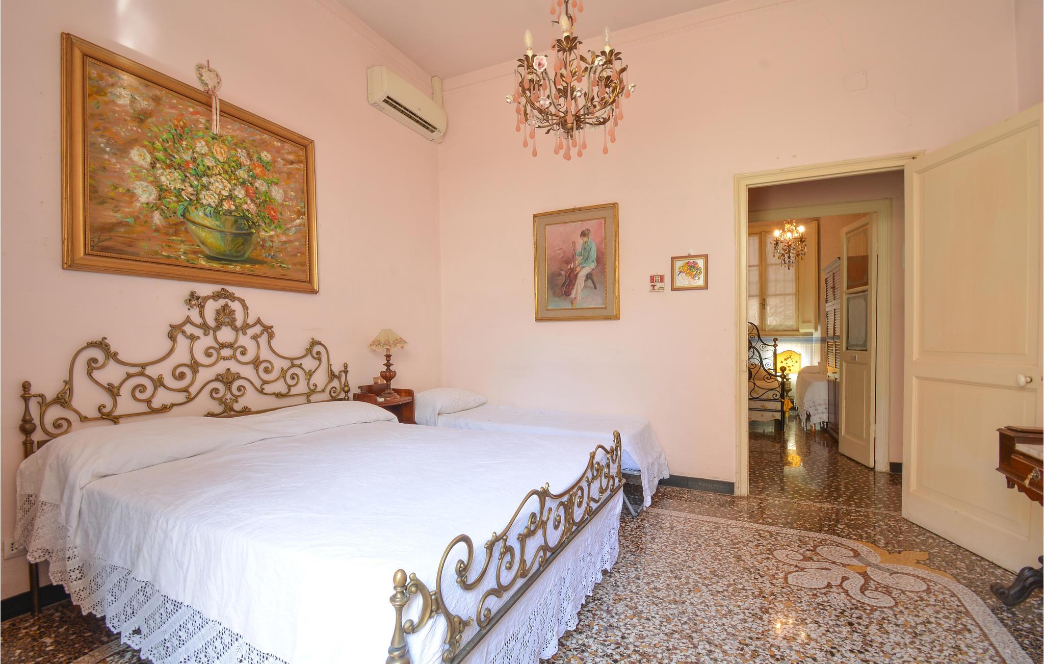 Vest for Genova, i bydelen Sestri Ponente, finder I denne rummelige ferielejlighed med ideelle forhold for store og små. De flotte værelser med smukke møbler og et væld af fine, dekorative detaljer gør et stateligt indtryk og inviterer jer og jeres store familie til en afslappende ferie i en unik atmosfære. Her er underholdning for alle pengene. Spil en omgang bordfodbold eller billard, mens de små boltrer sig med legetøjet, der er til rådighed i lejligheden. Der er også en motionscykel for de aktive gæster. Om morgenen kan I nyde en lækker morgenmad på den dejlige veranda og senere afslutte dagen samme sted med en god middag.