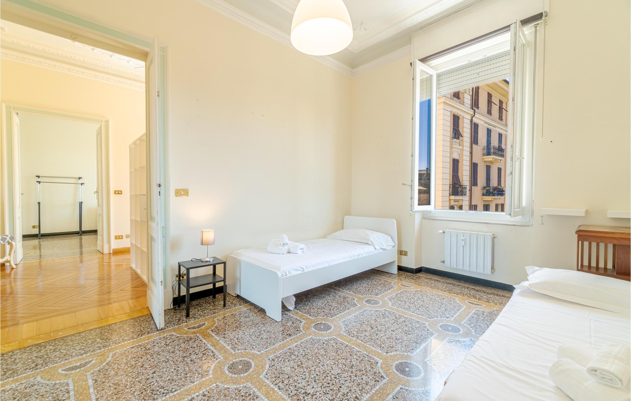 Dette enestående lejlighed byder jer og jeres udvidede familie eller flere par velkommen til den livlige by Genova. På 3. sal i et rækkehus er lejligheden præget af forskellige materialer, stilarter og kreativitet. Den store lejlighed tilbyder jer det perfekte udgangspunkt for at udforske byen og lægge benene op i stuen efter lange gåture eller for at stille jeres sult i køkkenet. Diskuter dagens aktiviteter og udflugter for den kommende dag over morgenmad sammen og tag afsted lidt senere.