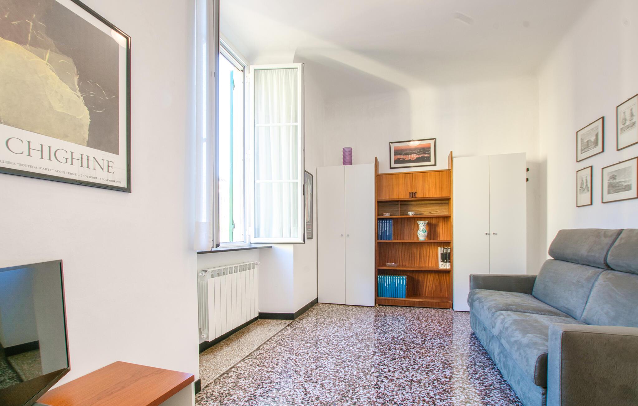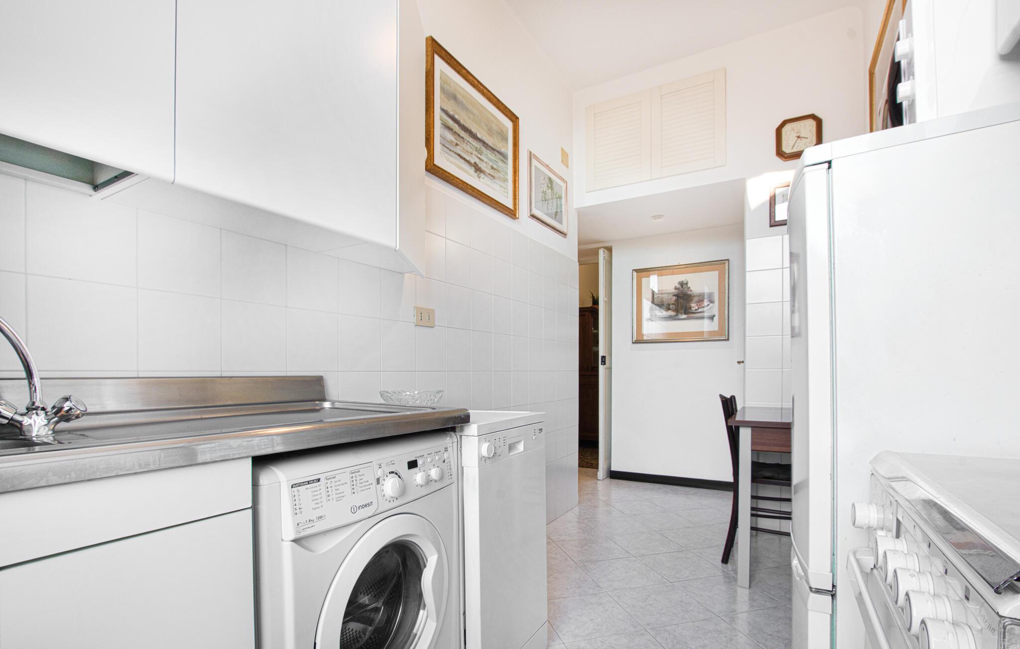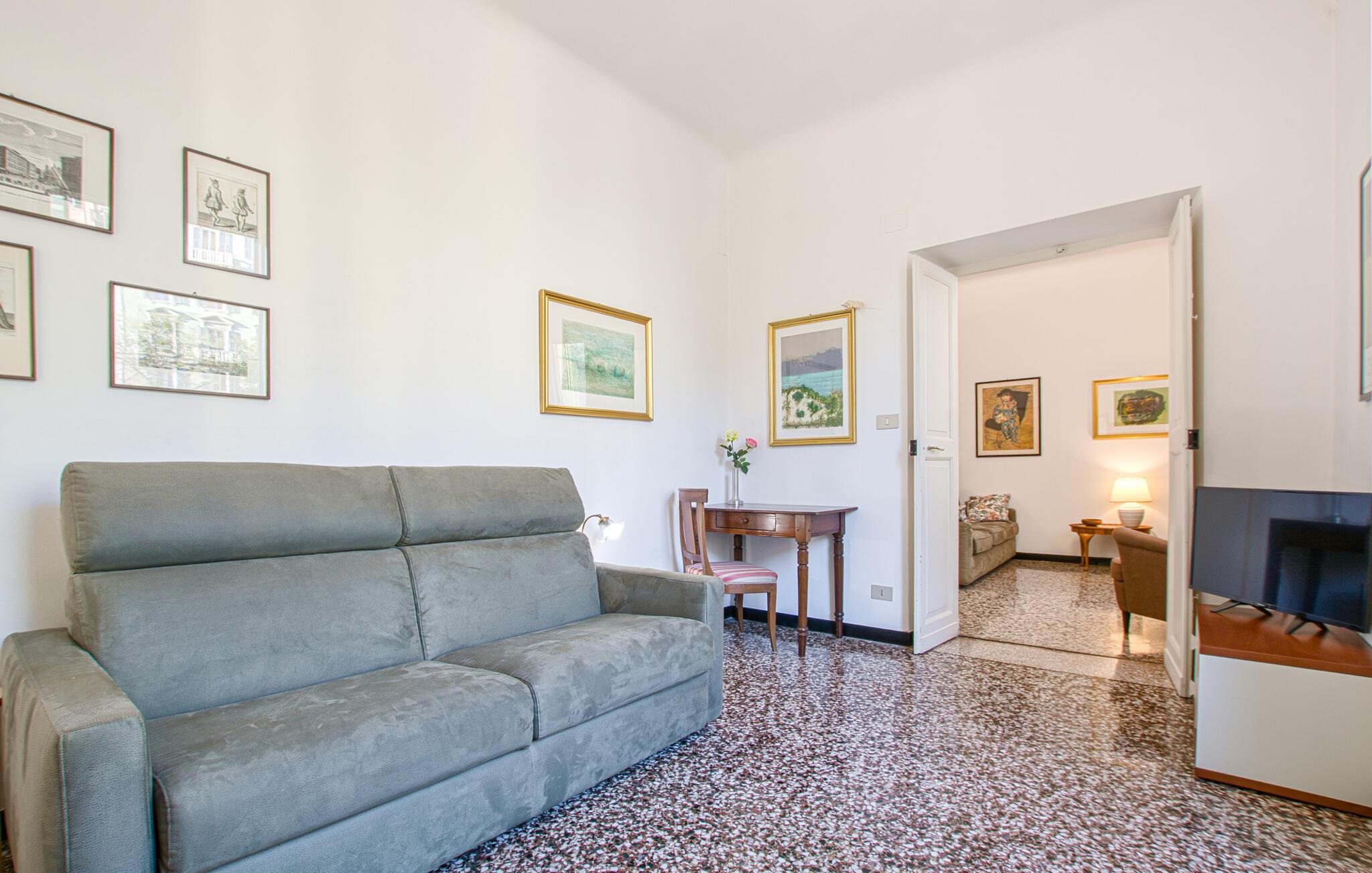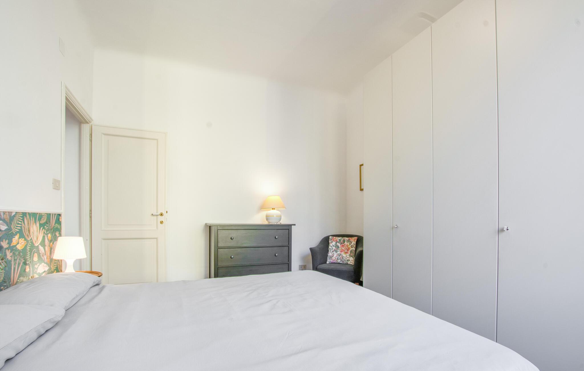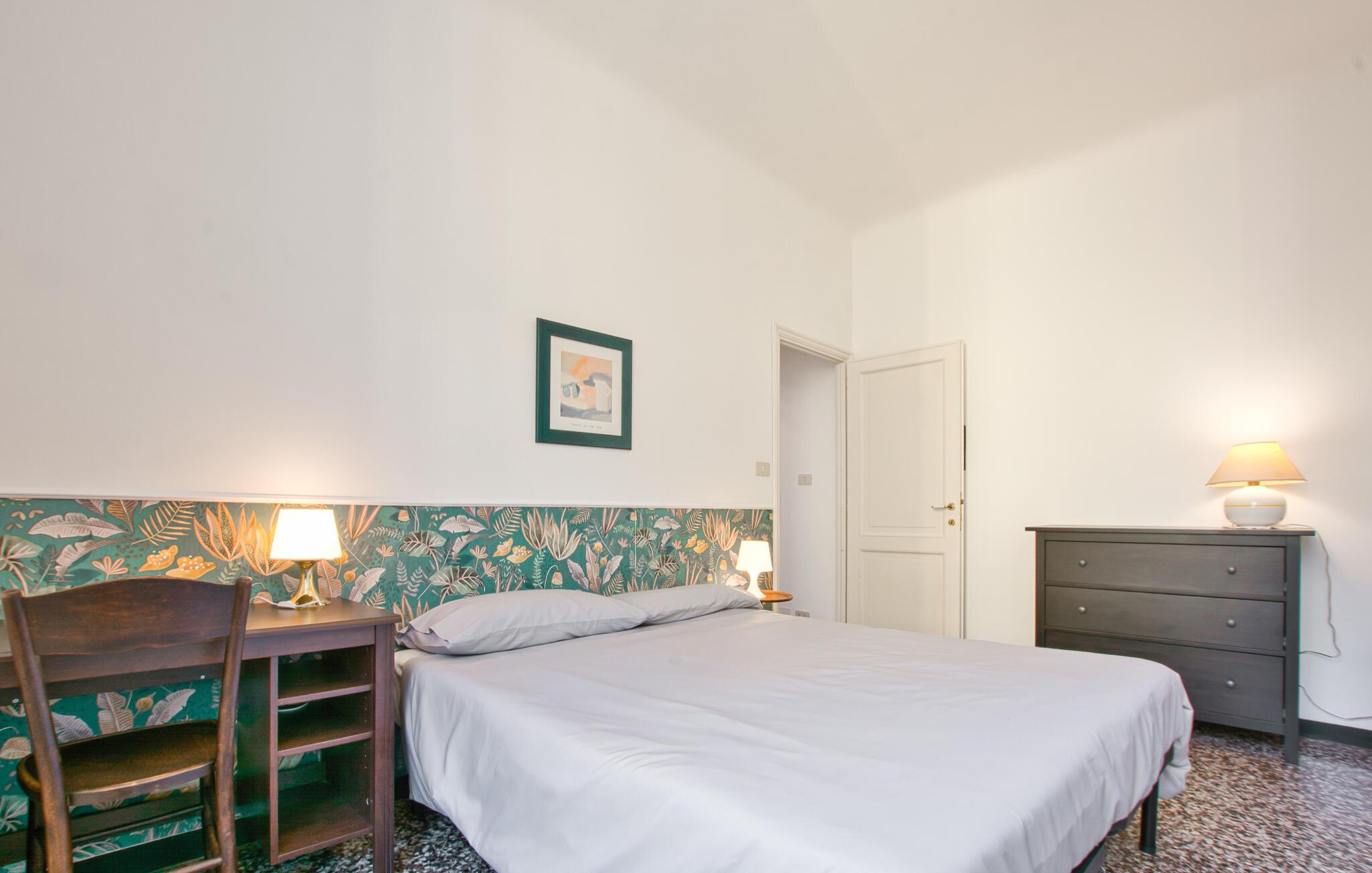 Beliggende tæt på charmerende seværdigheder inviterer denne lyse og indbydende lejlighed jer til en pause med urbant præg. Tilbered lækre måltider med friske råvarer fra markedet og planlæg jeres udflugter i en afslappet atmosfære. Efter en lang dag kan I slappe af på sofaen og streame en spændende film.