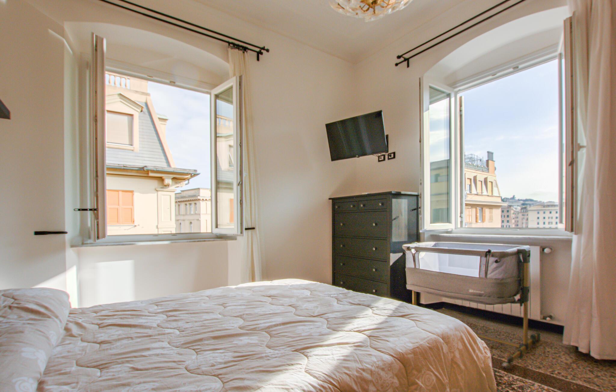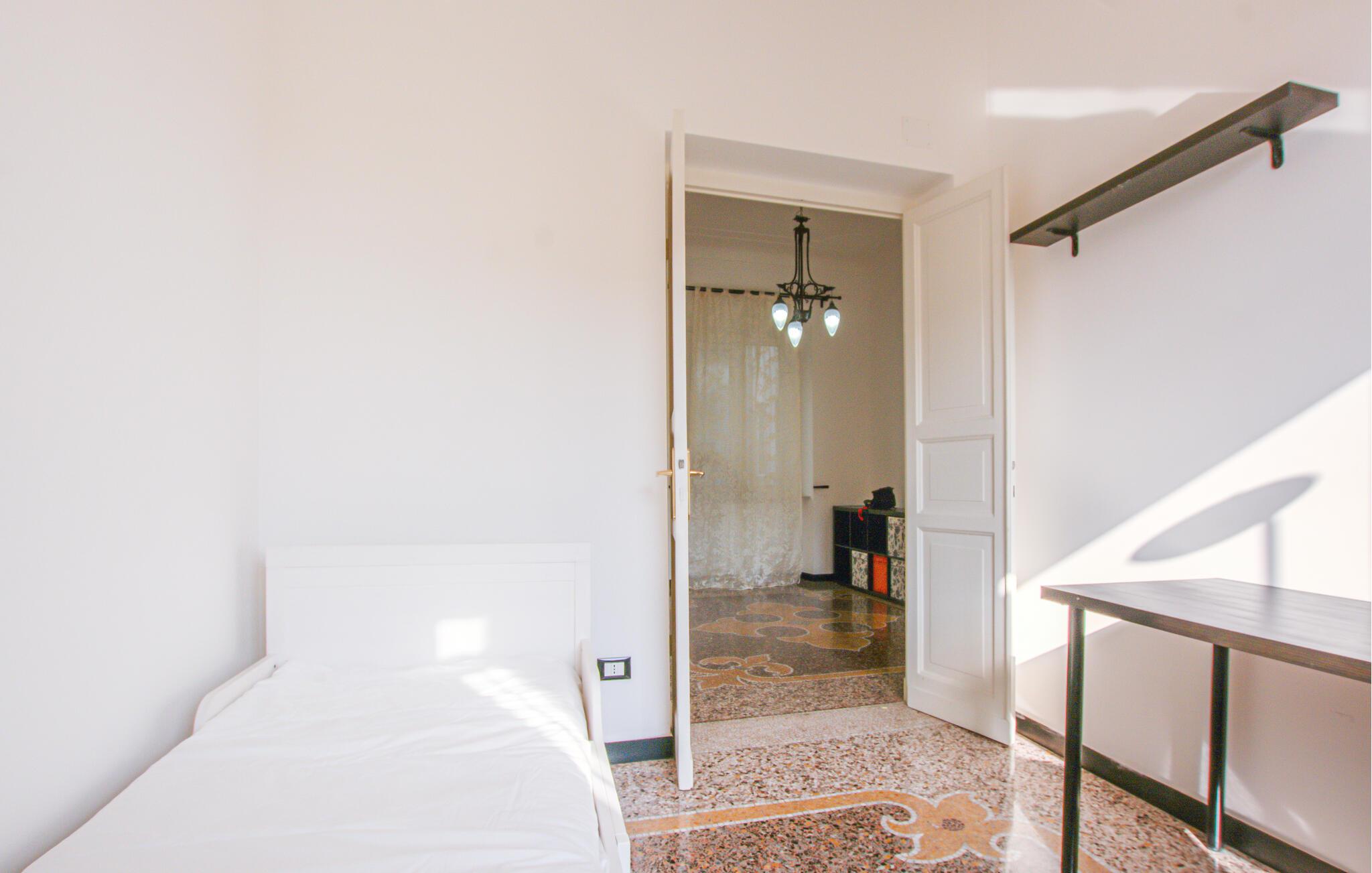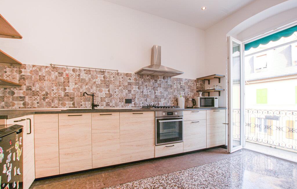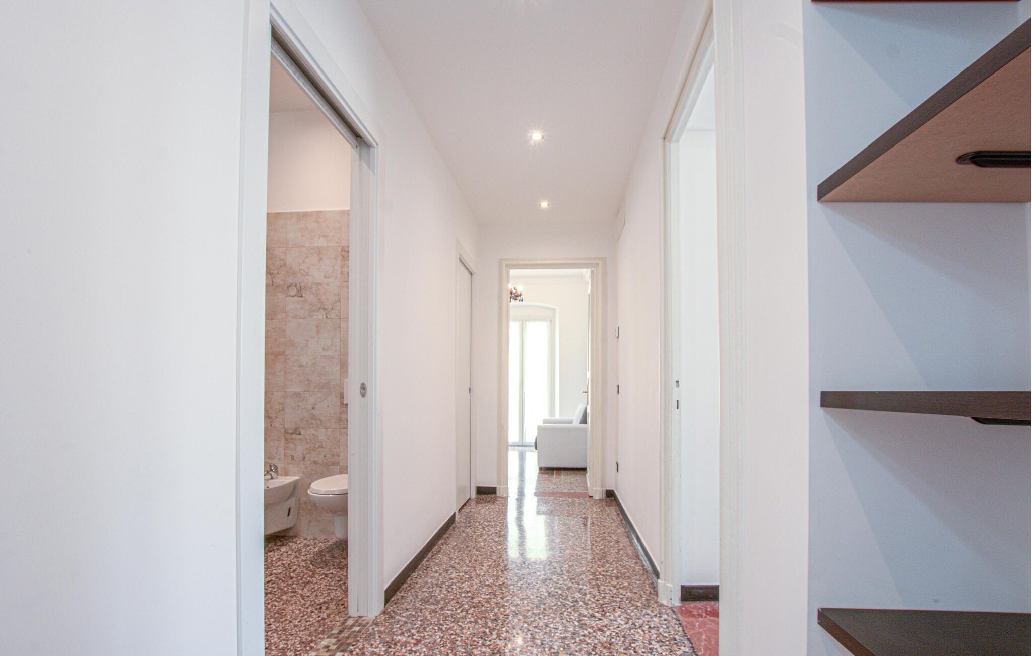 Højt til loftet, store vinduer og dekorative lysekroner giver værelserne et elegant præg. Slap af på sofaen i opholdsstuen eller brug spisebordet til fælles måltider. Det åbne køkken med sine mønstrede flisebelagte vægge giver jer mulighed for selv at tilberede italienske specialiteter. Åbn balkondøren og lad byens lys og lyde komme ind.