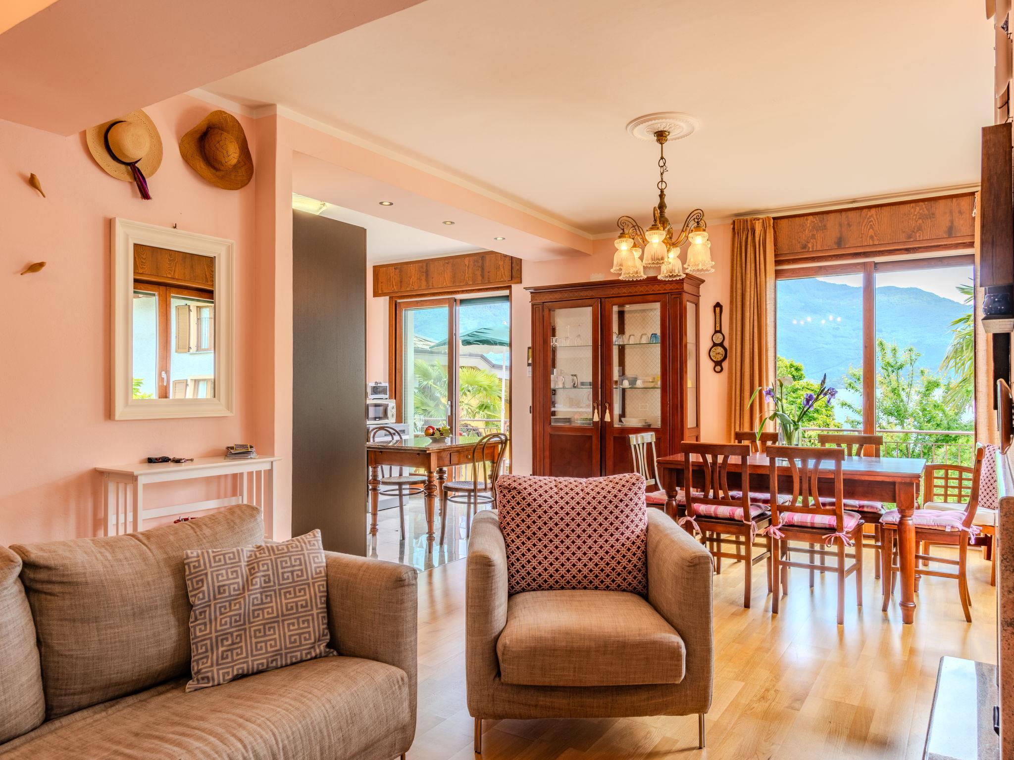 "Bruna", 3-room apartment 85 m2 on 1st floor. Living/dining room with sliding door with open-hearth fireplace (only for decoration), TV. Exit to the balcony. 1 room with 2 beds. 1 double bedroom. Open kitchen (5 hot plates, oven, dishwasher, toaster, microwave, electric coffee machine). Exit to the balcony. Shower/WC. Gas heating. Small balcony, patio. Balcony furniture, deck chairs (2). Very beautiful view of the lake and the mountains. Facilities: washing machine, baby cot for up to 2 year olds. Internet (WiFi, free). Garage (extra) (1 car) at 150 m. Please note: maximum 1 pet/ dog allowed. Private entrance. IT013107C2FWFRX5IV