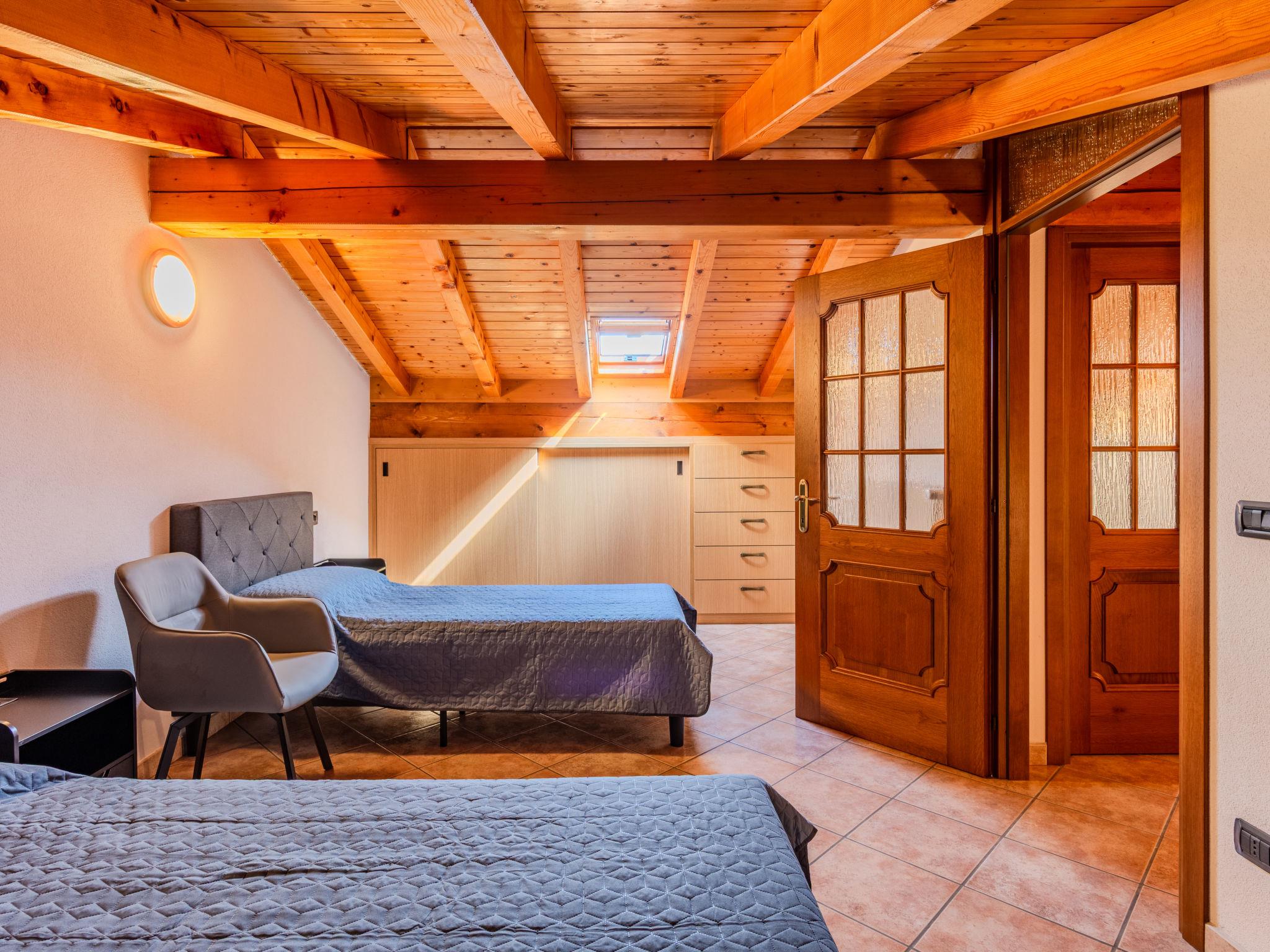 4-room apartment 120 m2 on 3 levels on 1st floor. Comfortable furnishings: open large living/dining room with dining table and TV. Exit to the balcony, to the terrace. Open kitchen (oven, dishwasher, 5 gas rings, toaster, microwave, electric coffee machine). Sep. WC. Upper floor: 1 double bedroom. Exit to the terrace. 1 room with 2 beds. Exit to the balcony. Shower/bidet/WC. Top floor: 1 room with 2 beds and air conditioning. Bath/WC. Heating. 2 balconies, terrace. Terrace furniture, barbecue, deck chairs (2). Marvellous view of the lake and the countryside. Facilities: washing machine, children's high chair, baby cot for up to 2 year olds, hair dryer. Internet (WiFi, free). Parking (2 cars). Please note: non-smokers only. Maximum 1 pet/ dog allowed. Private entrance, smoke alarm, fire extinguisher, no lift. IT013226C29FDDUIOT