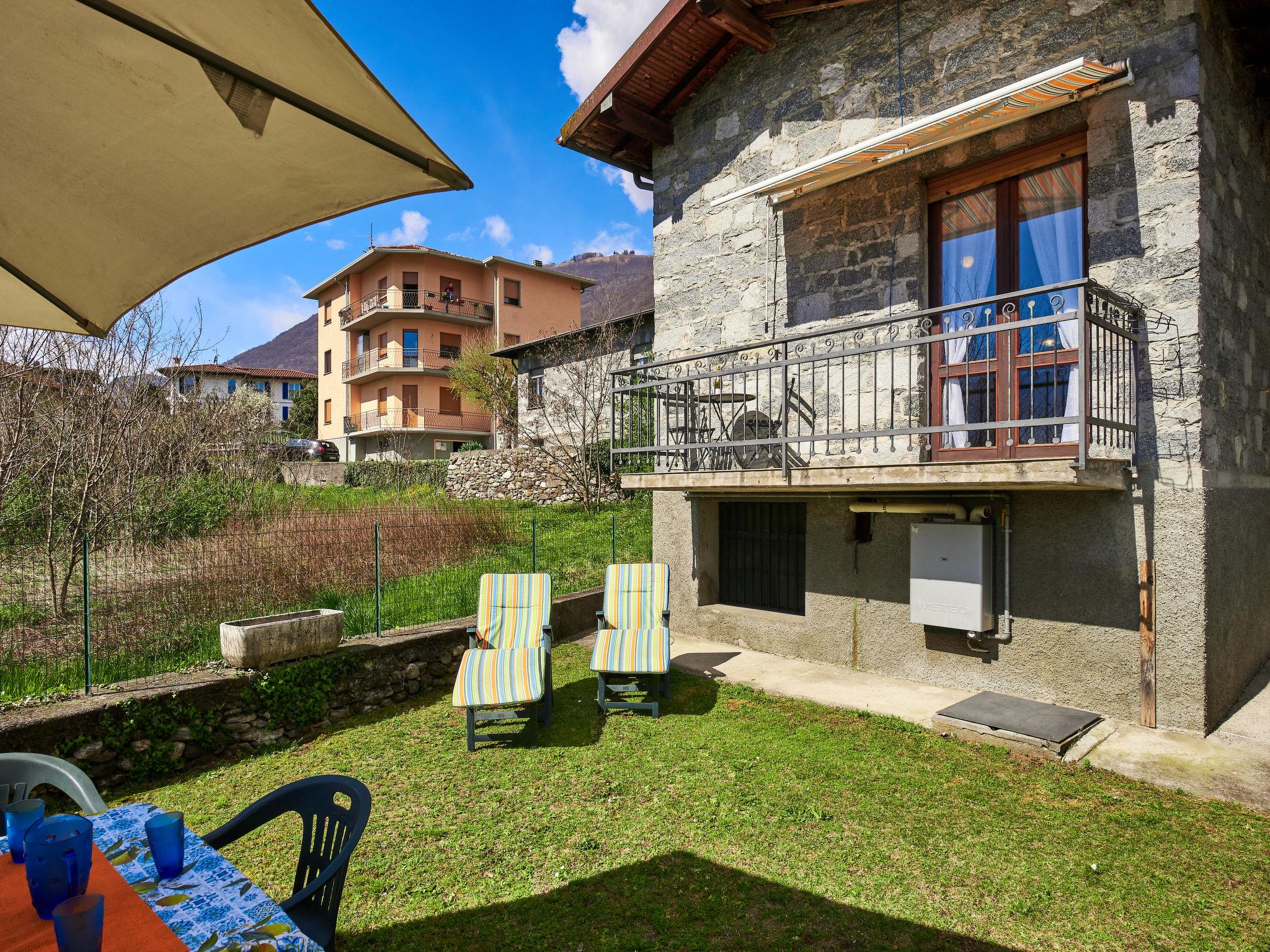 Rustic single-family house "Simoni", semi-detached. 200 m from the centre of Gera Lario, 77 km from the centre of Como, 50 km from the centre of Lugano, on a slope, in the residential district, 250 m from the lake. Private: property 300 m2 (fenced) with lawn and trees, courtyard. Garden furniture. 100 m long narrow motor access. Stepped path to the house. Parking on the premises. Shop 200 m, supermarket 4 km, bus stop 200 m, railway station "Colico" 8 km, pebble beach 250 m, shingle beach 500 m. Golf course (18 hole) 30 km. Please note: main road 250 m from the property.