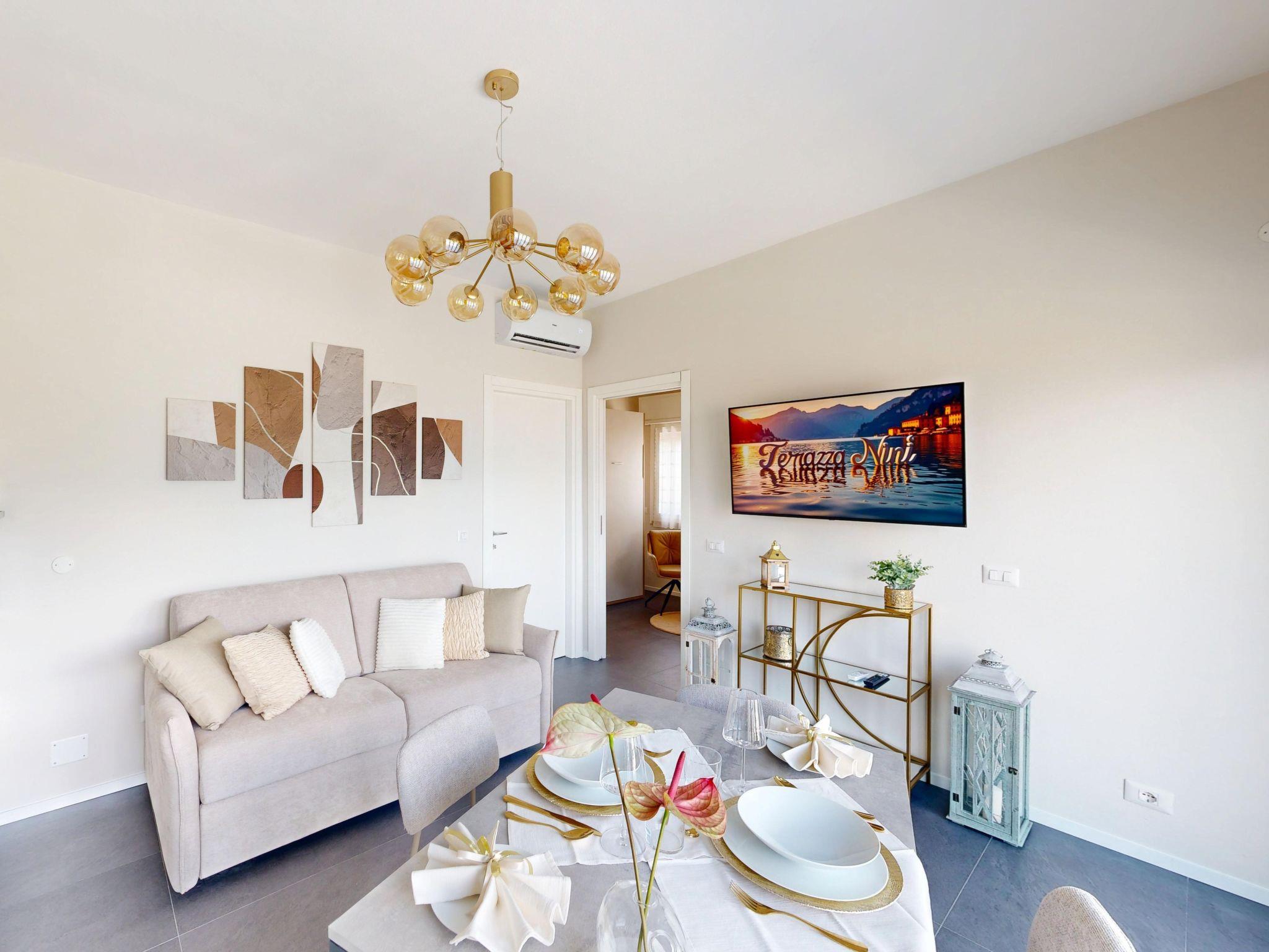 "Terrazza Ninì", 2-room semi-detached house 35 m2, on the upper floor. Fully renovated in 2025, modern and cosy furnishings: living/dining room with panoramic window with 1 sofabed (140 cm), satellite TV. Exit to the terrace. 1 room with 1 double bed. Kitchenette (oven, 4 induction hot plates, kettle, electric coffee machine). Shower/bidet/WC. Air-conditioning, forced-air heating. Terrace 20 m2. Terrace furniture. Beautiful panoramic view of the lake and the mountains. Facilities: washing machine, hair dryer. Internet (WiFi, free). Parking (1 car). Please note: private entrance, smoke alarm, fire extinguisher. IT012076C2KSCI82WH